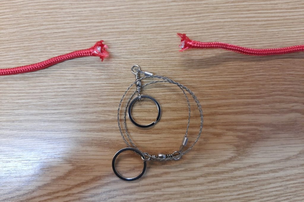 Das Seil habe ich in zwei gleiche Enden zerteilt und dazwischen die Bandsäge montiert.