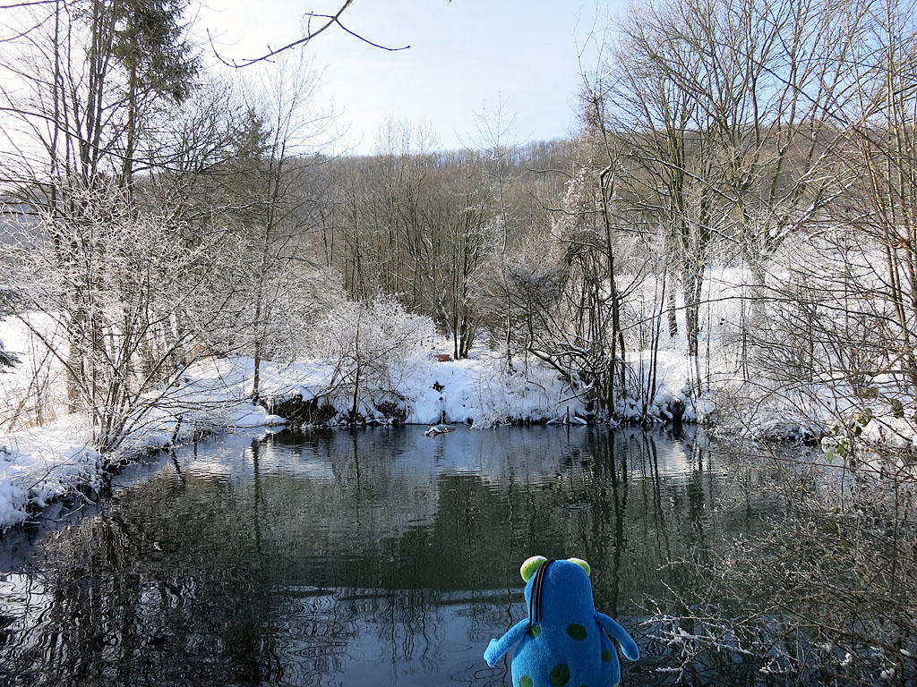 Leider gab es noch keine, dafür ist die Innerste schon zugefroren – das habe ich auch noch nicht gesehen.