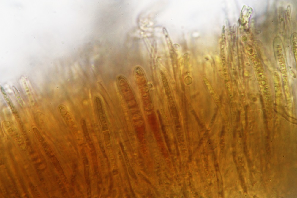 Weil die Sporen sehen mir recht klein aus, schätze mal unter 4 µm, was für calycina sprechen würde, wenn es so ist. Auch die negative IKI-Reaktion würde für die Art passen.