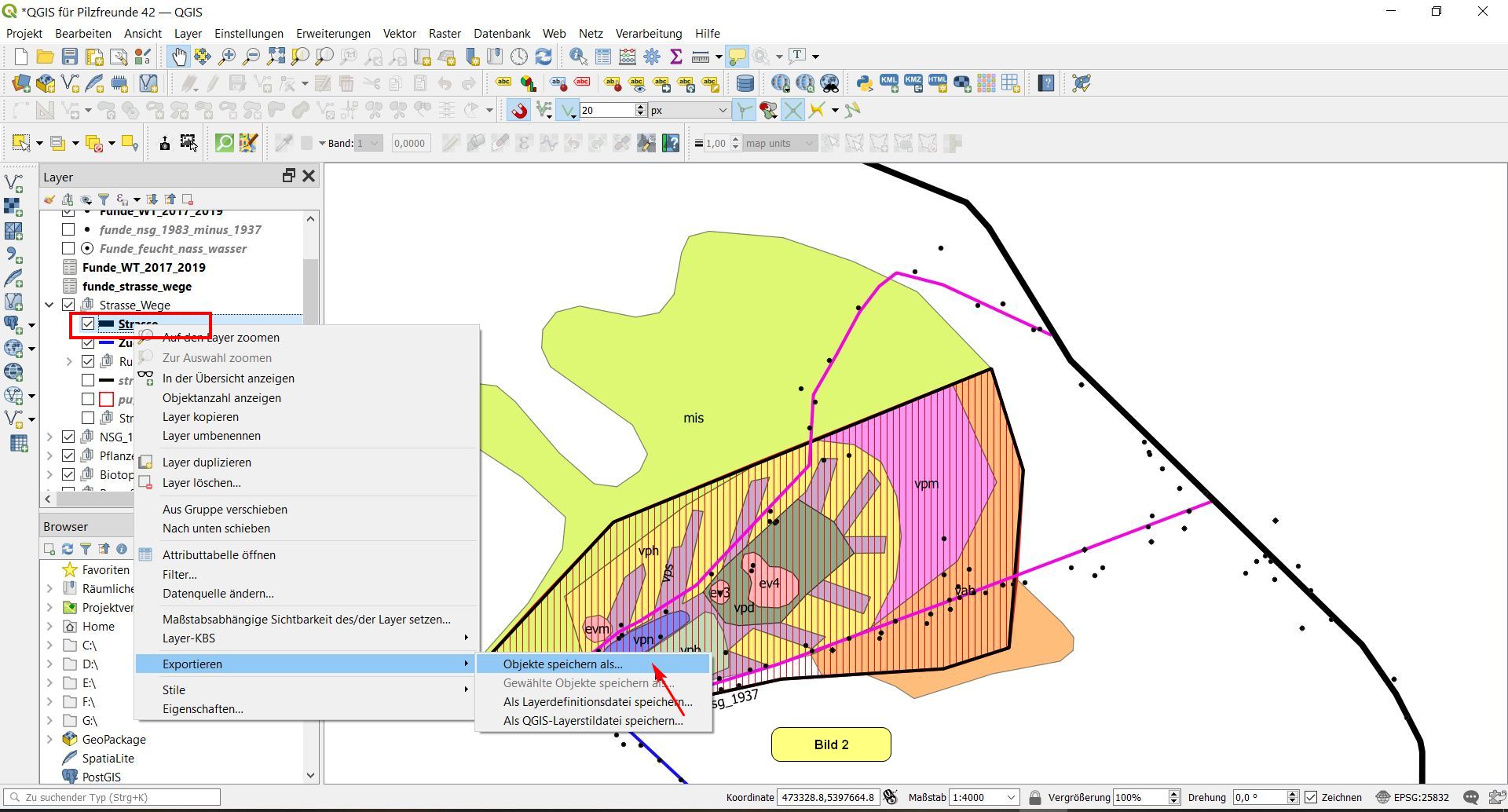 Wir beginnen mit dem Shapefile-Layer strasse und exportieren ihn via Objekte speichern als...