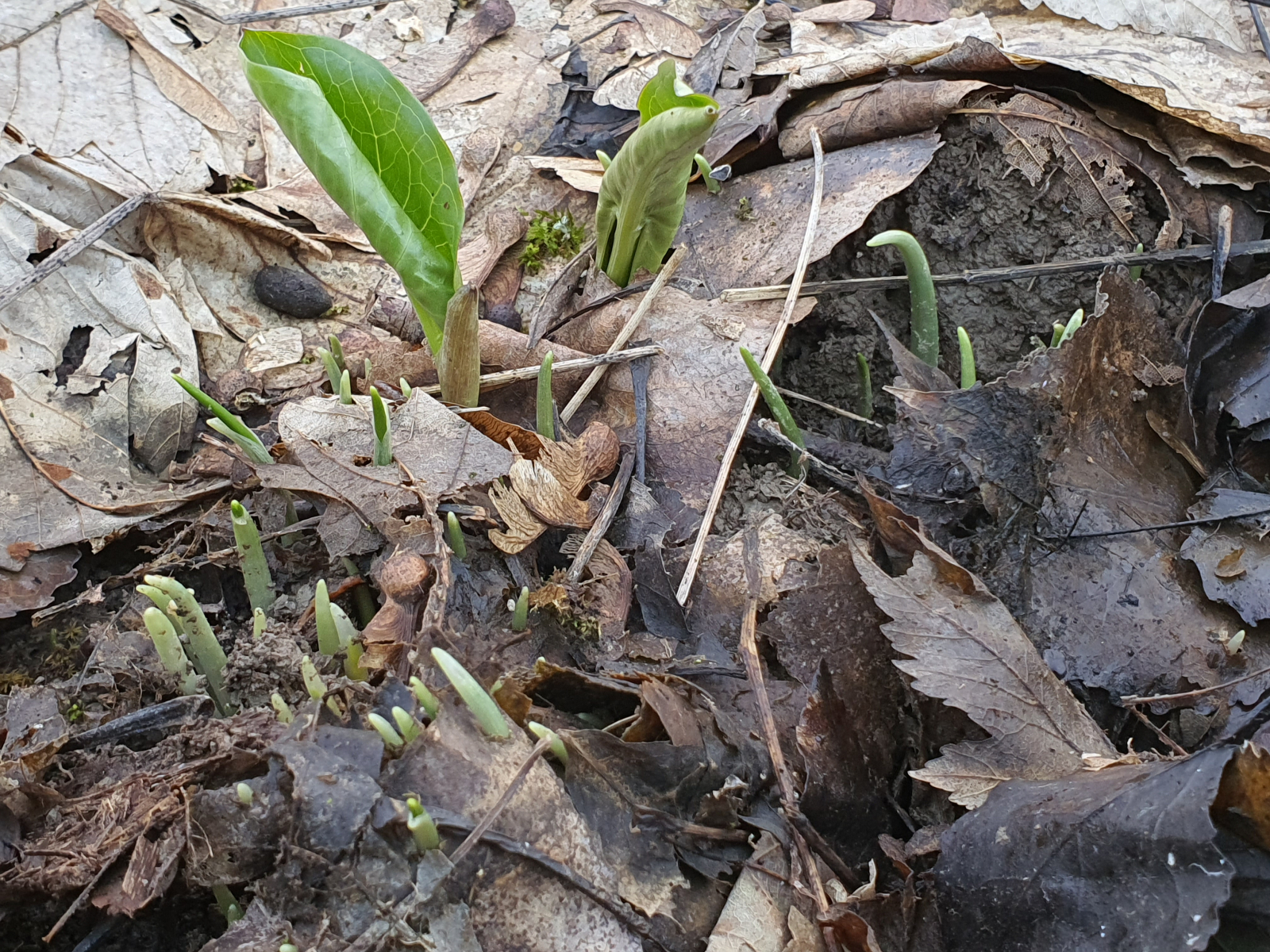 ...es geht los, der Bärlauch steht in den Startlöchern! Der Schnee ist noch nicht vollständig geschmolzen, aber heute habe ich die ersten Bärlachspitzen entdecken können..
