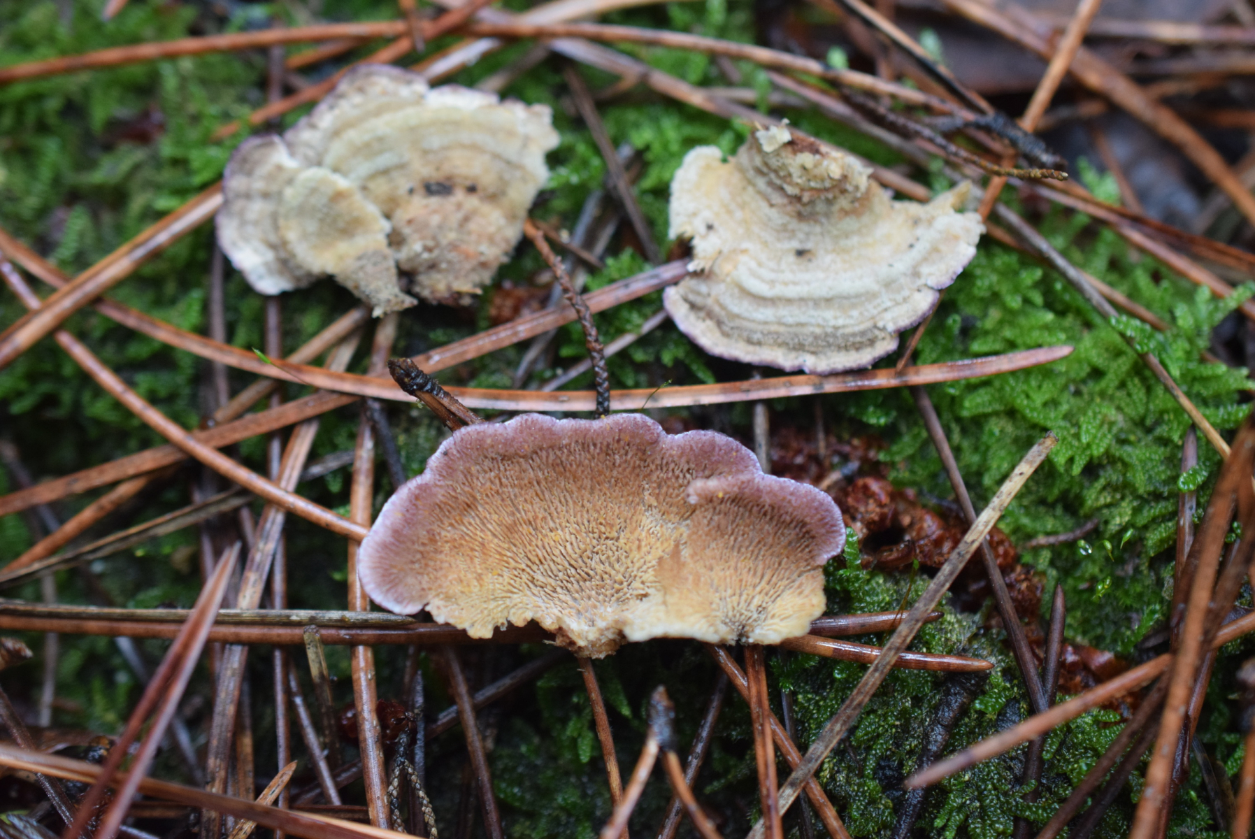 Per Unterseitenrand nicht Violet Farbe muss Trametopsis cervina sein aber wenn ausgeblassen sind dann hilft blick an Oberseite . Hab Trametopsis cervina gefunden , aber auch hab sehr ähnliche Trichaptum abietinum gefunden , wenn alt oder ausgeblasen dann sind beide sehr ähnlich . Hab auch in Mediterranraum Trichaptum laricinum gefunden ( sehr selten ) auch sehr ähnlich aber denn vorkommen an Nadelholzsubstrat . Dein Fund ist in jedenfal wert nochmal Fotografieren weil selten ist