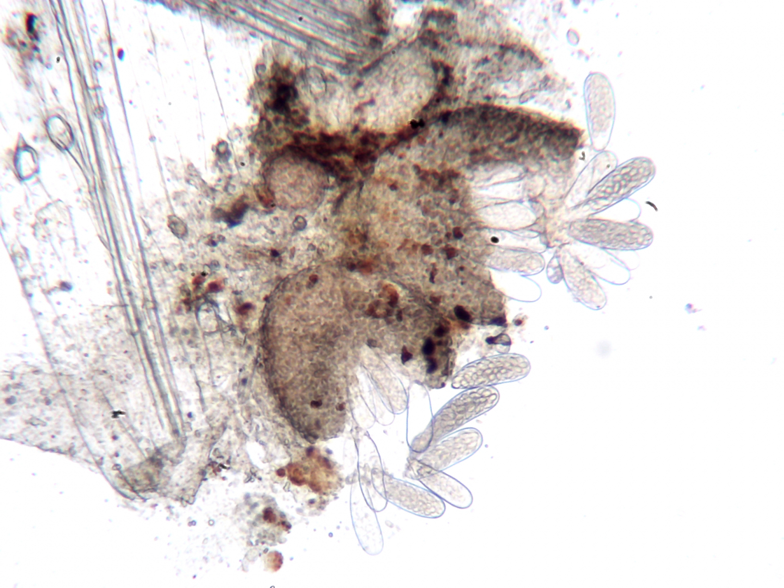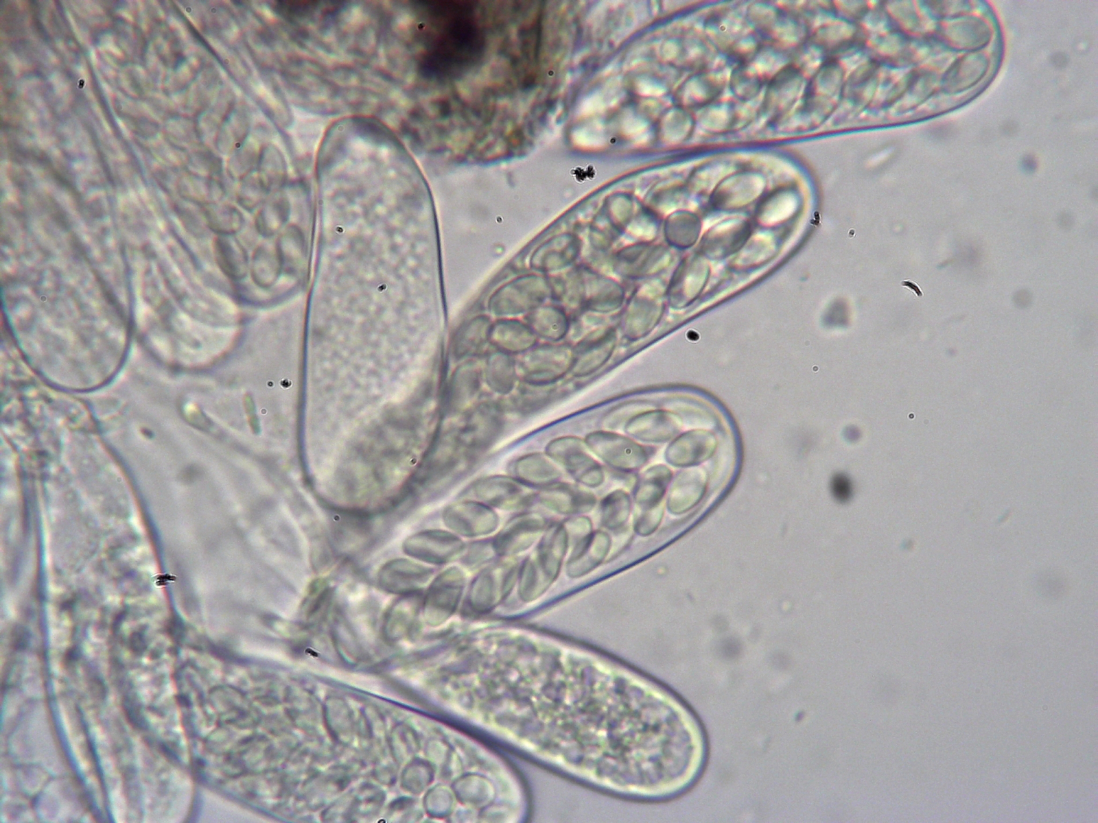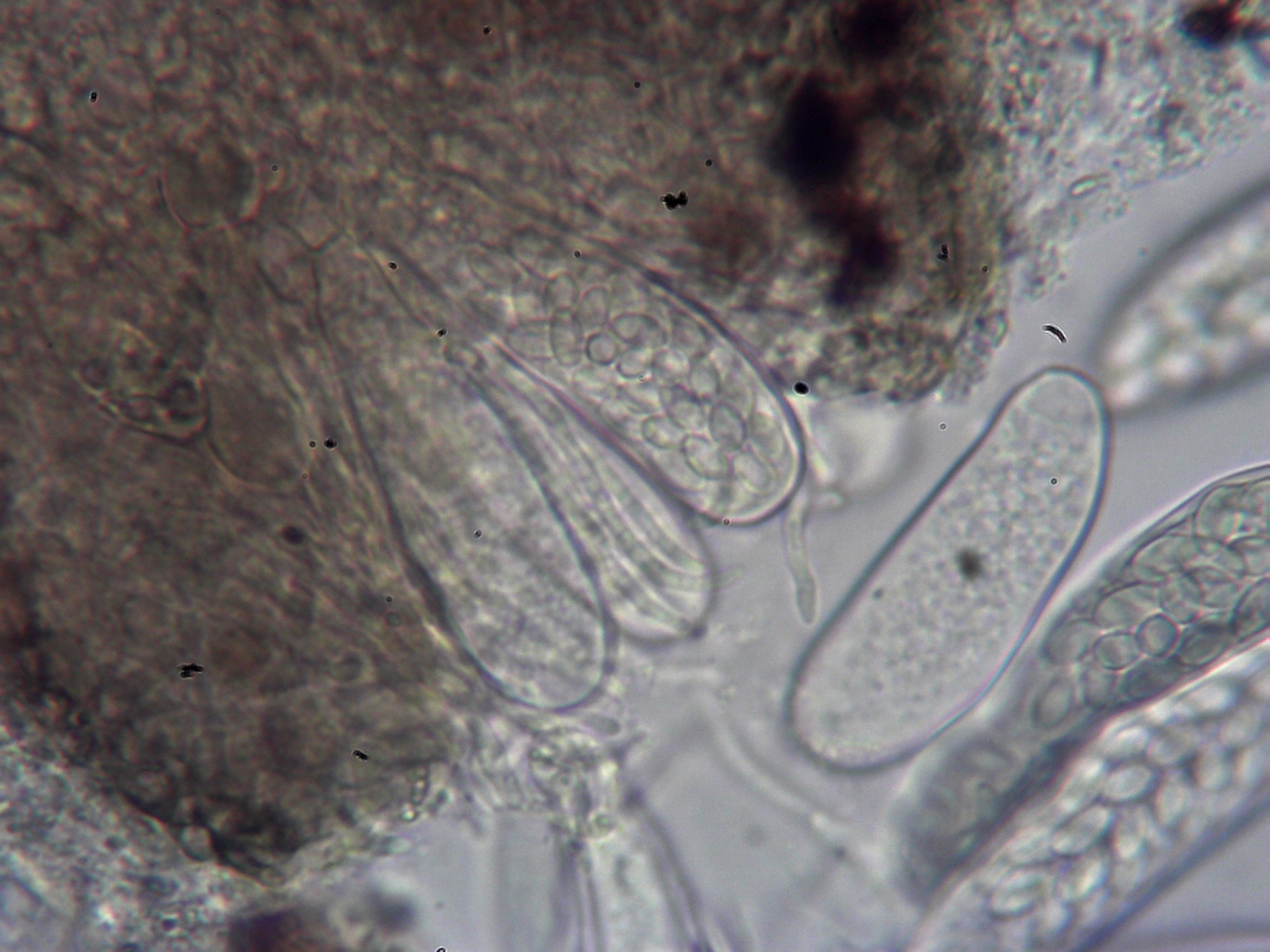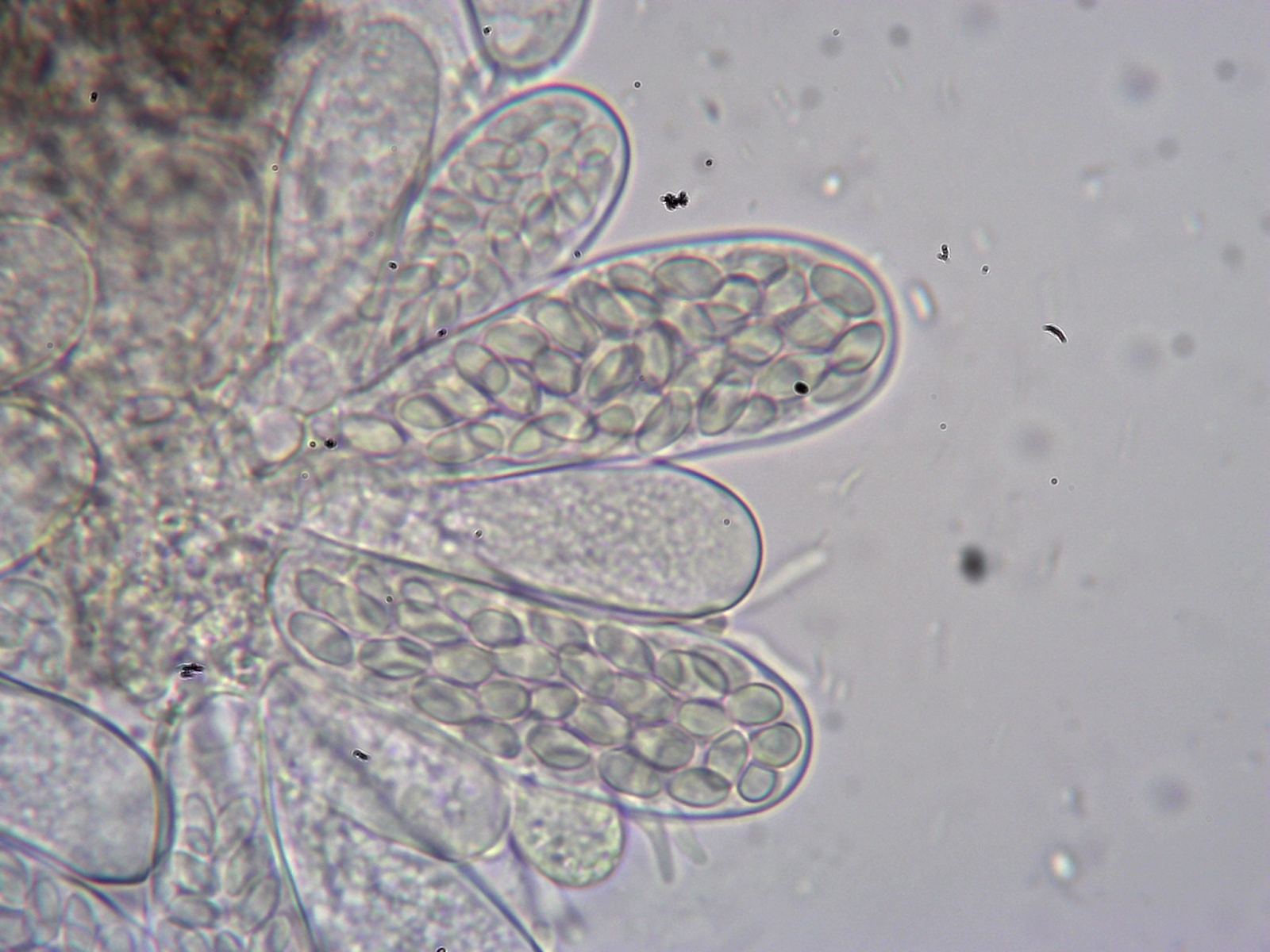 Merkmale: Anzahl der Asci pro Frk. z.T. > 10, Asci 60-80 x 20 µm, zwischen den Asci Paraphysen vorhanden, Sporen 7,5-9 x 4-4,5 µm.