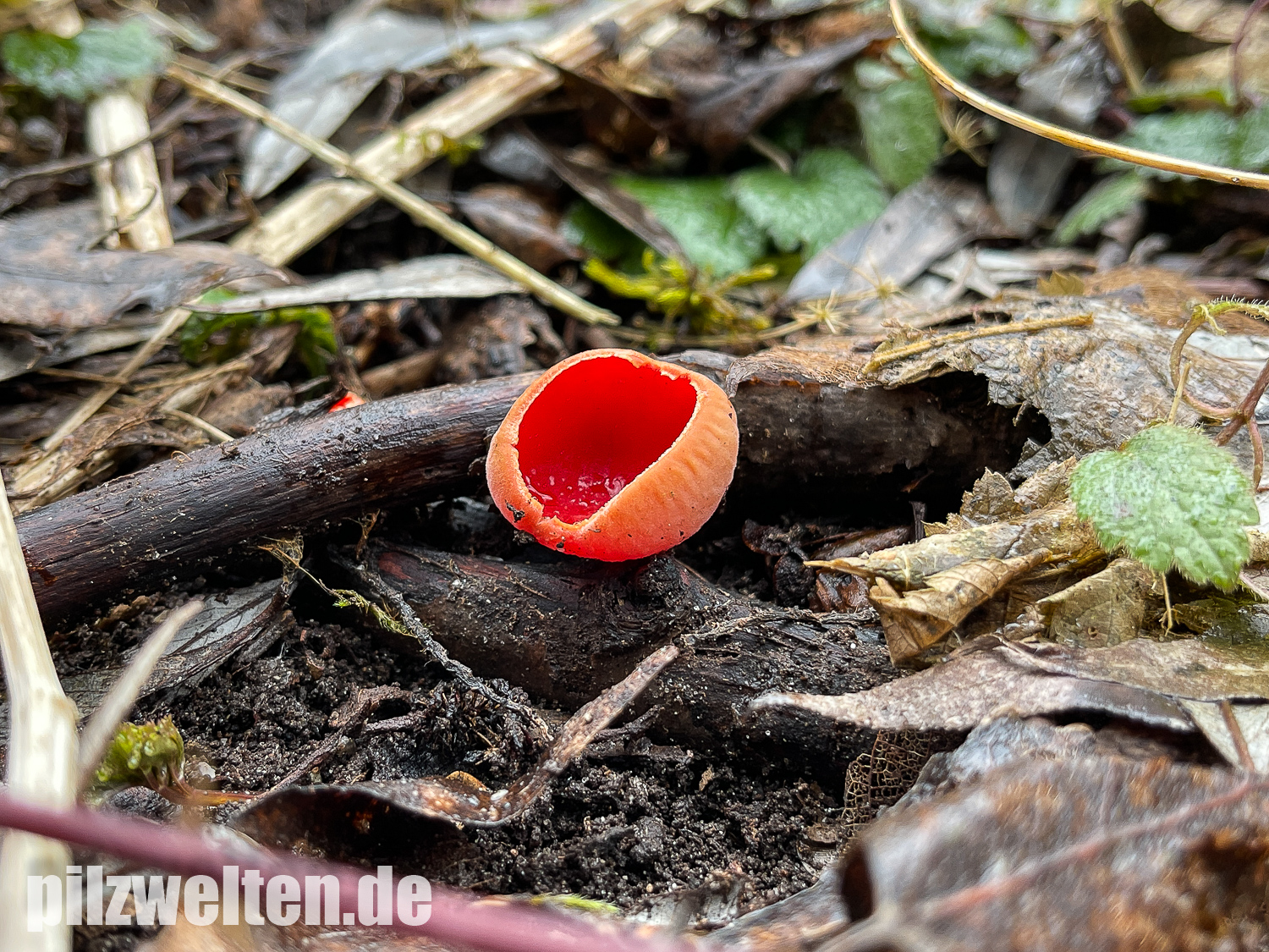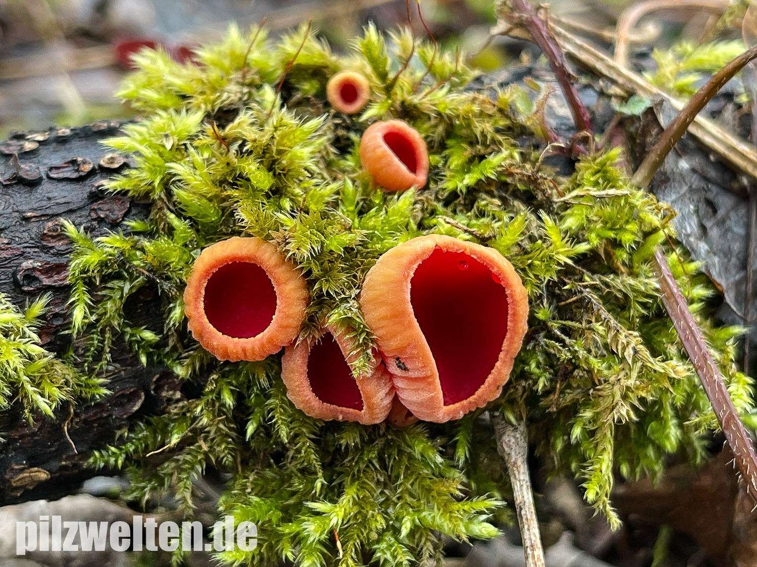1. Zinnoberroter Prachtbecherling, Sarcoscypha austriaca