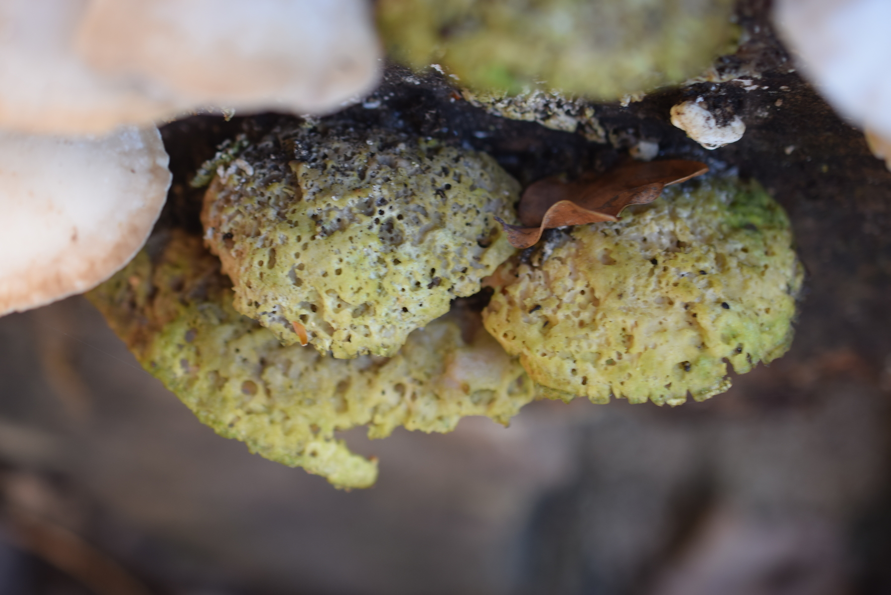 Relativ weich, leicht zu schneiden. Hutgröße 3...5 cm. Poren 2...3/mm. Keine Reaktion auf KOH. Alles andere ist wohl auf den Bildern zu sehen.