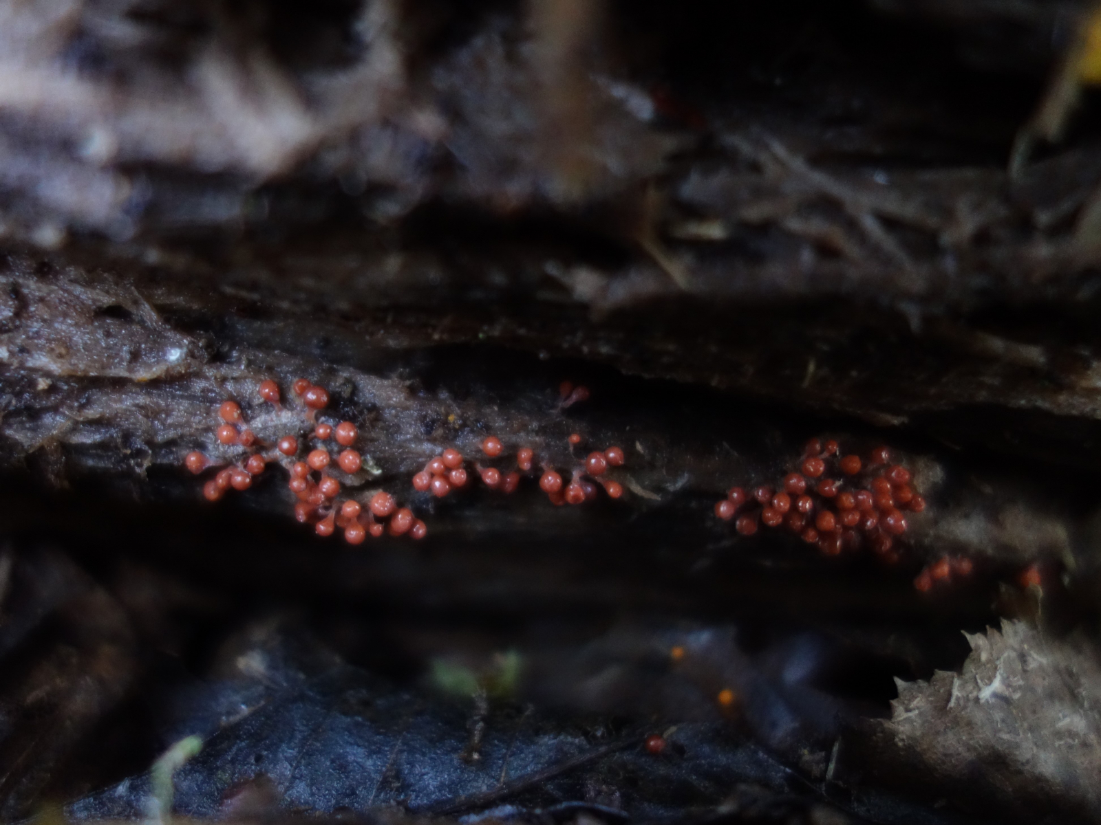 Dein 2. Fund ist leider noch unreif und kann dadurch verschiedenes sein. Trichia decipiens kann möglich sein, obwohl ich sie auch im unreifen Zustand nicht so rot kenne (eher lachsfarbig). Es könnte auch mal eine rote Arcyria-Art werden. Wenn Du keine Fotos vom späteren Reifestadium hast, kann ich mich da nicht festlegen.