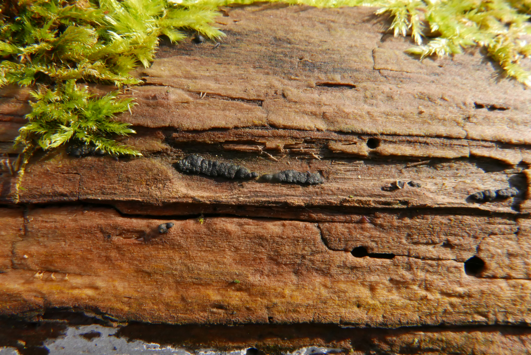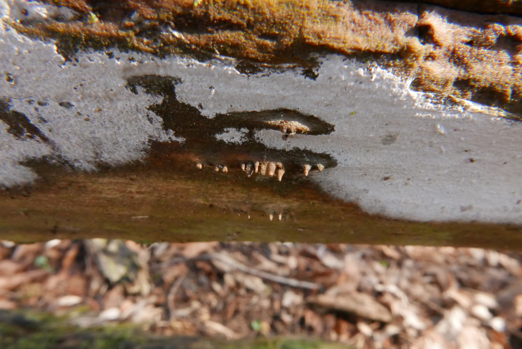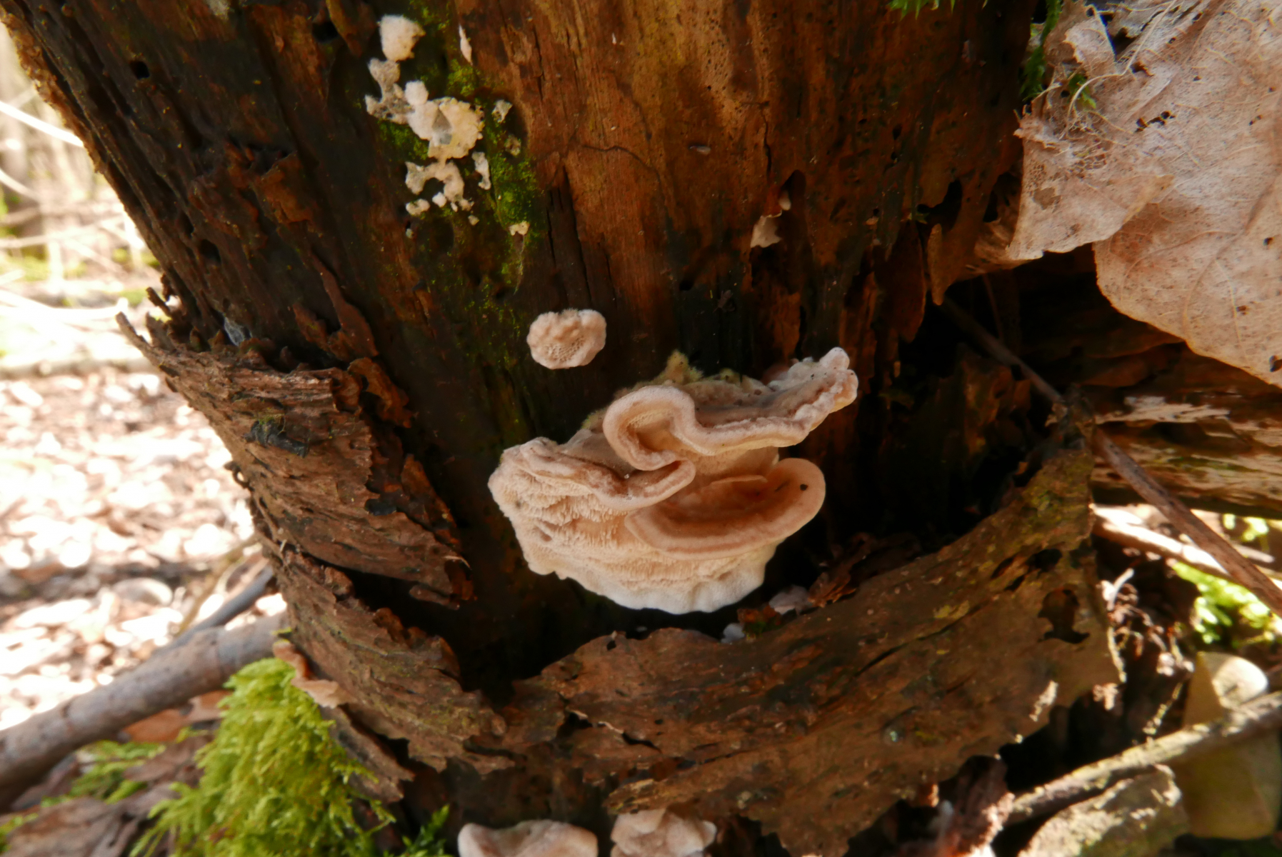 06. Hier ein finalmorscher Baumstamm mit drei Pilzarten