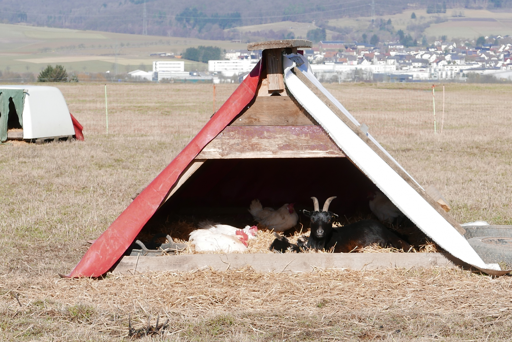 11. Glückliche Hühner, ein Hahn und die Wachziegen, die Landwirtschaft von meinem Großcousin. Von hier beziehe ich die Eier.