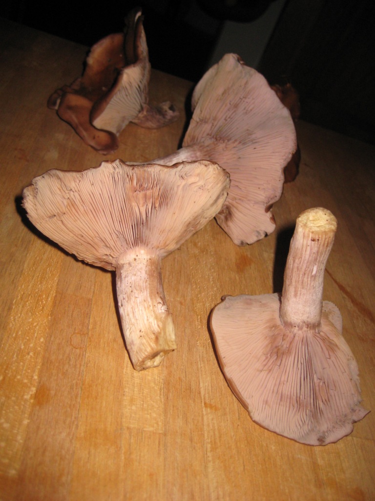 Da der Violette Rötelritterling im Geschmack eigen ist, nehme ich ihn ungern für eine Mischpilzpfanne. Zumal man ihn häufig so spät findet, daß man nicht mehr so viel dazu findet.