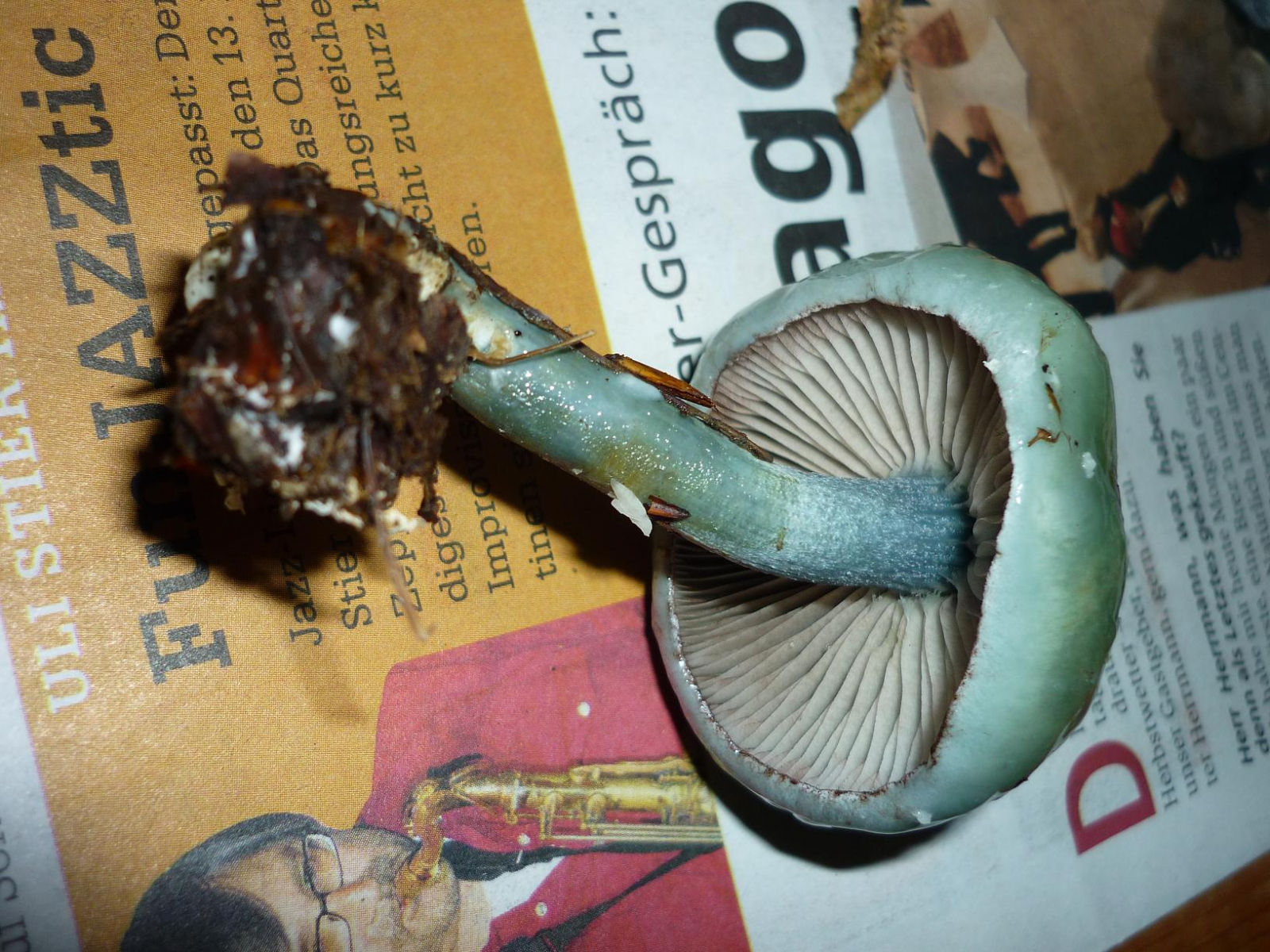 Zu den Pilzen lasse ich mich nur beim ersten zu einem Kommentar hinreißen: Blauer Träuschling, Stropharia caerulea.