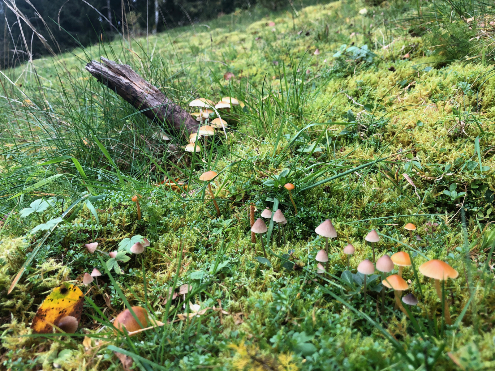 Sachdienliches wäre zweifelsfrei sehr hilfreich gewesen. ABER - Die Helmlinge auf der Saftlingswiese haben mich total überfordert. Da standen tausende bunte Saftlinge, Ellerlinge und kleine Keulen und vielen anderen, die mich in ihren Bann gezogen haben. Schon das war deutlich mehr als ich Pilzanfängerin auf einmal verarbeiten konnte. Die kleineren unscheinbaren Arten folgten also erst unter ferner liefen..n sprich, ich habe höchstens mal ein Foto gemacht.