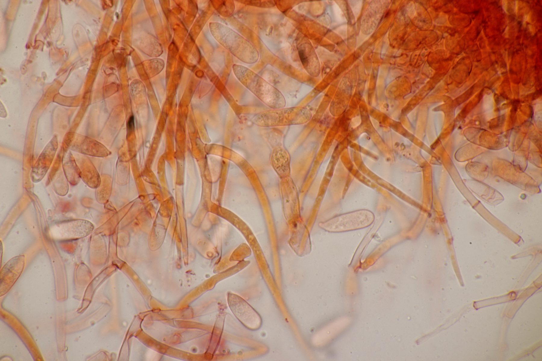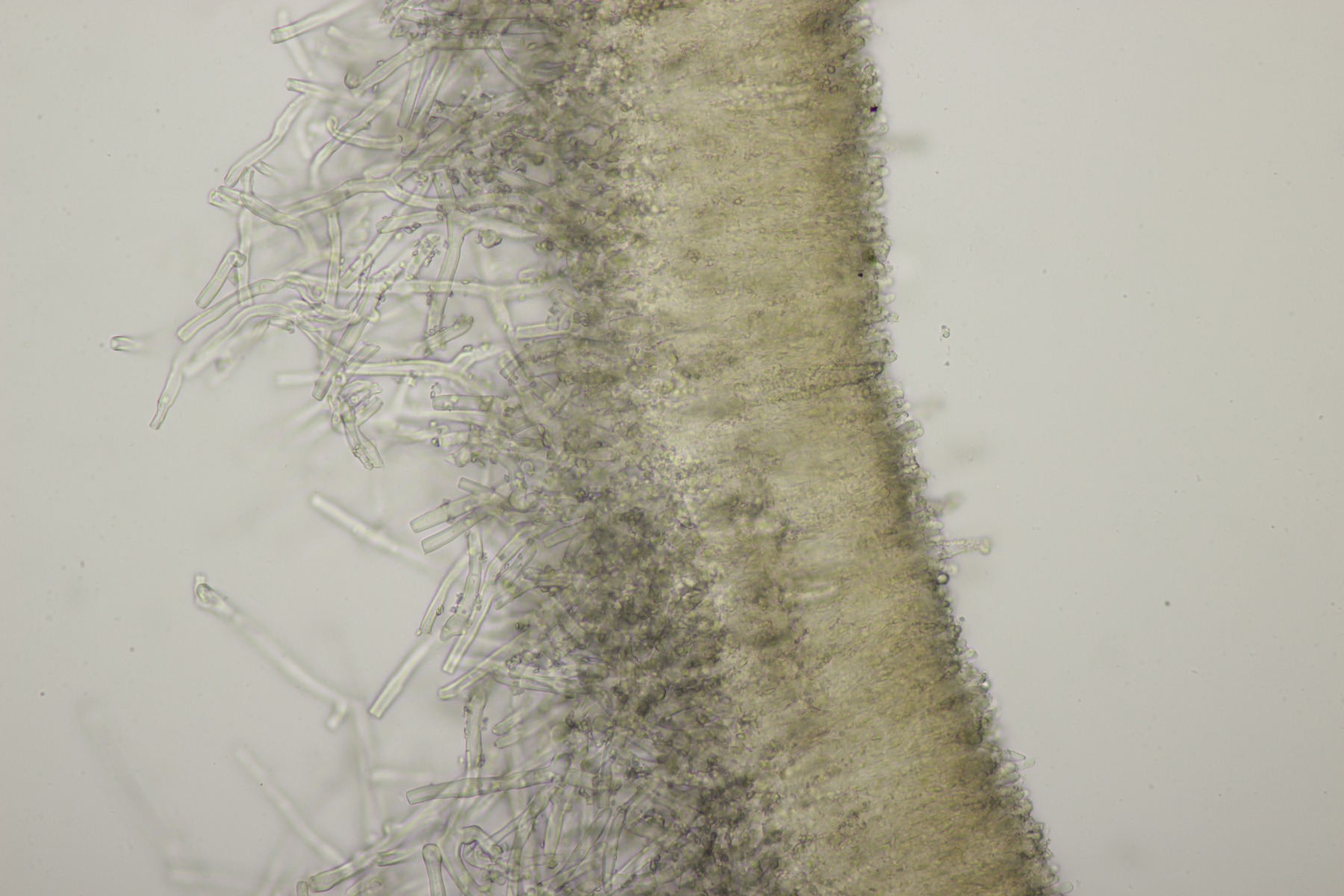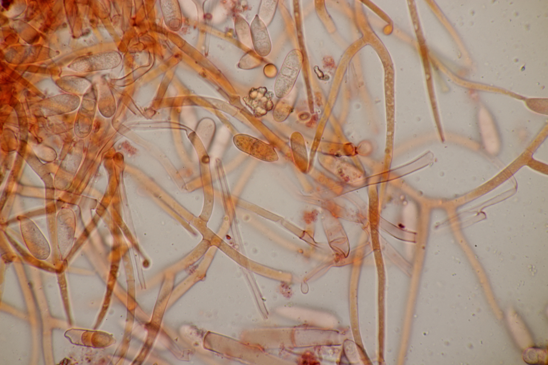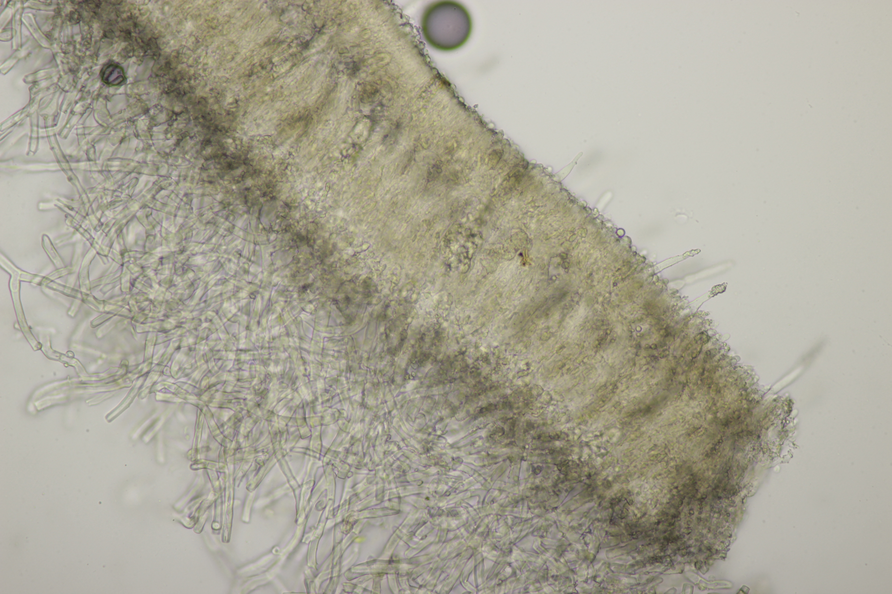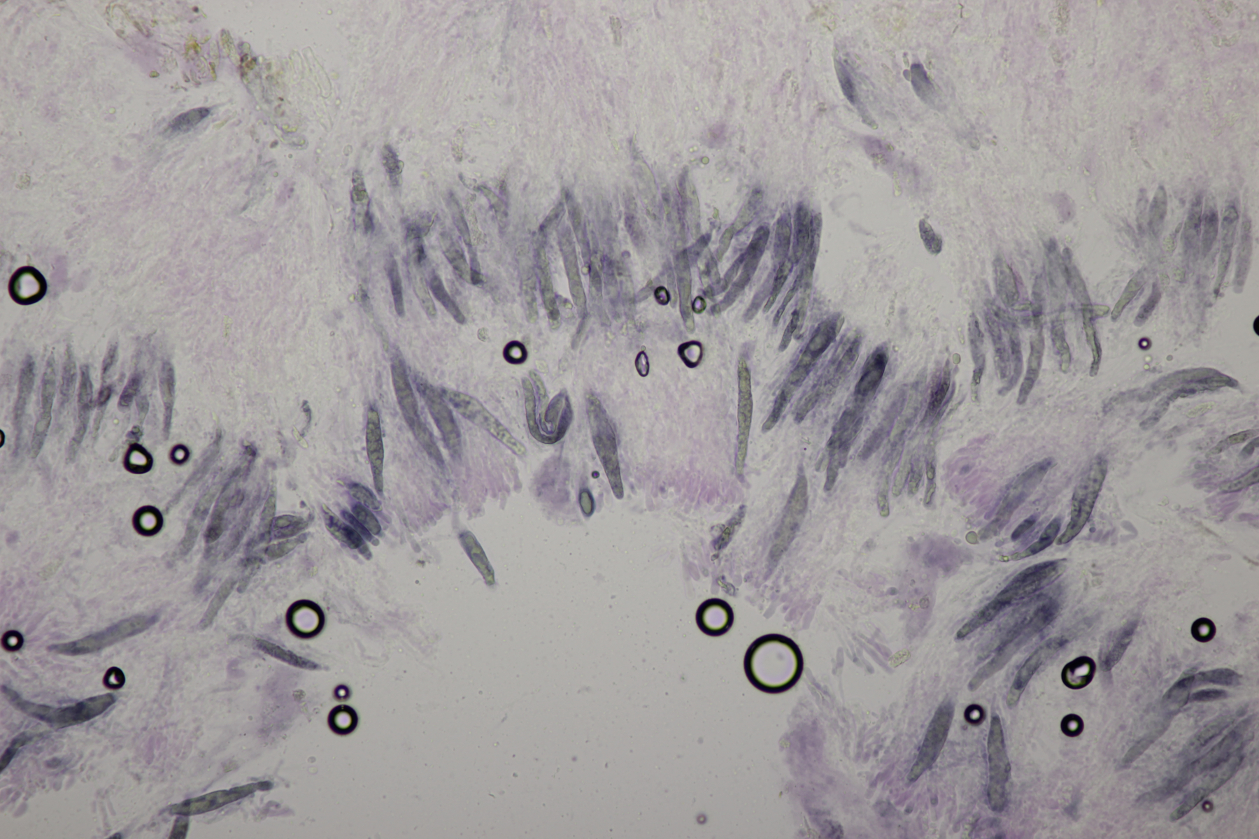 Dafür lohnt es sich, den fruchtkörper zu schneiden, um dei Verteilung der Gloeocystiden zu prüfen. Die Methode, mit ner Nadel etwas abzukratzen und dann zu quetschen, ist oft schneller, aber es lohnt sich m.E. immer, sich auch mal den genauen Aufbau und die Schichtung anzusehen. ;)