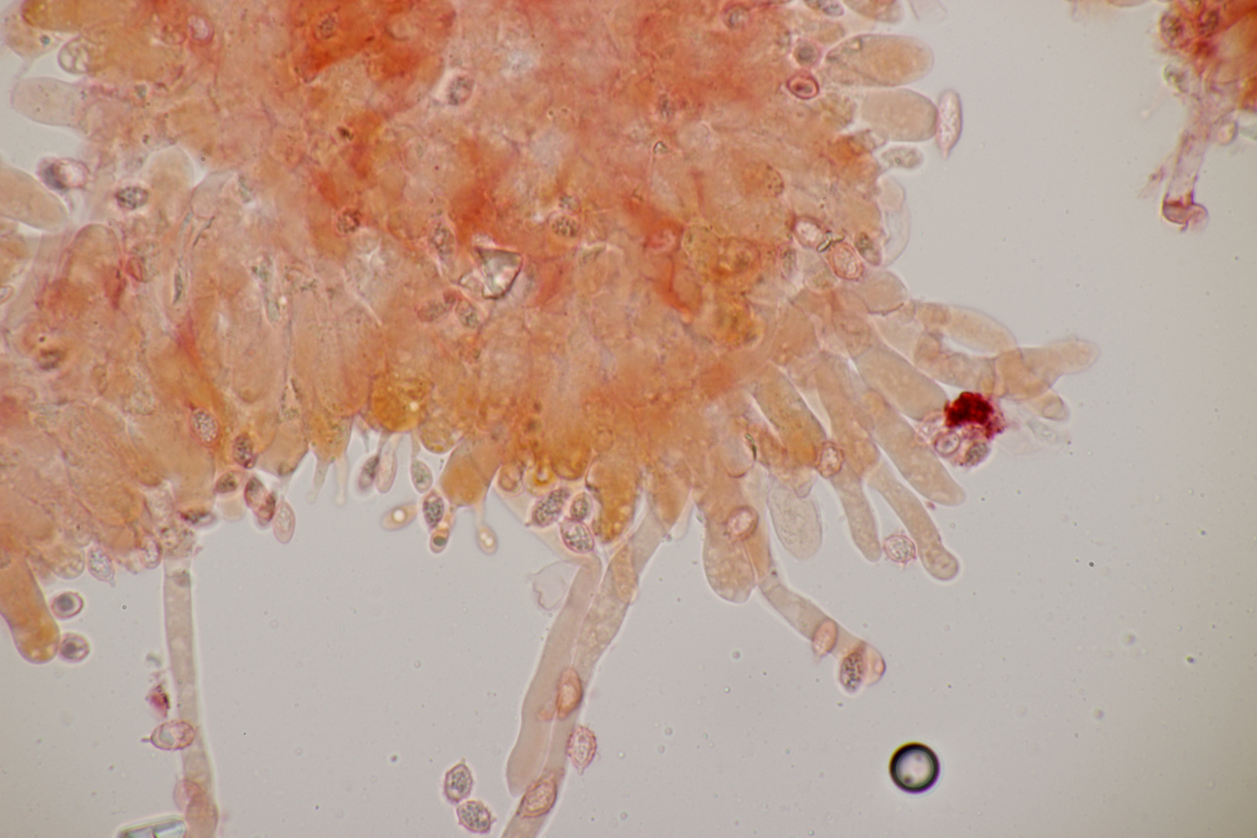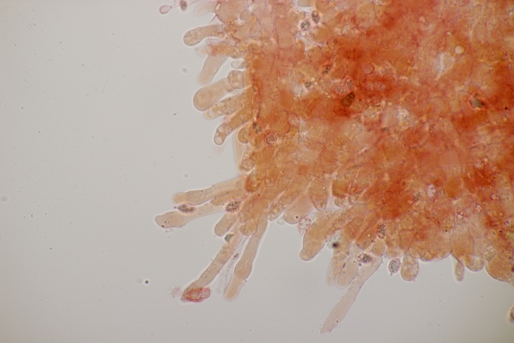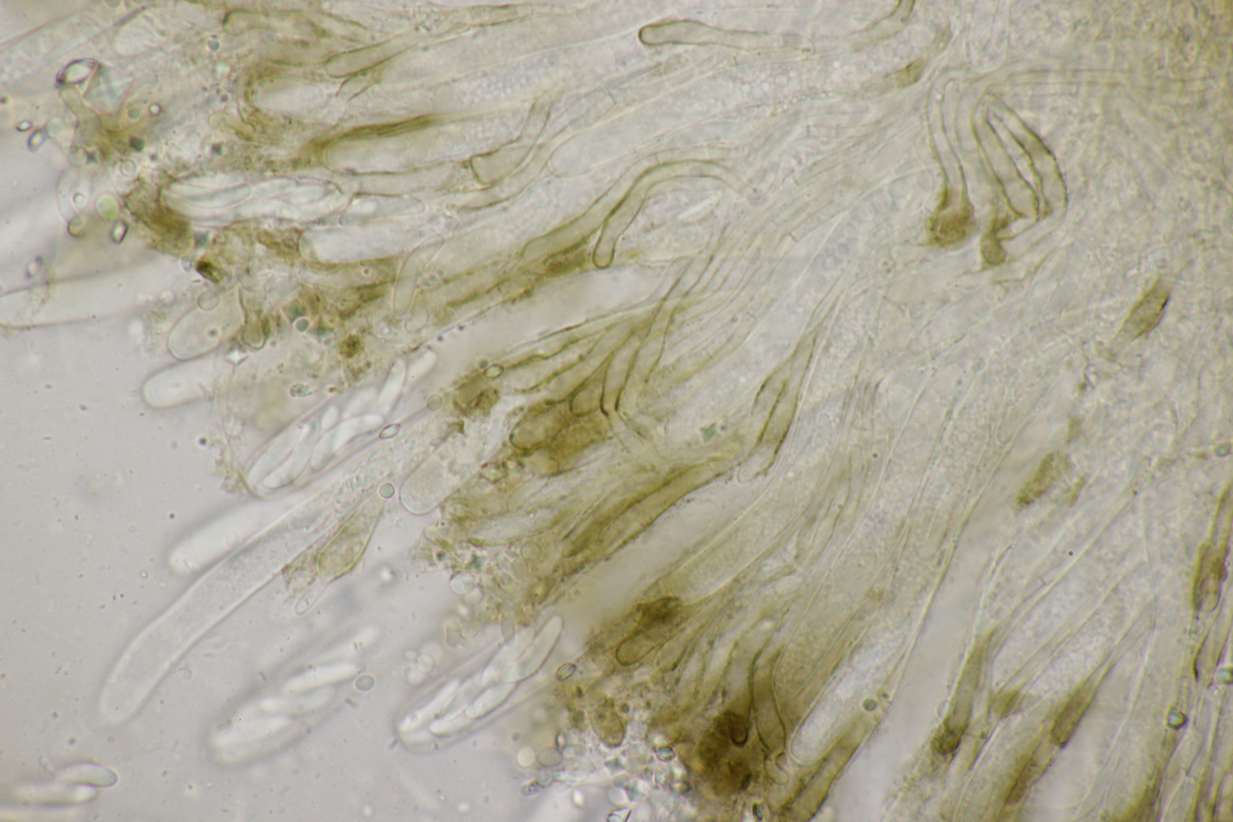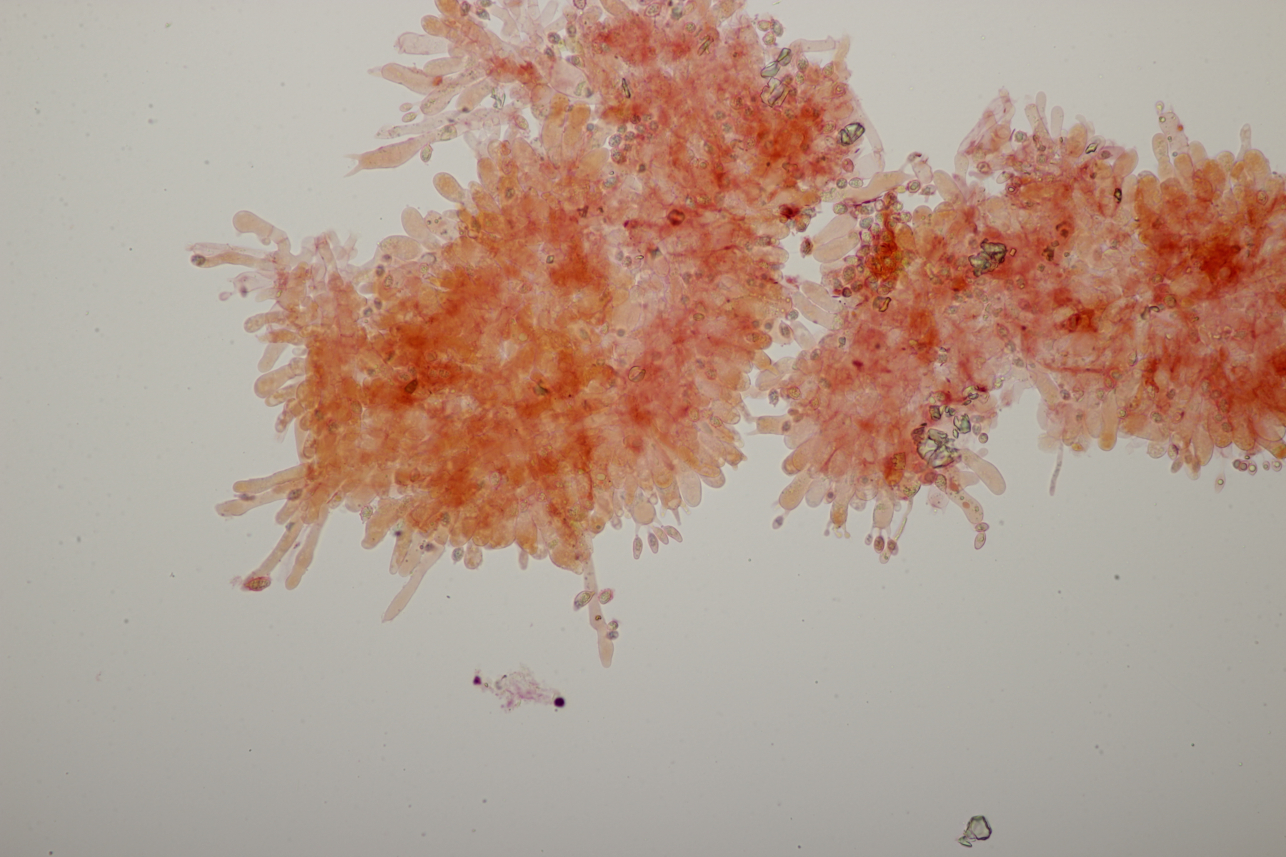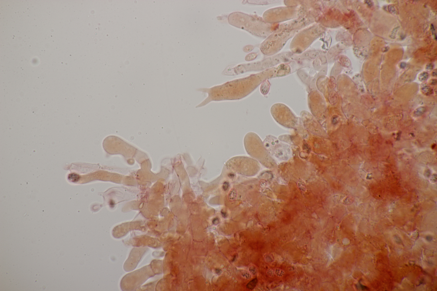 Dafür lohnt es sich, den fruchtkörper zu schneiden, um dei Verteilung der Gloeocystiden zu prüfen. Die Methode, mit ner Nadel etwas abzukratzen und dann zu quetschen, ist oft schneller, aber es lohnt sich m.E. immer, sich auch mal den genauen Aufbau und die Schichtung anzusehen. ;)