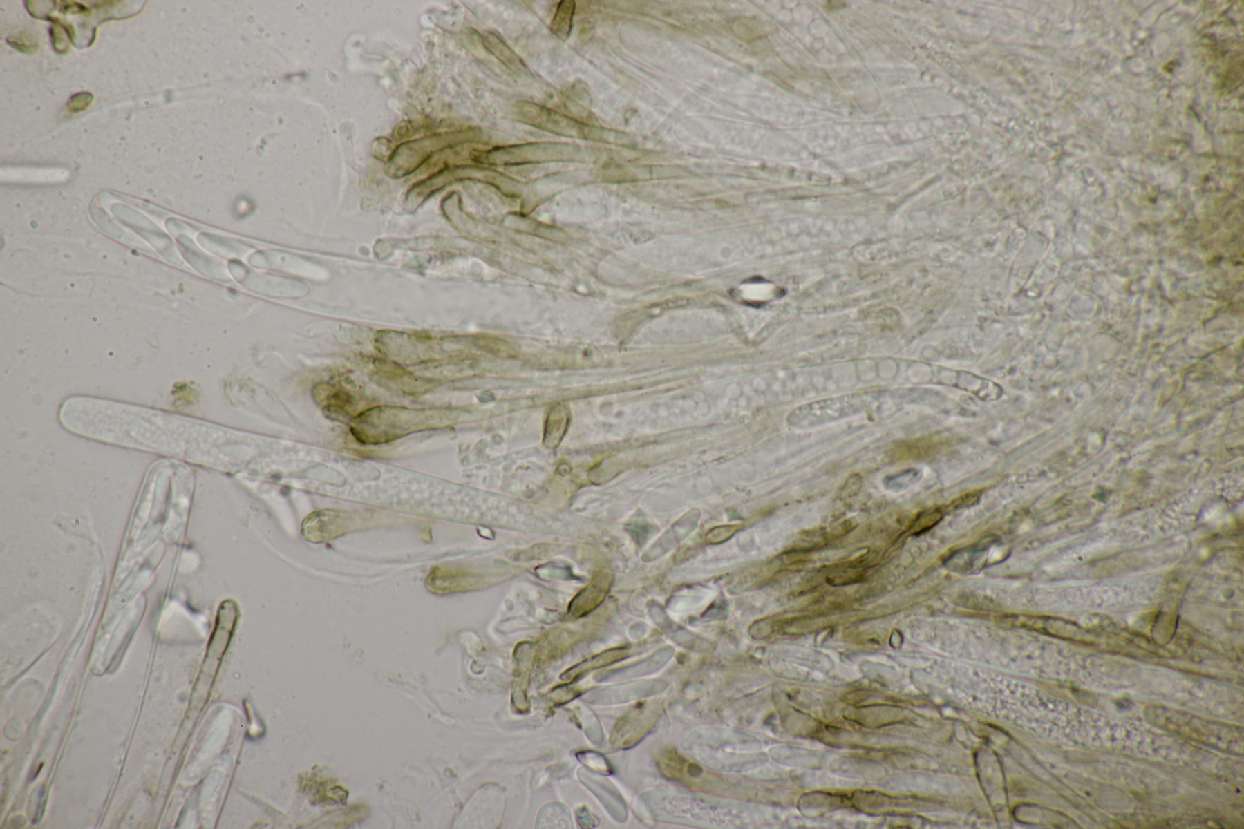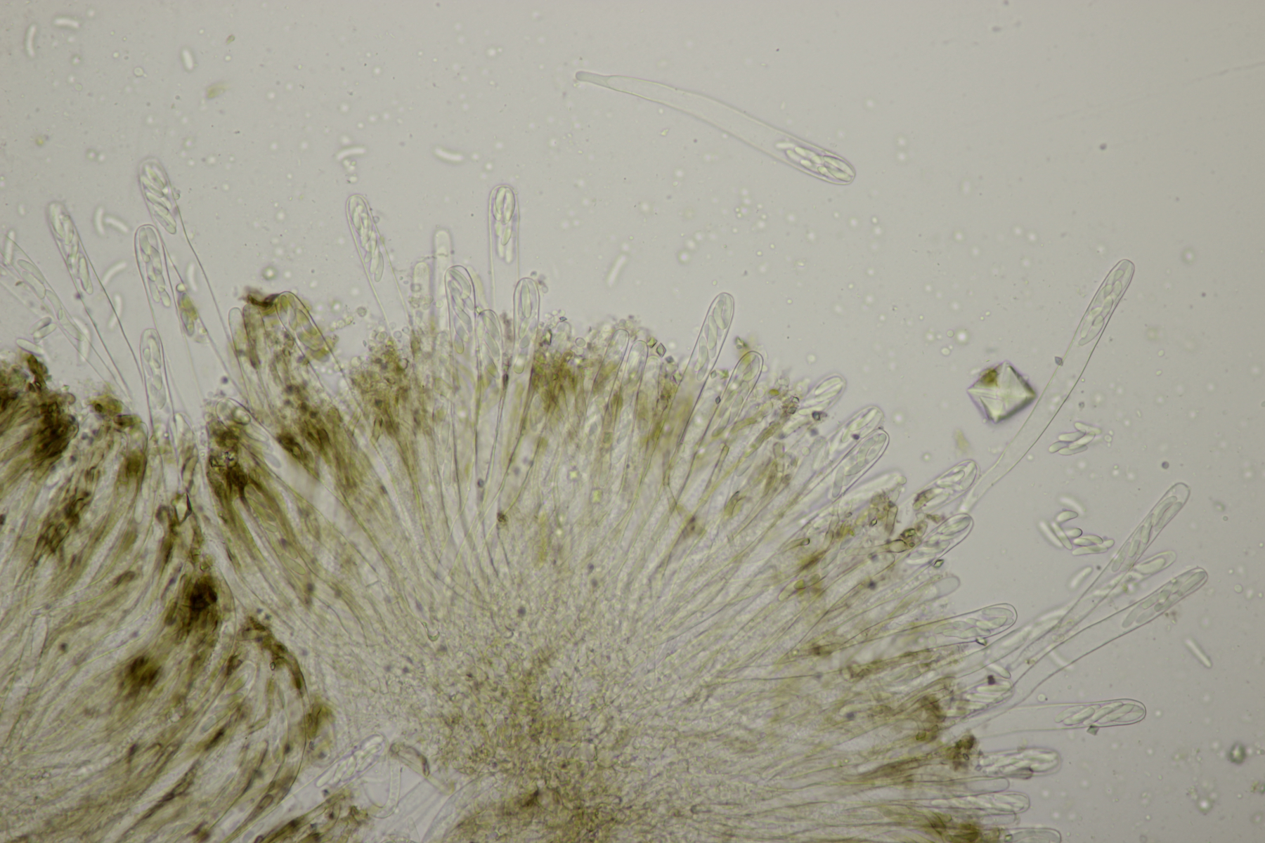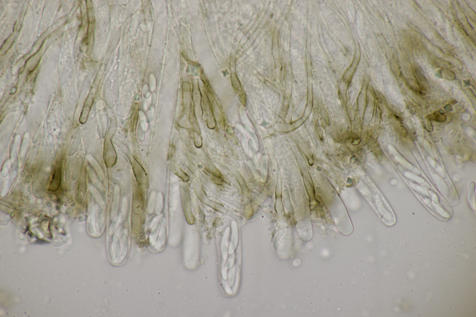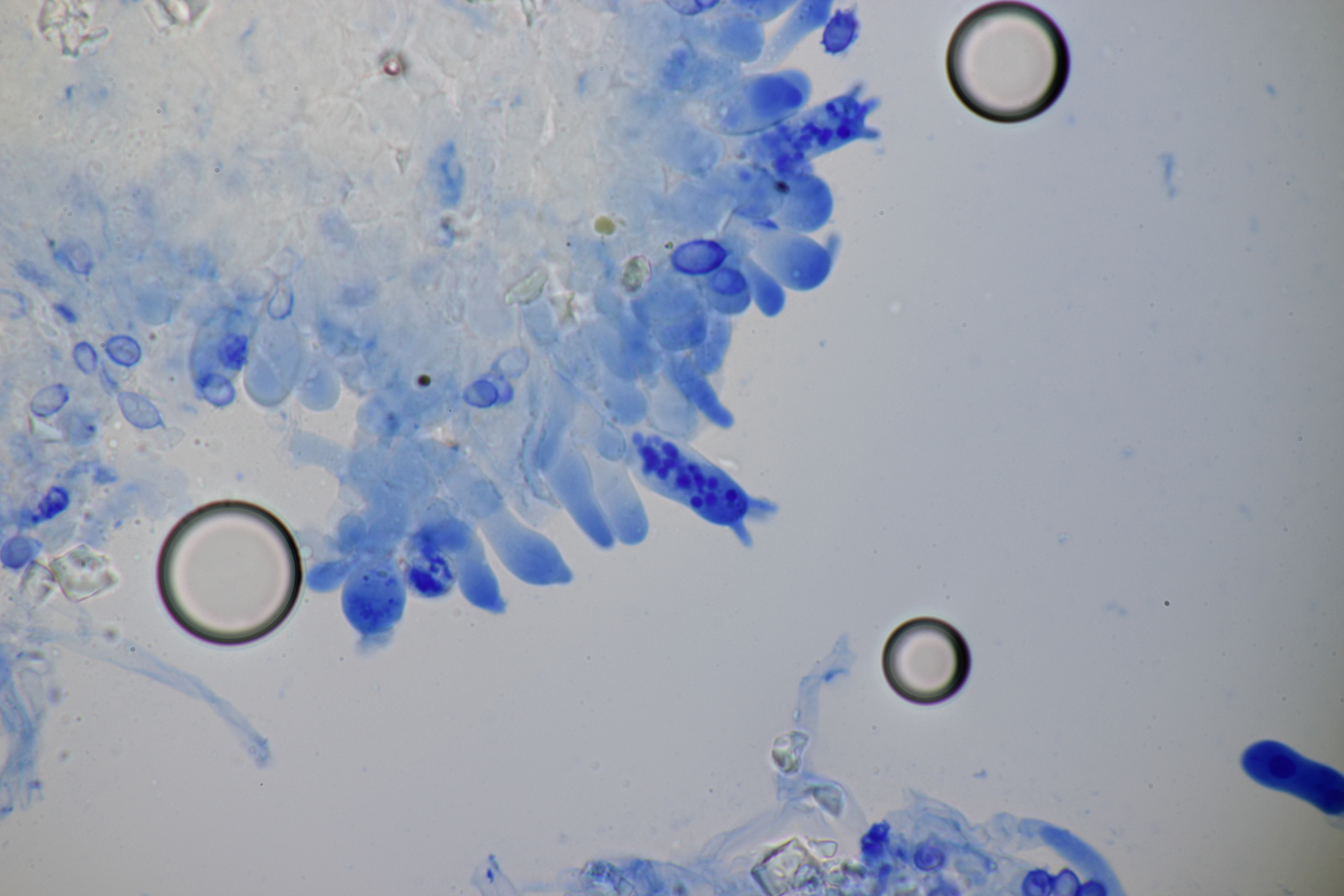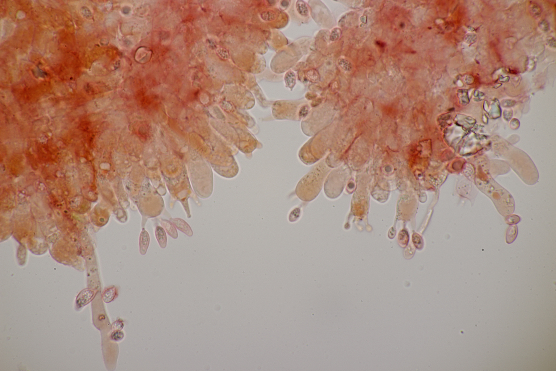 Dafür lohnt es sich, den fruchtkörper zu schneiden, um dei Verteilung der Gloeocystiden zu prüfen. Die Methode, mit ner Nadel etwas abzukratzen und dann zu quetschen, ist oft schneller, aber es lohnt sich m.E. immer, sich auch mal den genauen Aufbau und die Schichtung anzusehen. ;)