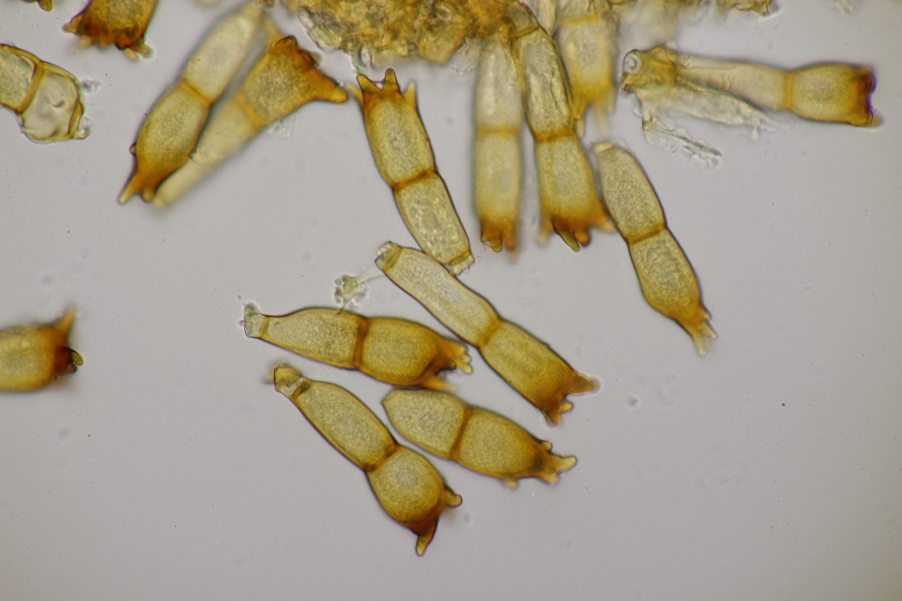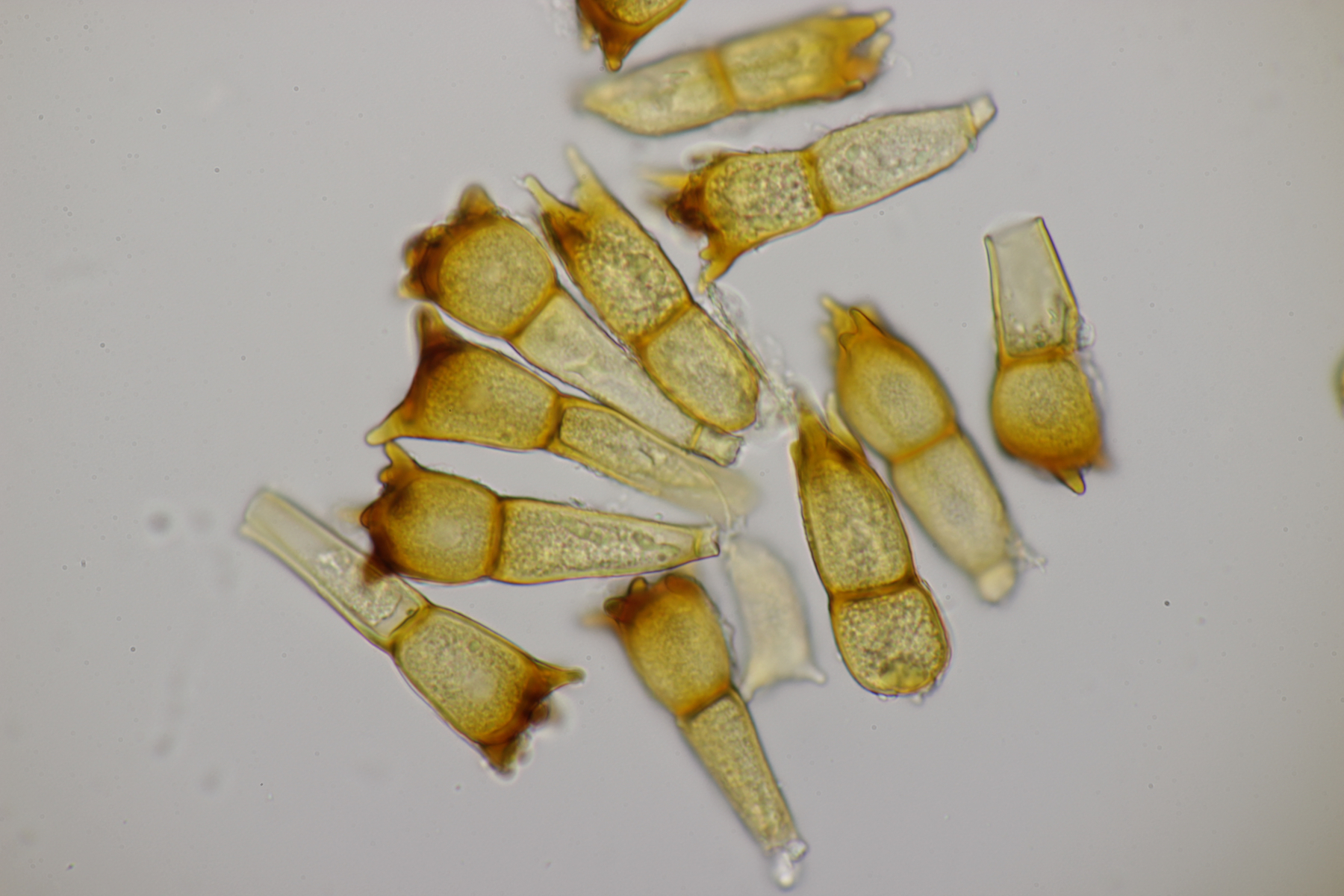3. Lindtneria leucobryophila s.l. Die Sporen messen (6.5-9.0) µm x (4.5-5.0) µm, Q=1.3-2.3 und sind in der Form sehr variabel. Das übliche Dilemma halt...