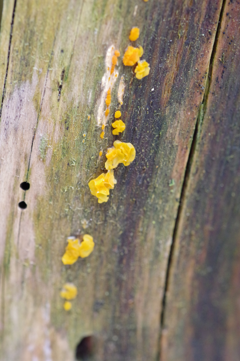 Pilz 3 sollte schon in die Gallerttränenverwandschaft gehören. Aber wohin, das könnte schwierig werden. D. chrysospermus ist das nicht, D. stillatus s.l. würde ich auch eher nicht vermuten. Optionen gibt es auch in den Nachbargattungen Ditiola, Guepiniopsis etc.