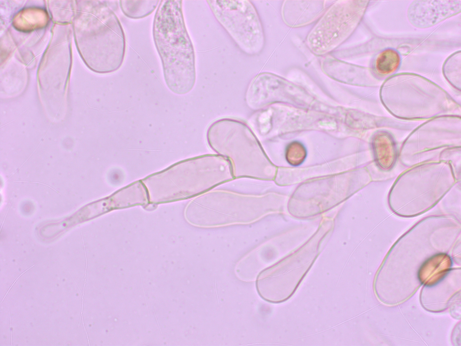 2-5fach septiert, bestehend aus zylindrischen oder keuligen Zellen. Endzellen 15-25 (-35) x 6-18 µm, teilweise eingeschnürt.