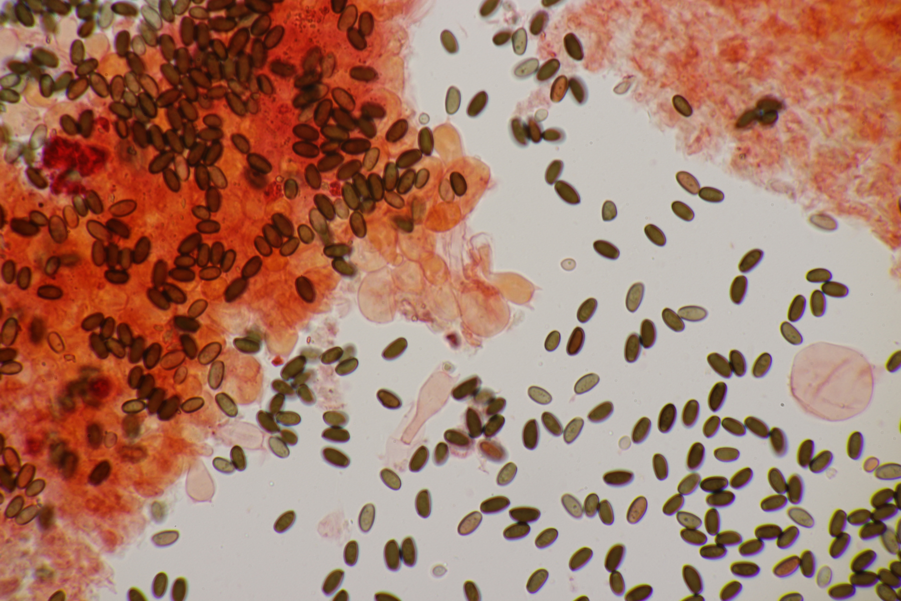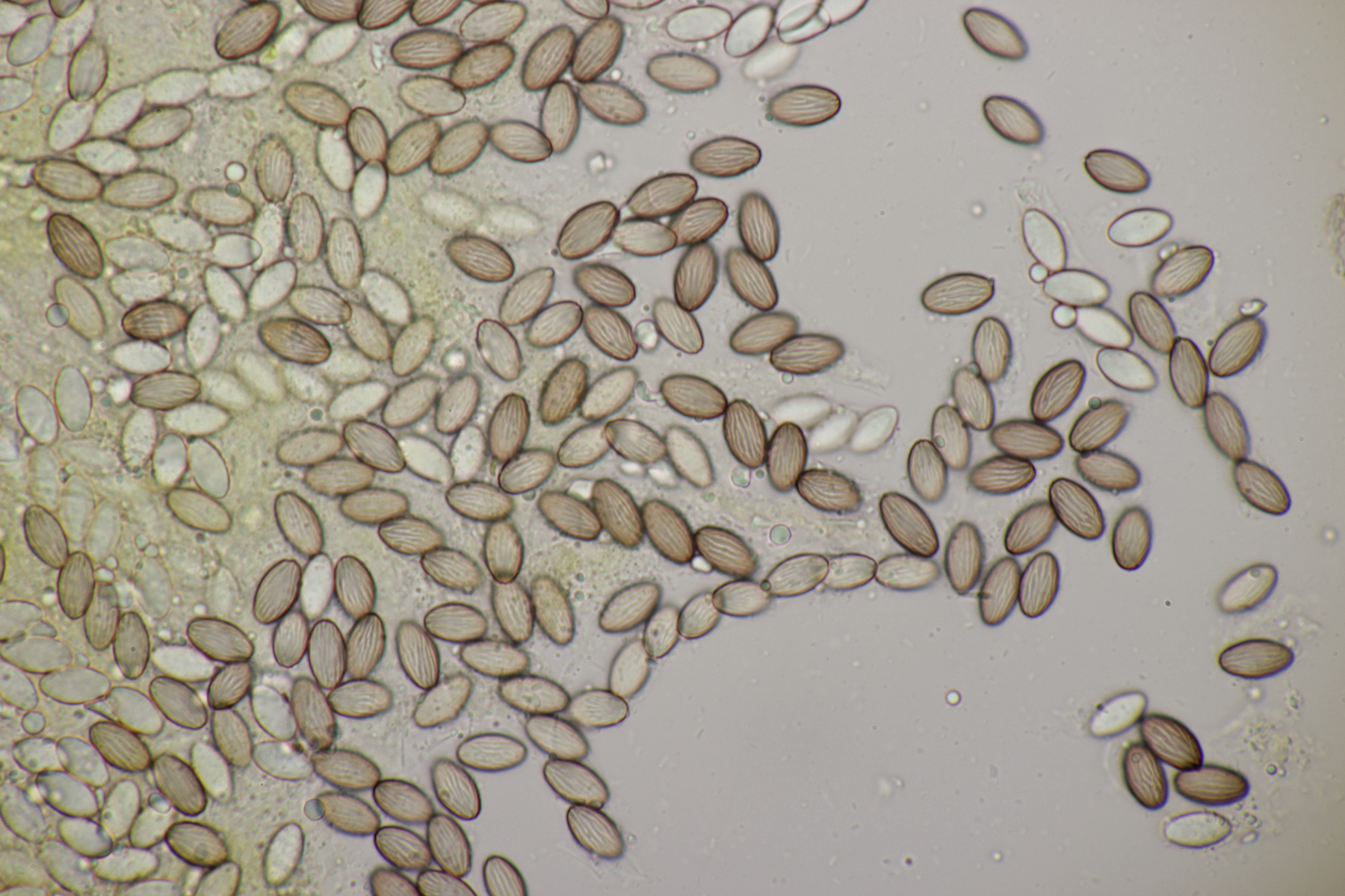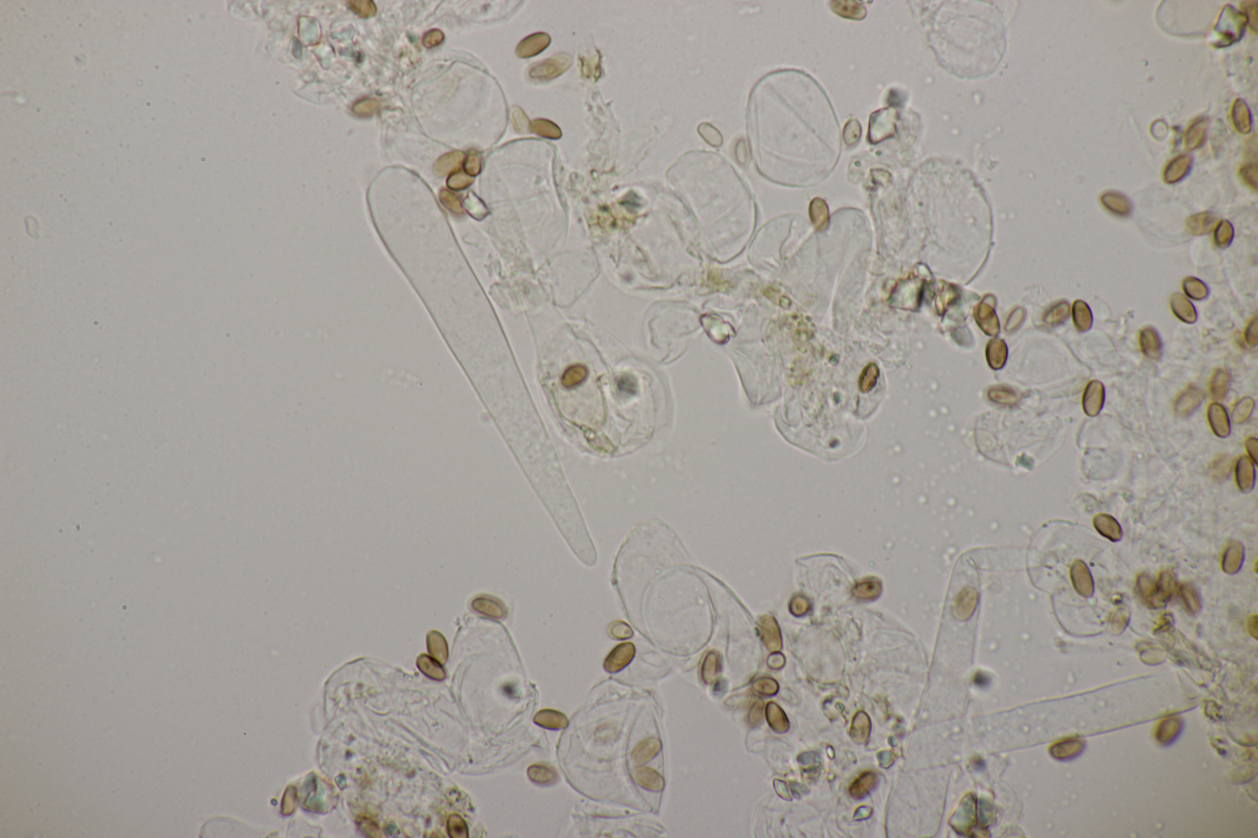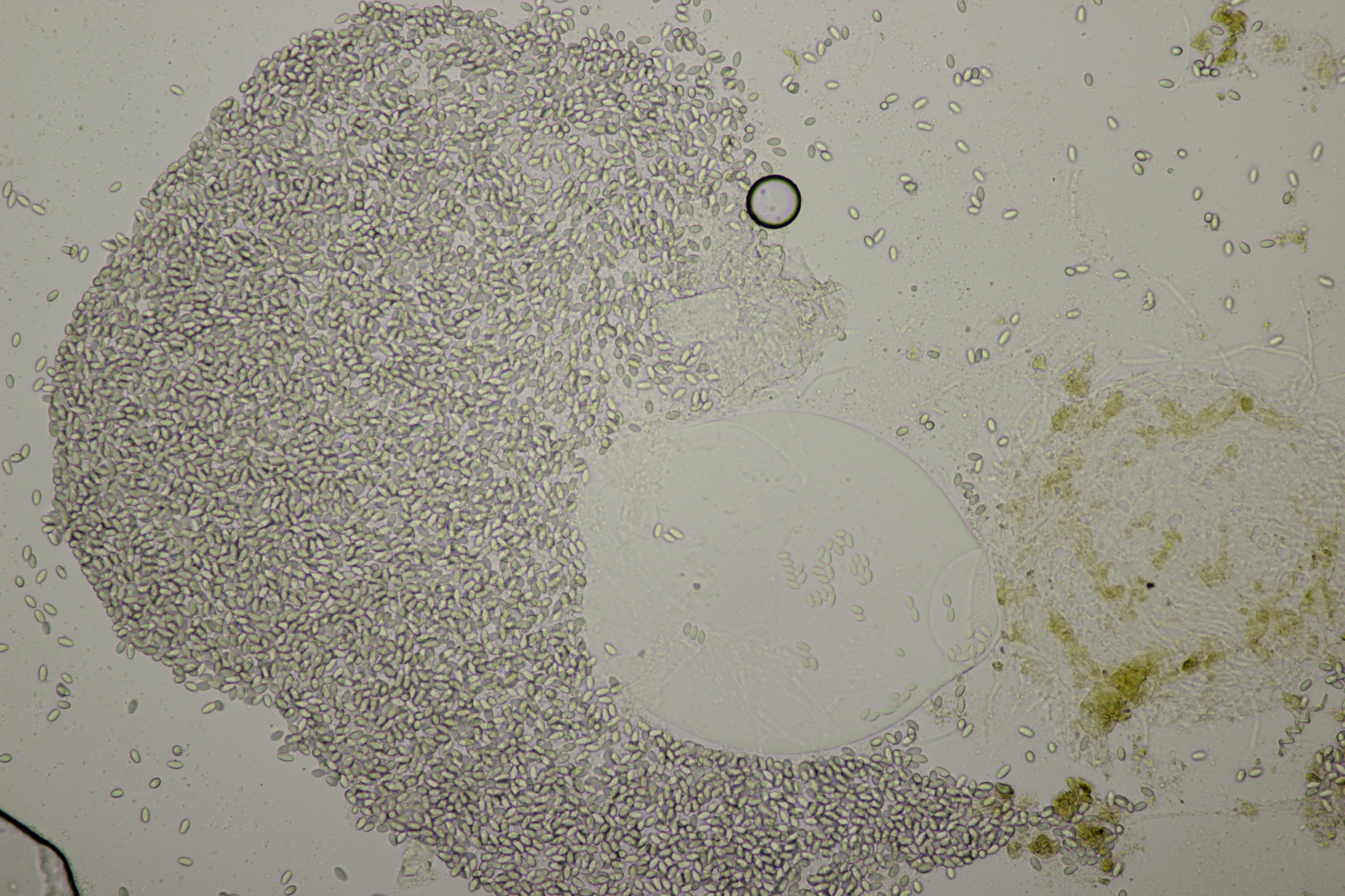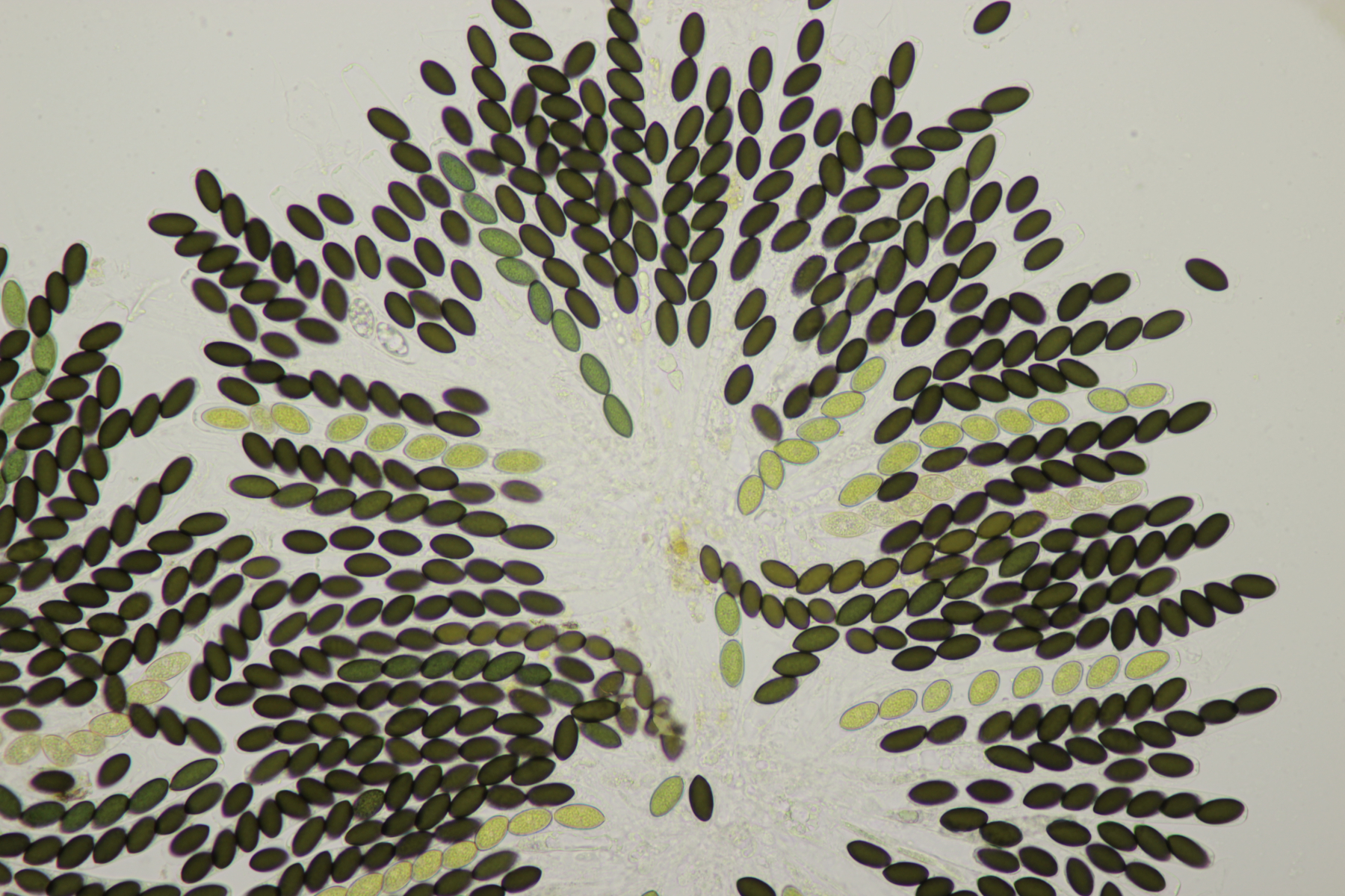 Die Sporen messen (9.6+-0.5) µm x (5.2+-0.3) µm, Q=1.9+-0.2, bzw. (8.4-10.5) µm x (4.6-5.5) µm, Q=1.5-2.2, womit ich dann bei Pilobolus crystallinus lande. Den hatte ich bis dato noch nicht. Mal schauen, was der Hase in den kommenden Wochen noch so alles bereit halten wird.