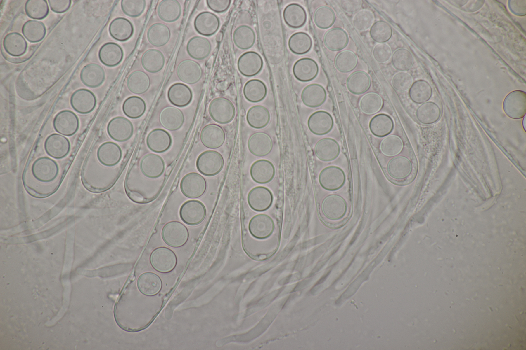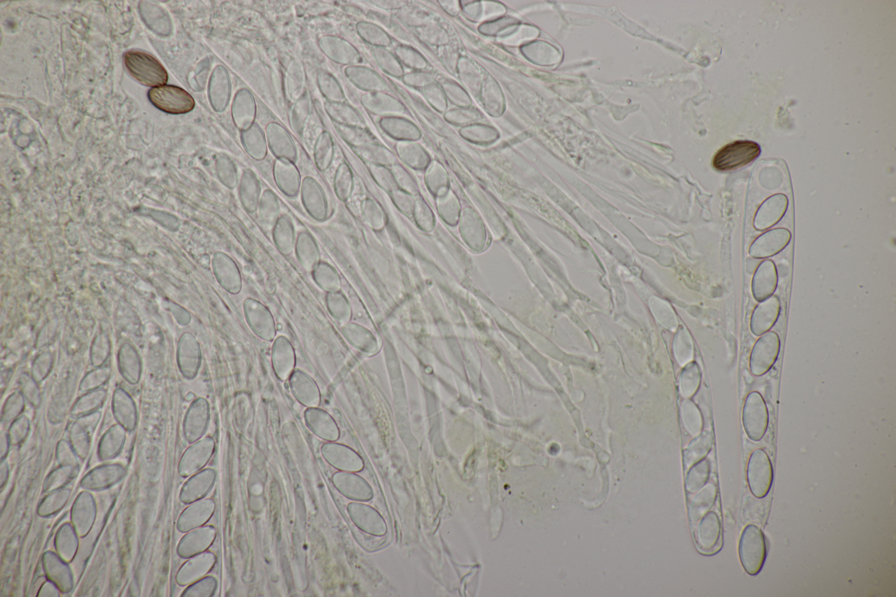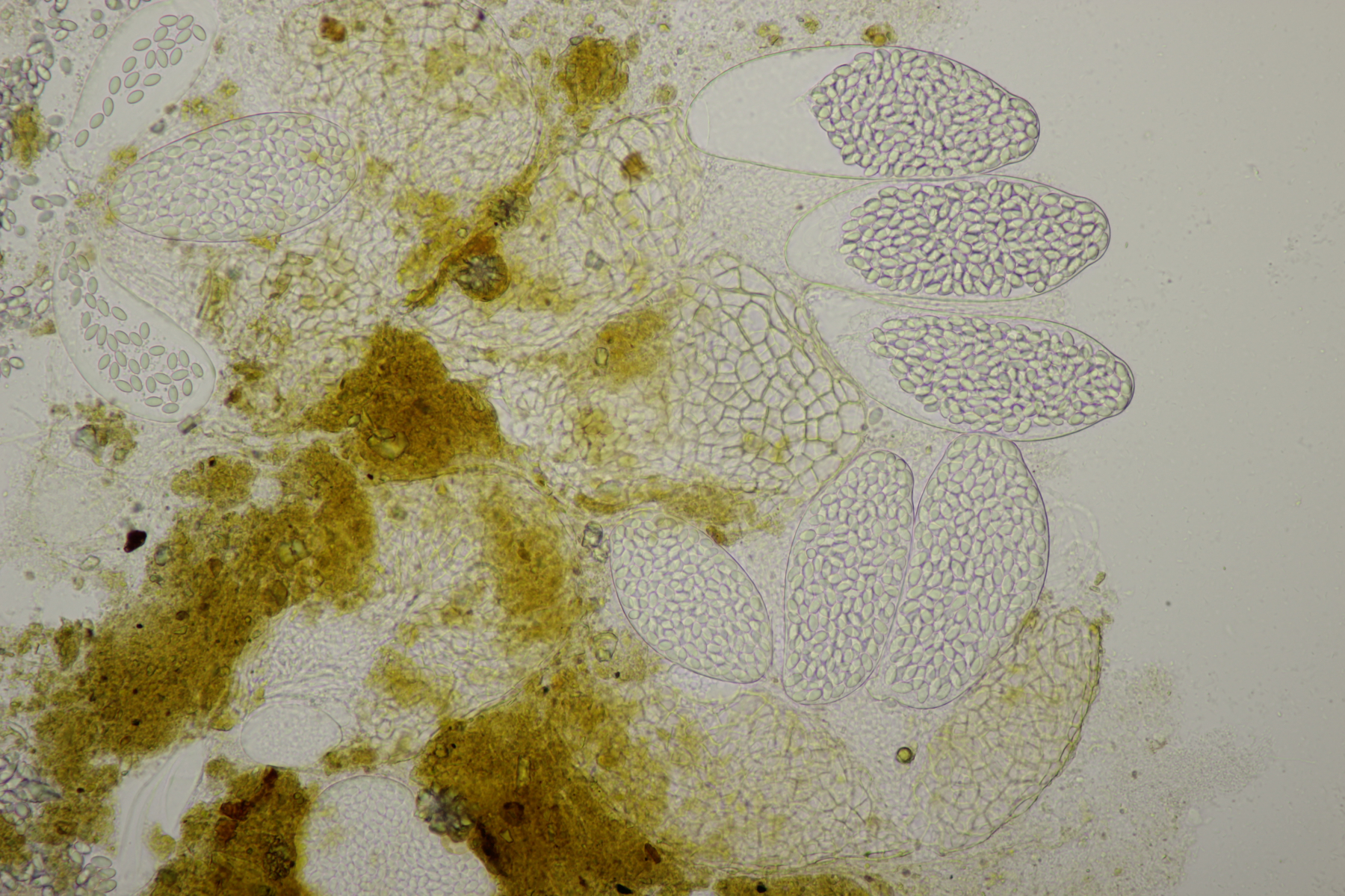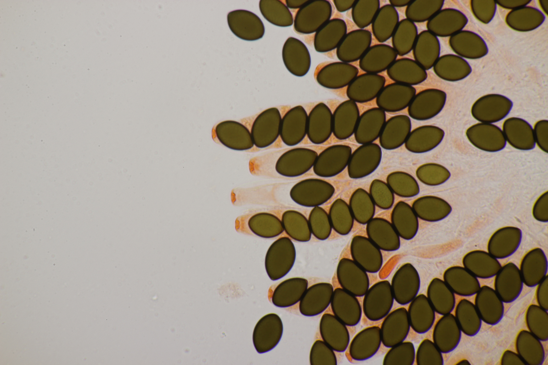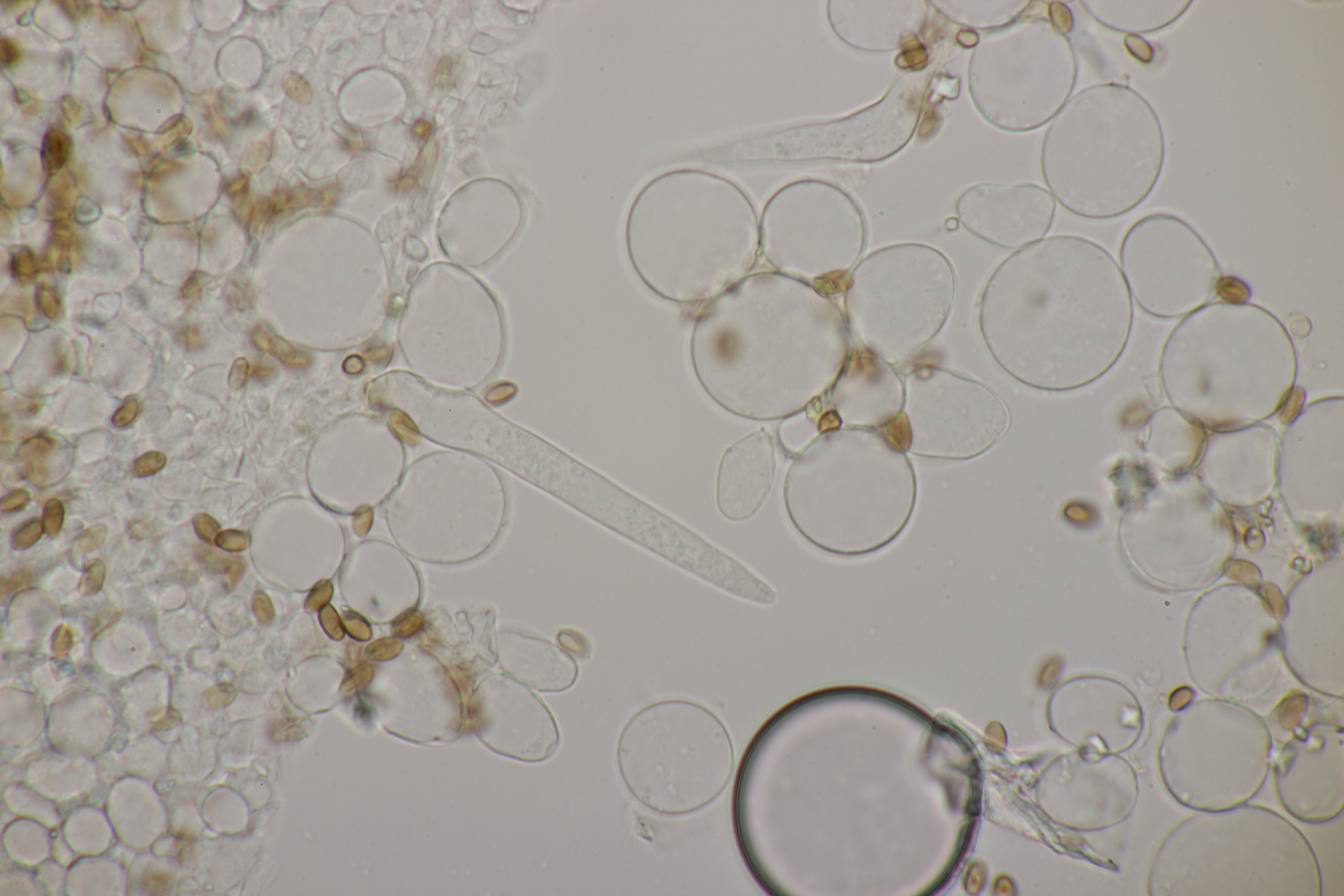 Die Sporen messen (9.6+-0.5) µm x (5.2+-0.3) µm, Q=1.9+-0.2, bzw. (8.4-10.5) µm x (4.6-5.5) µm, Q=1.5-2.2, womit ich dann bei Pilobolus crystallinus lande. Den hatte ich bis dato noch nicht. Mal schauen, was der Hase in den kommenden Wochen noch so alles bereit halten wird.