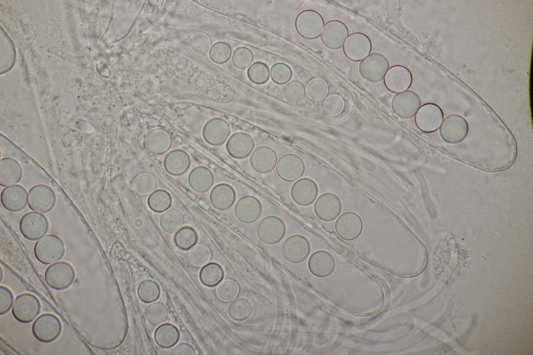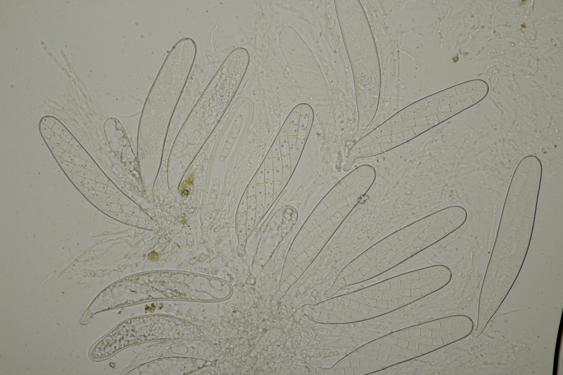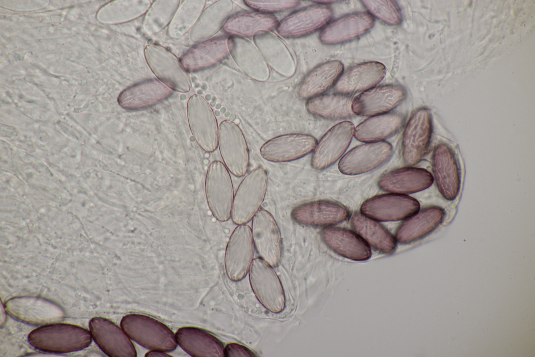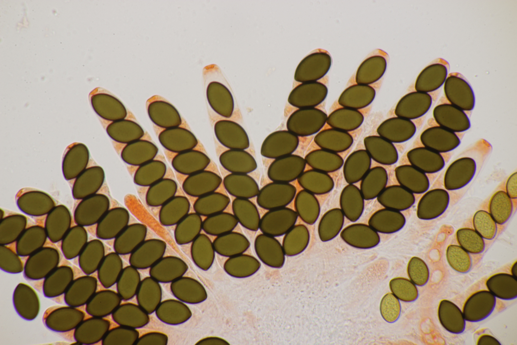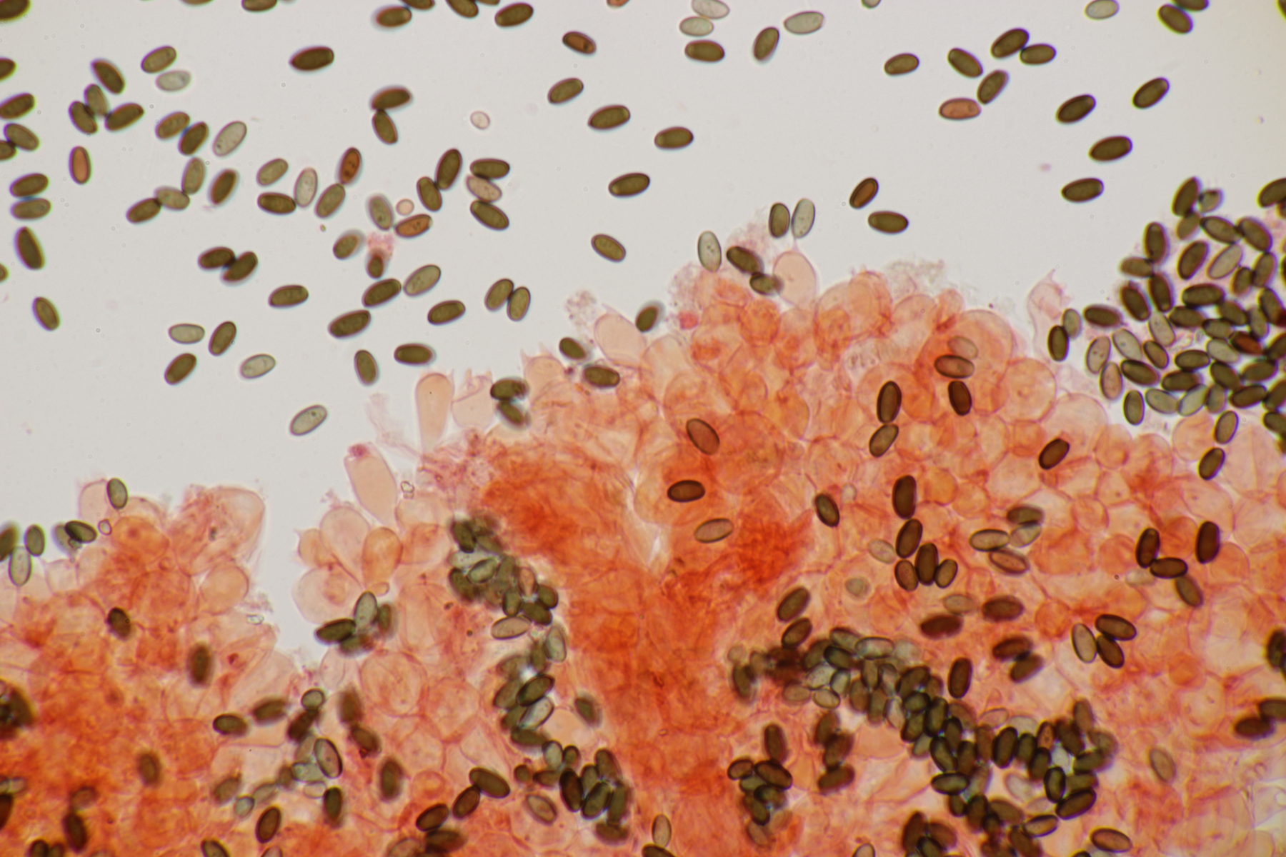 Die Sporen messen (9.6+-0.5) µm x (5.2+-0.3) µm, Q=1.9+-0.2, bzw. (8.4-10.5) µm x (4.6-5.5) µm, Q=1.5-2.2, womit ich dann bei Pilobolus crystallinus lande. Den hatte ich bis dato noch nicht. Mal schauen, was der Hase in den kommenden Wochen noch so alles bereit halten wird.