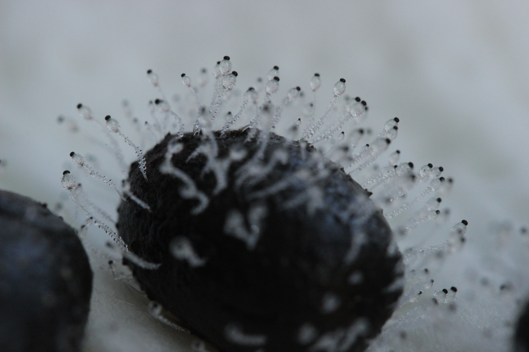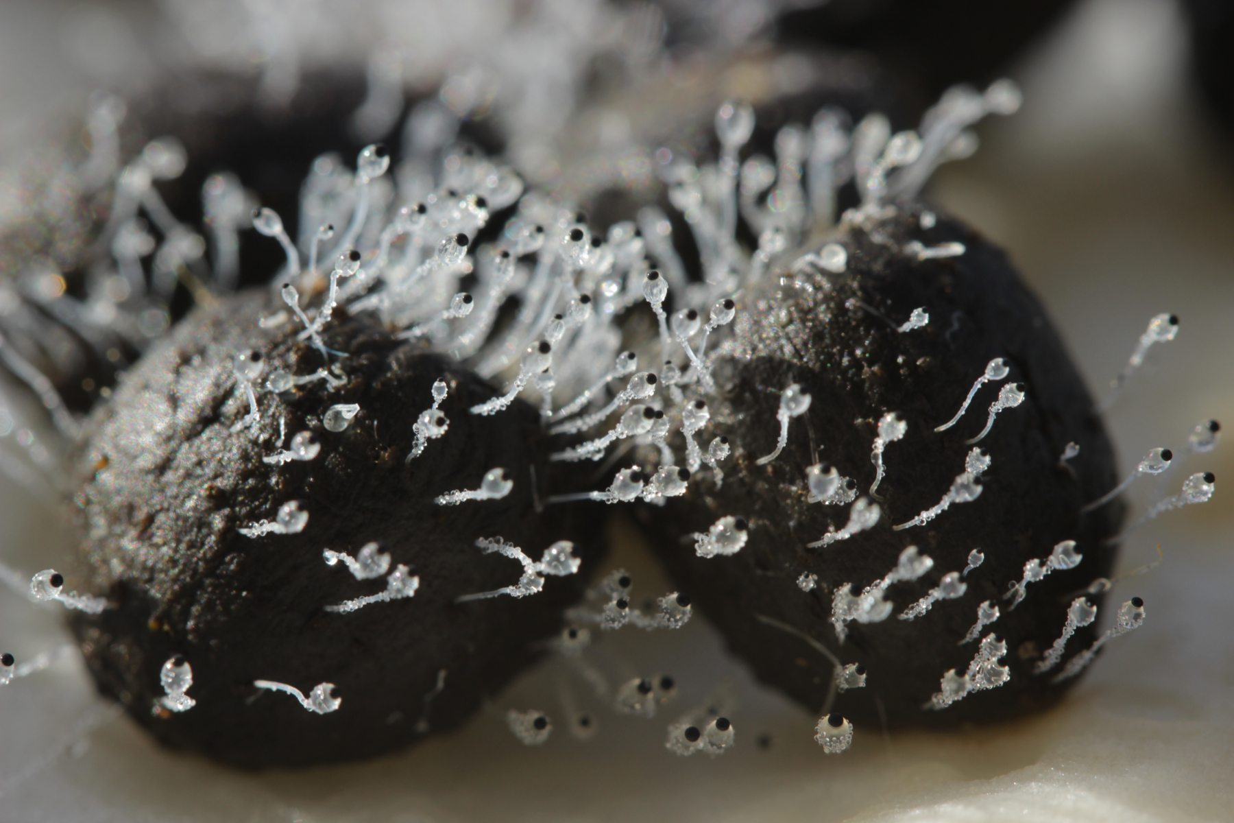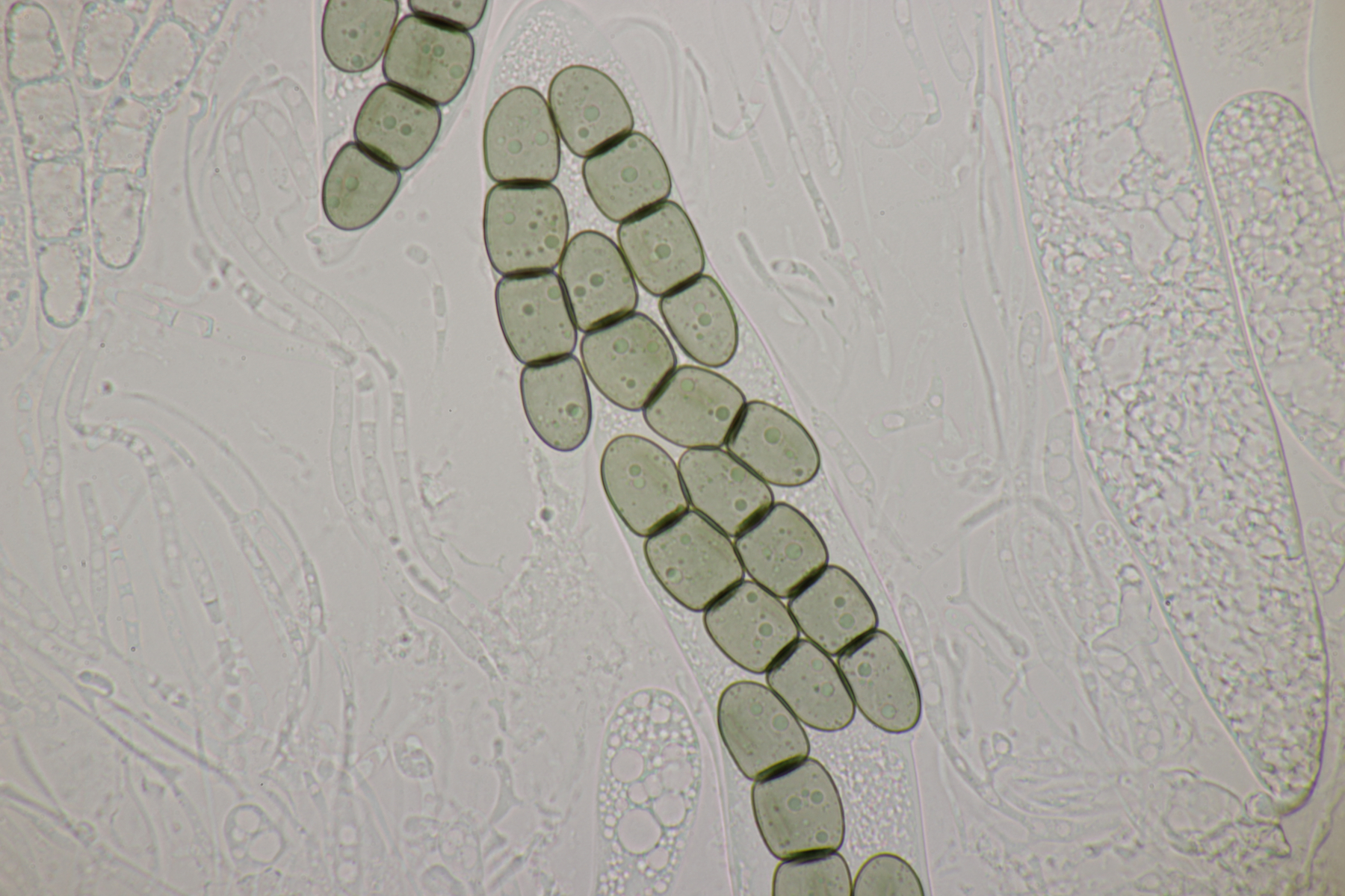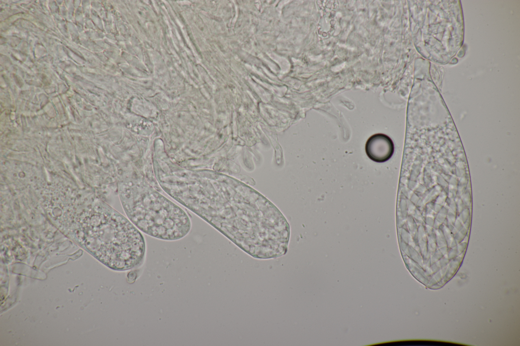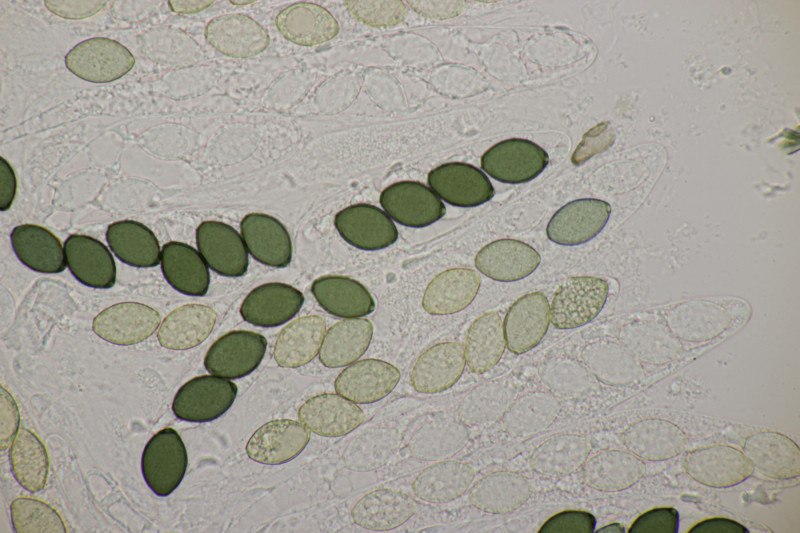Die Sporen messen (9.6+-0.5) µm x (5.2+-0.3) µm, Q=1.9+-0.2, bzw. (8.4-10.5) µm x (4.6-5.5) µm, Q=1.5-2.2, womit ich dann bei Pilobolus crystallinus lande. Den hatte ich bis dato noch nicht. Mal schauen, was der Hase in den kommenden Wochen noch so alles bereit halten wird.