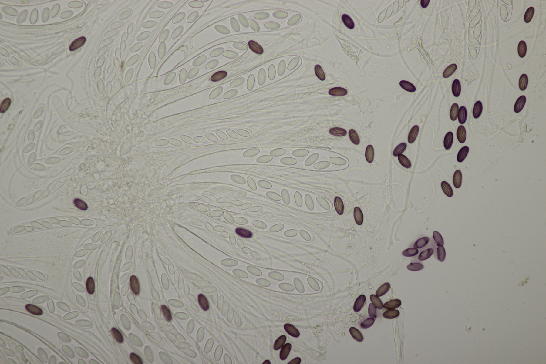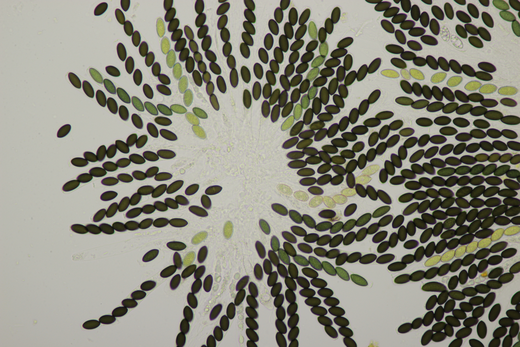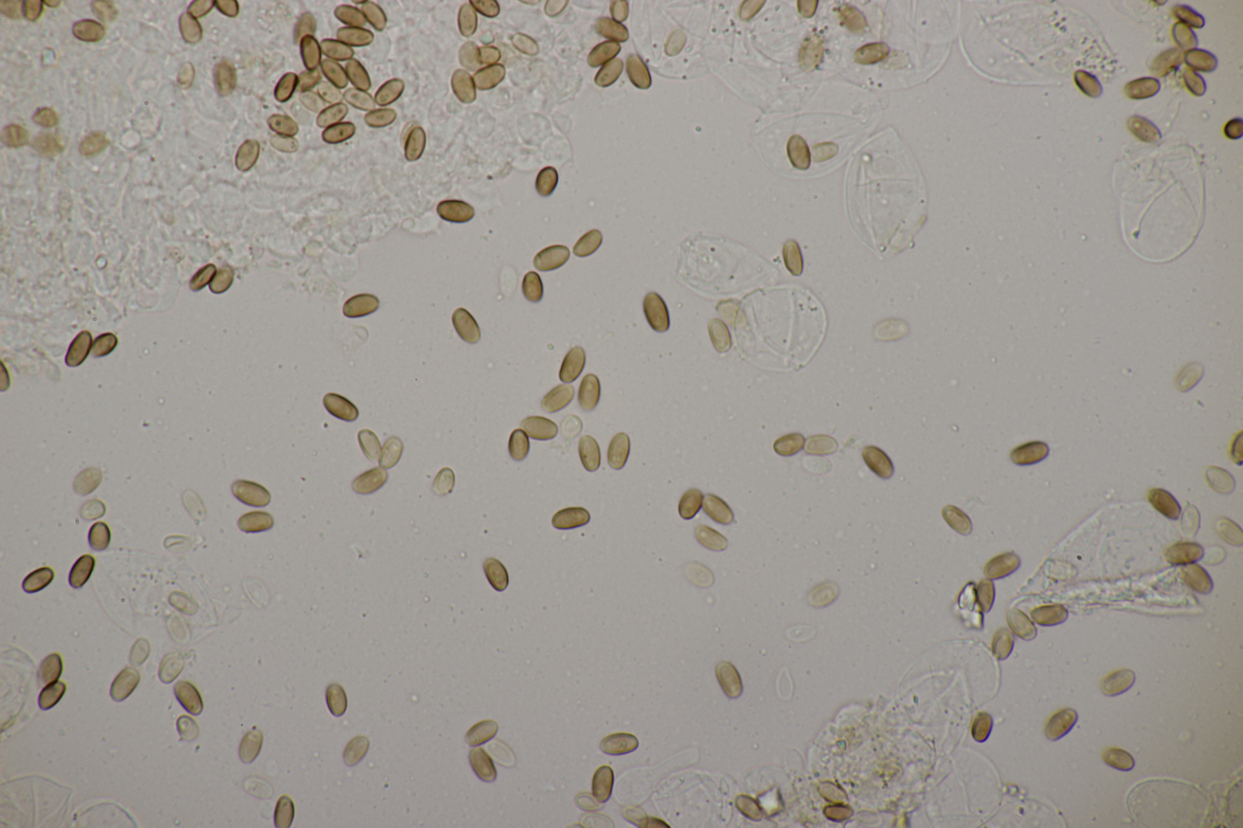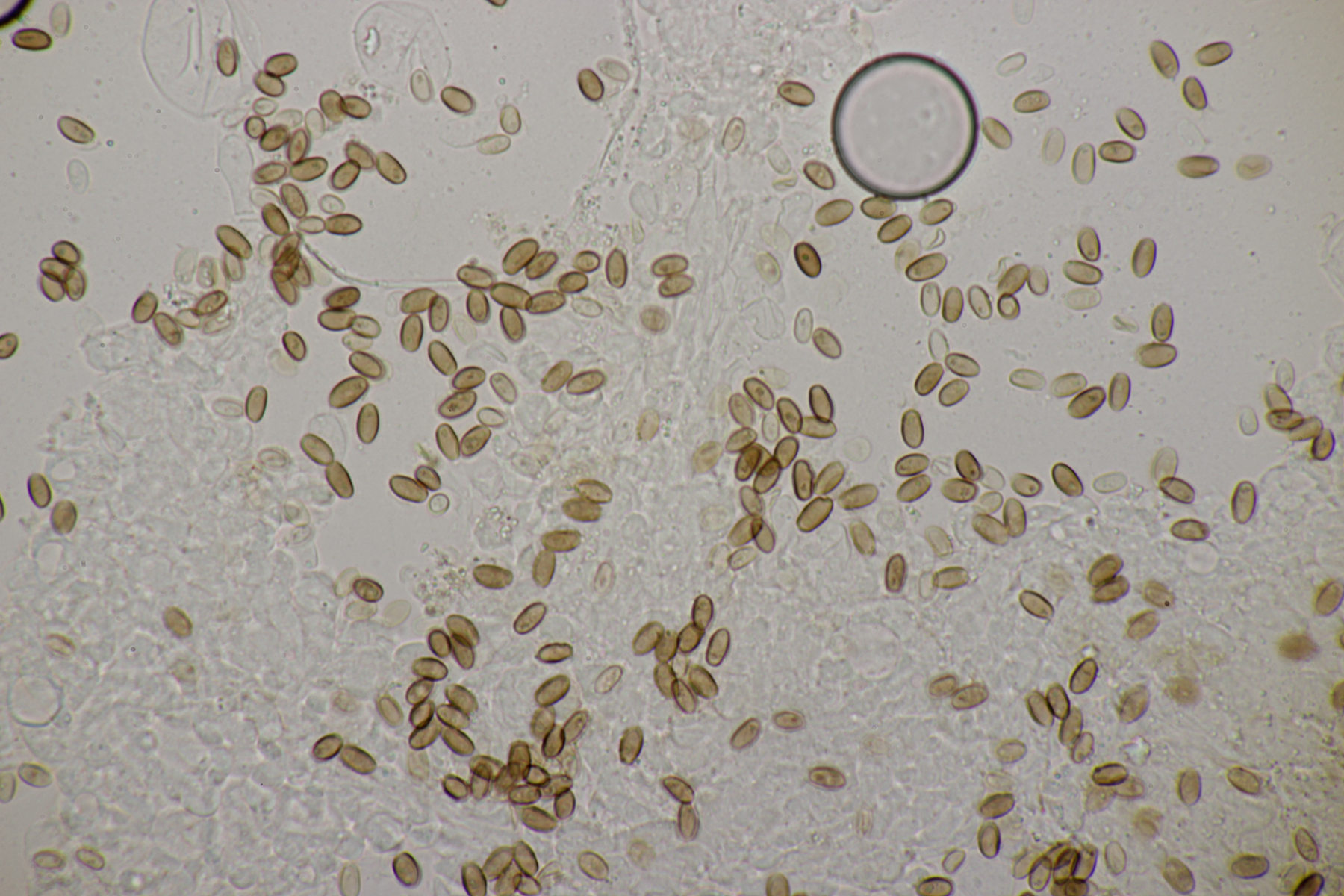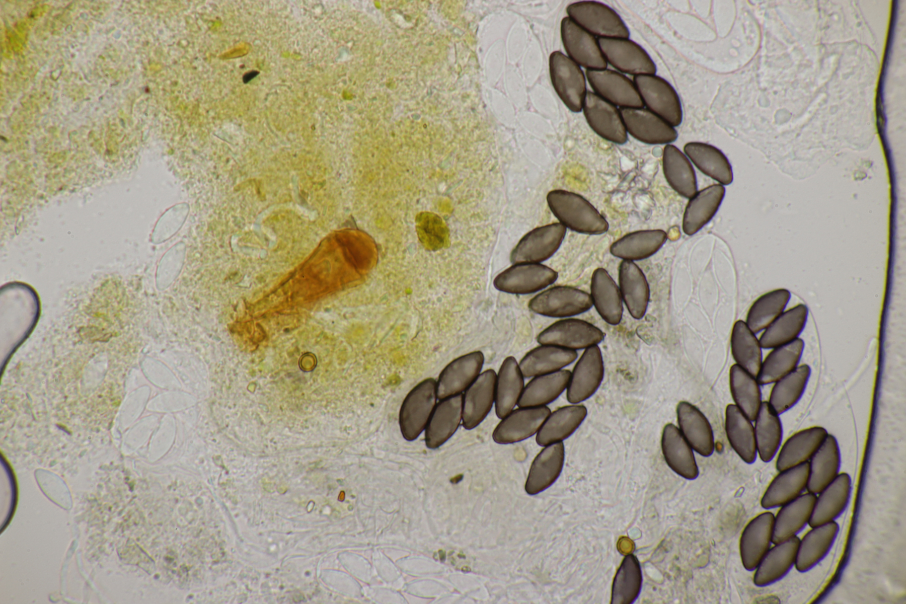 Die Sporen messen (9.6+-0.5) µm x (5.2+-0.3) µm, Q=1.9+-0.2, bzw. (8.4-10.5) µm x (4.6-5.5) µm, Q=1.5-2.2, womit ich dann bei Pilobolus crystallinus lande. Den hatte ich bis dato noch nicht. Mal schauen, was der Hase in den kommenden Wochen noch so alles bereit halten wird.