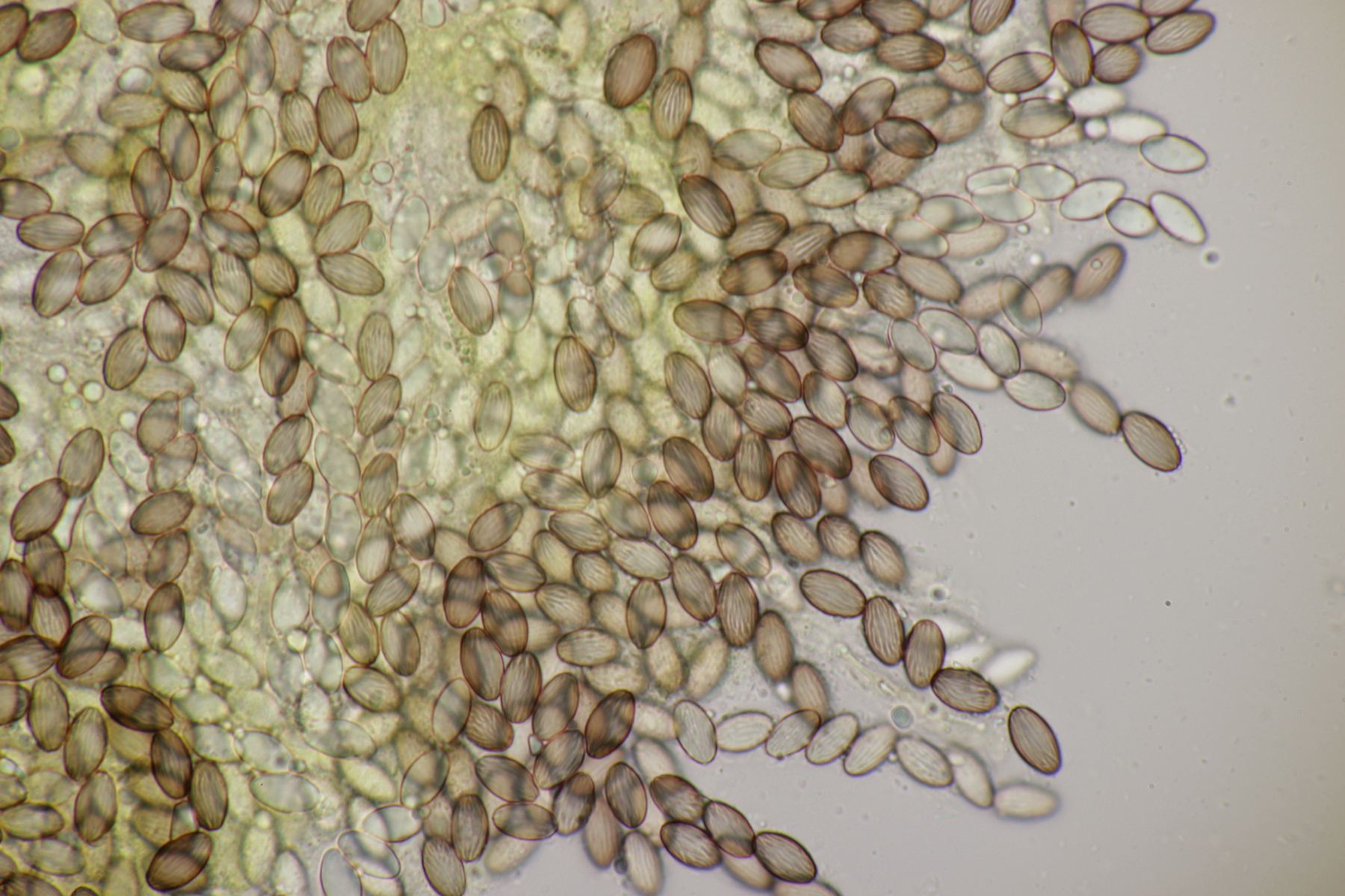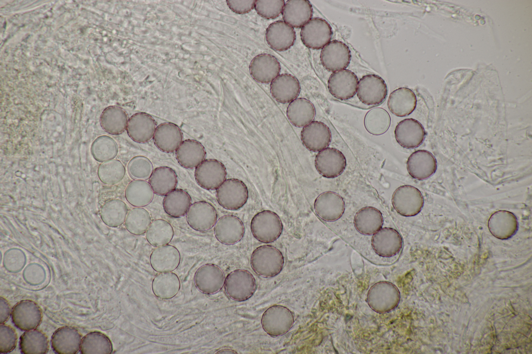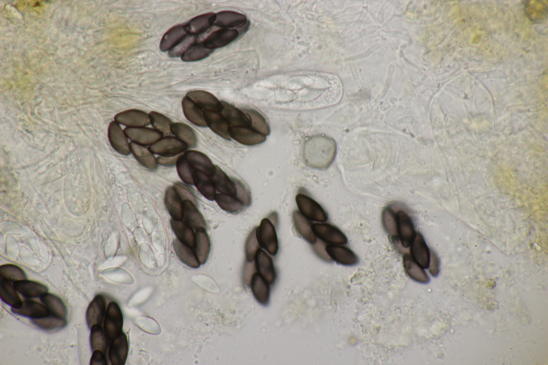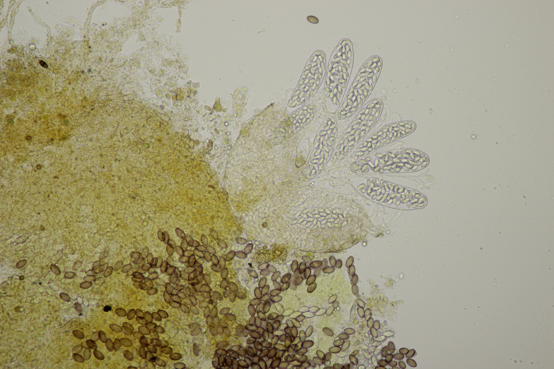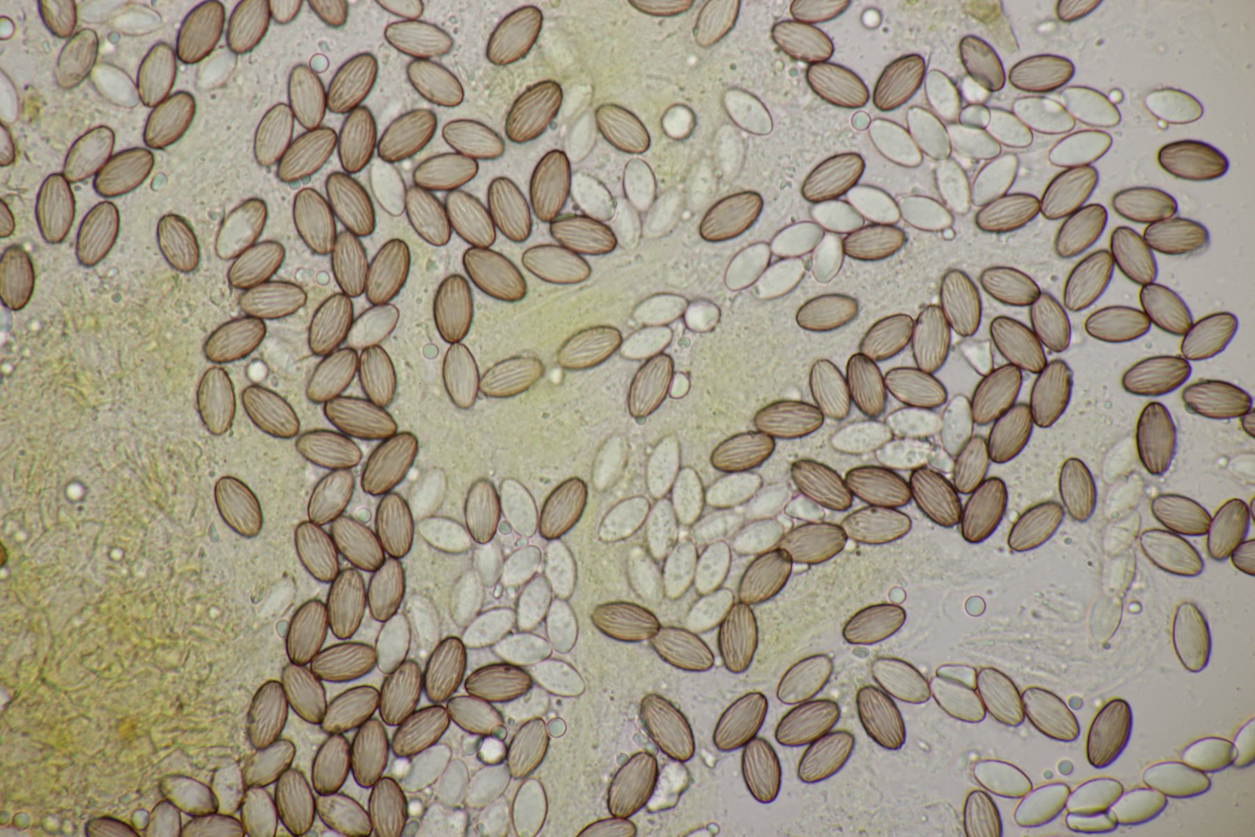 Die Sporen messen (9.6+-0.5) µm x (5.2+-0.3) µm, Q=1.9+-0.2, bzw. (8.4-10.5) µm x (4.6-5.5) µm, Q=1.5-2.2, womit ich dann bei Pilobolus crystallinus lande. Den hatte ich bis dato noch nicht. Mal schauen, was der Hase in den kommenden Wochen noch so alles bereit halten wird.
