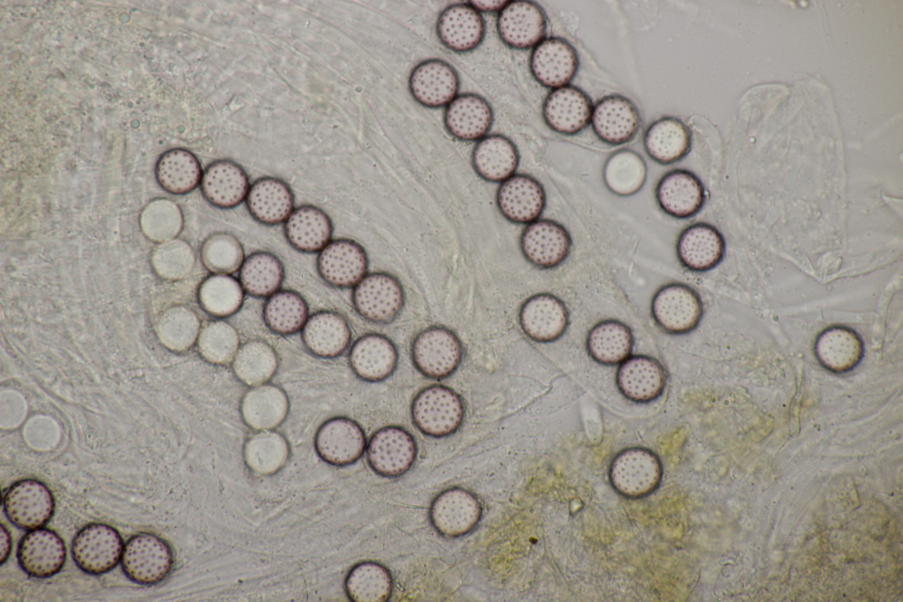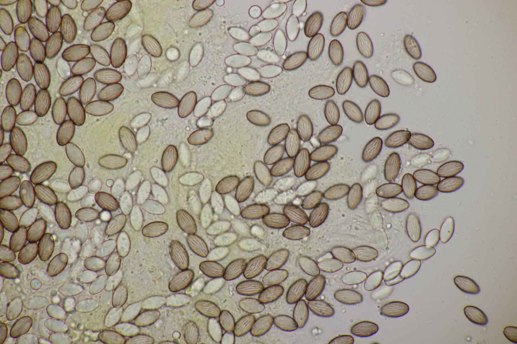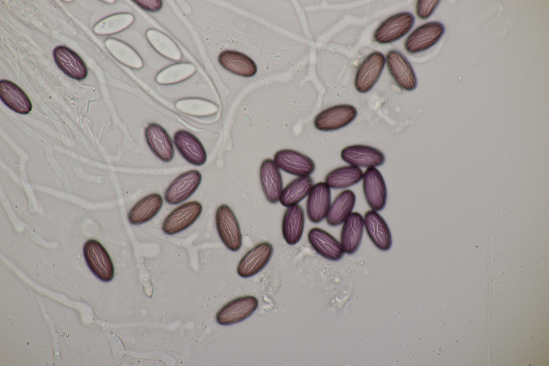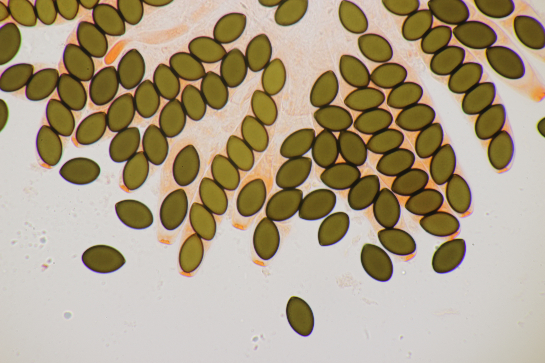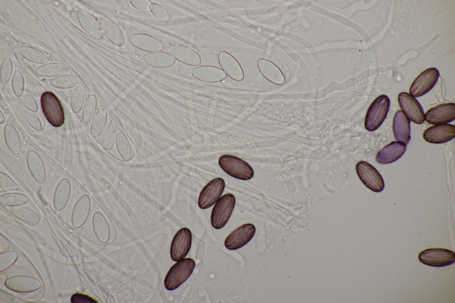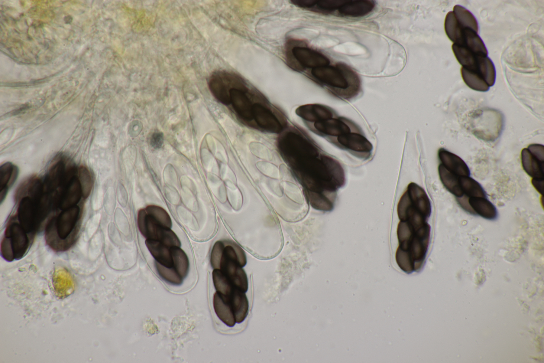 Die Sporen messen (9.6+-0.5) µm x (5.2+-0.3) µm, Q=1.9+-0.2, bzw. (8.4-10.5) µm x (4.6-5.5) µm, Q=1.5-2.2, womit ich dann bei Pilobolus crystallinus lande. Den hatte ich bis dato noch nicht. Mal schauen, was der Hase in den kommenden Wochen noch so alles bereit halten wird.