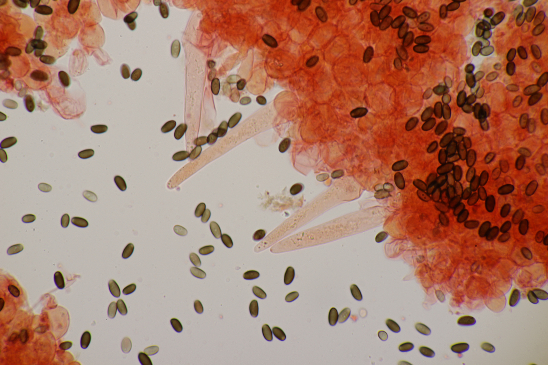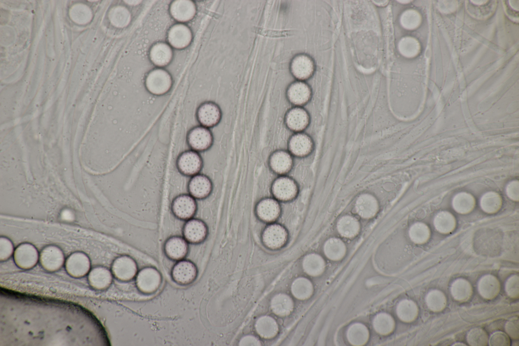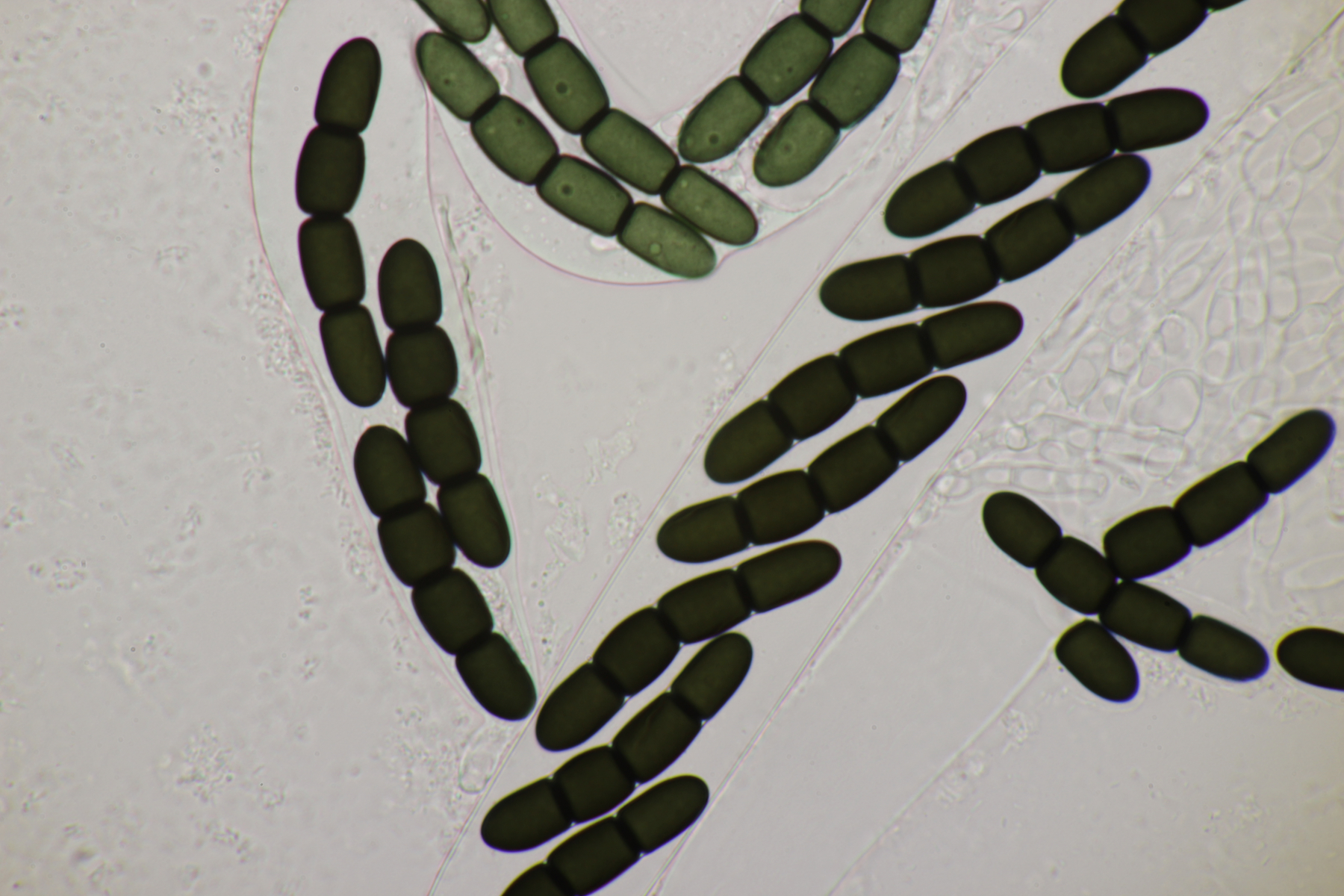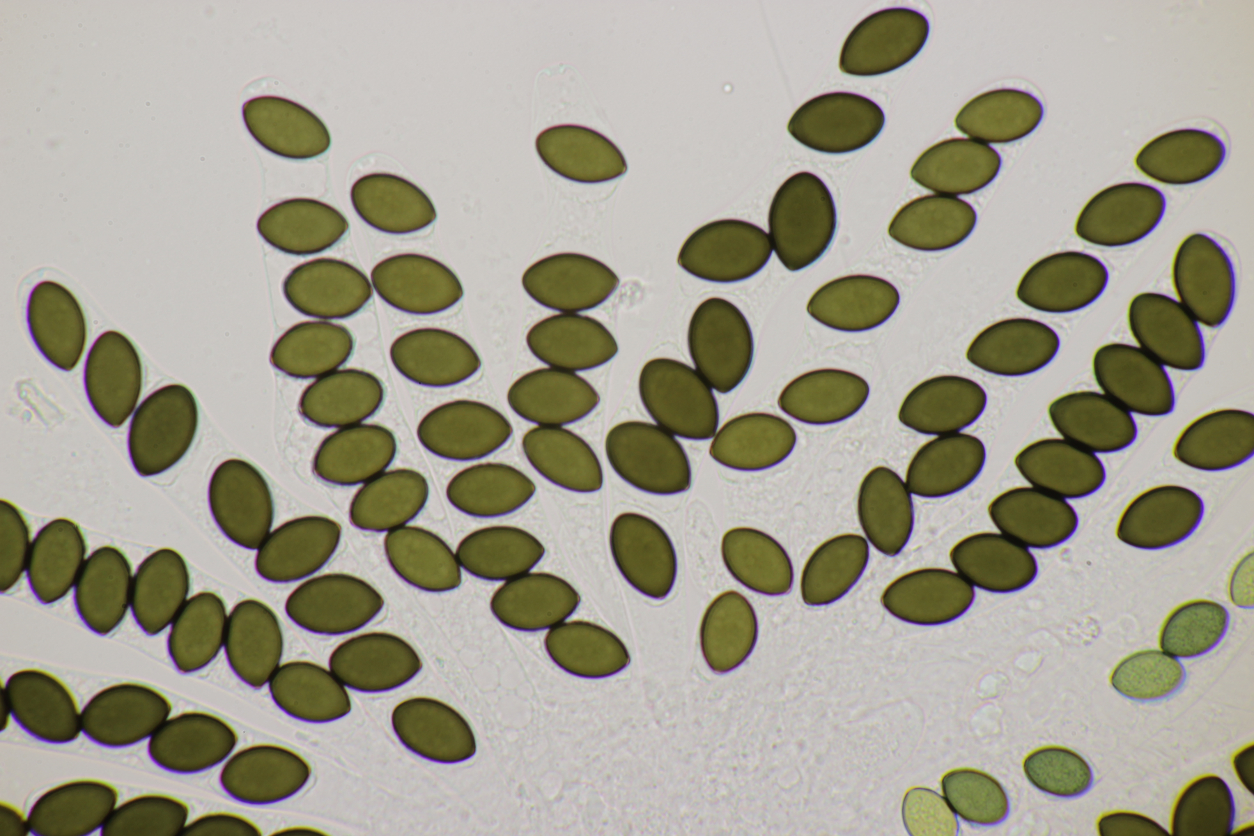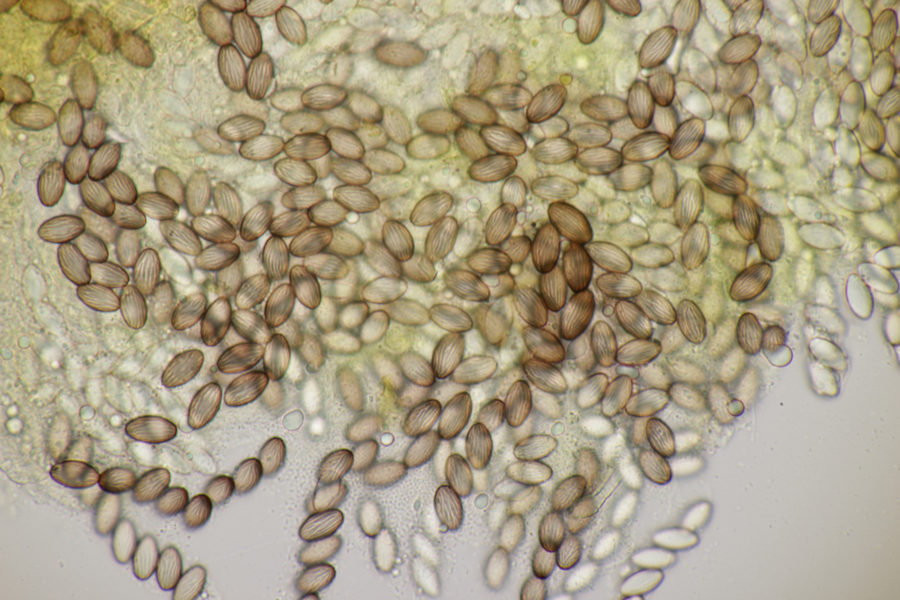 Die Sporen messen (9.6+-0.5) µm x (5.2+-0.3) µm, Q=1.9+-0.2, bzw. (8.4-10.5) µm x (4.6-5.5) µm, Q=1.5-2.2, womit ich dann bei Pilobolus crystallinus lande. Den hatte ich bis dato noch nicht. Mal schauen, was der Hase in den kommenden Wochen noch so alles bereit halten wird.