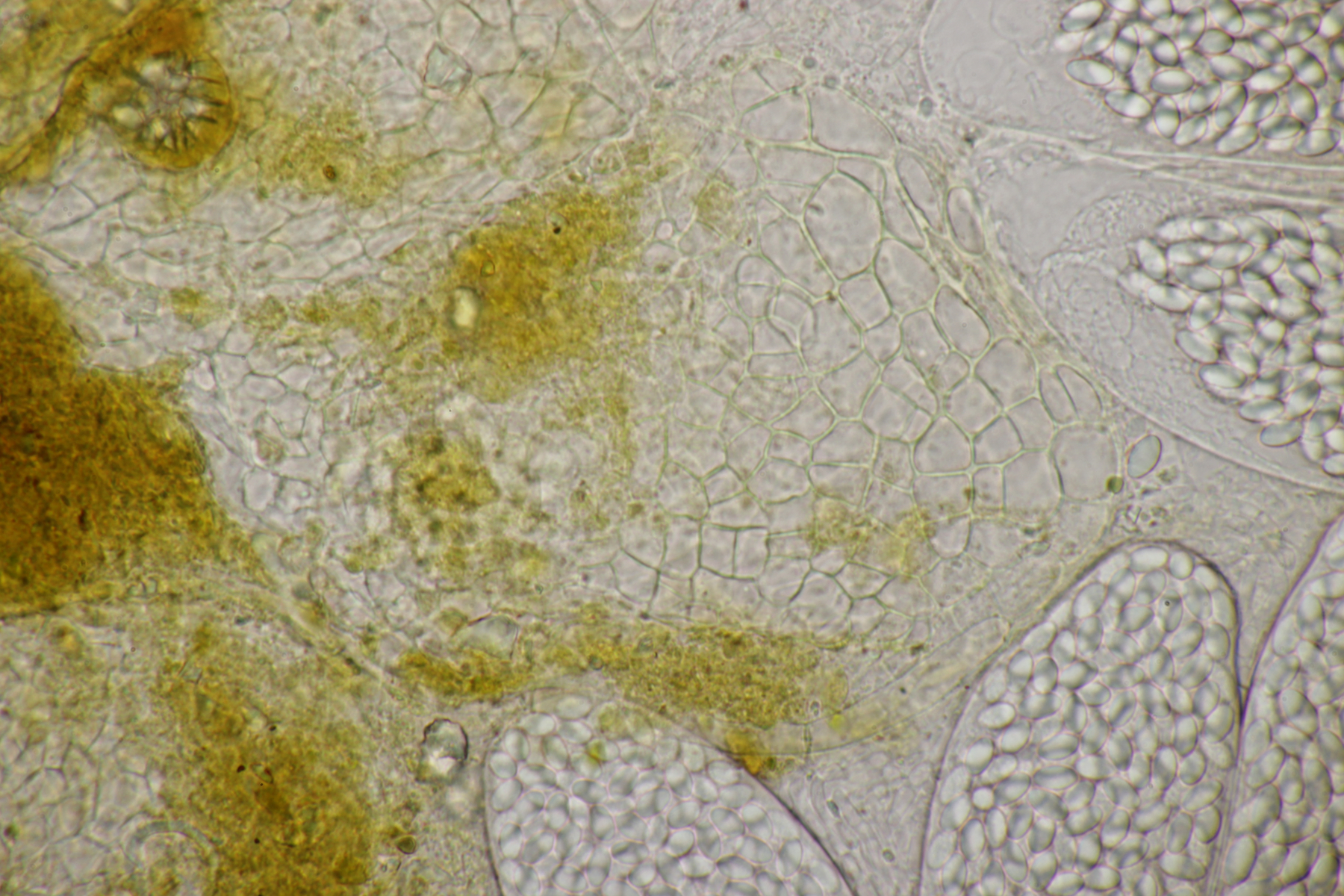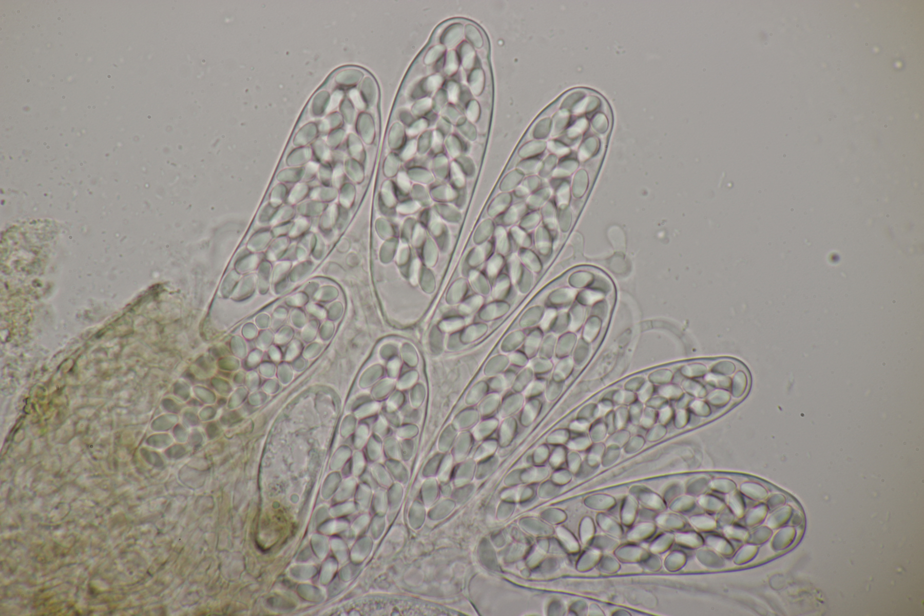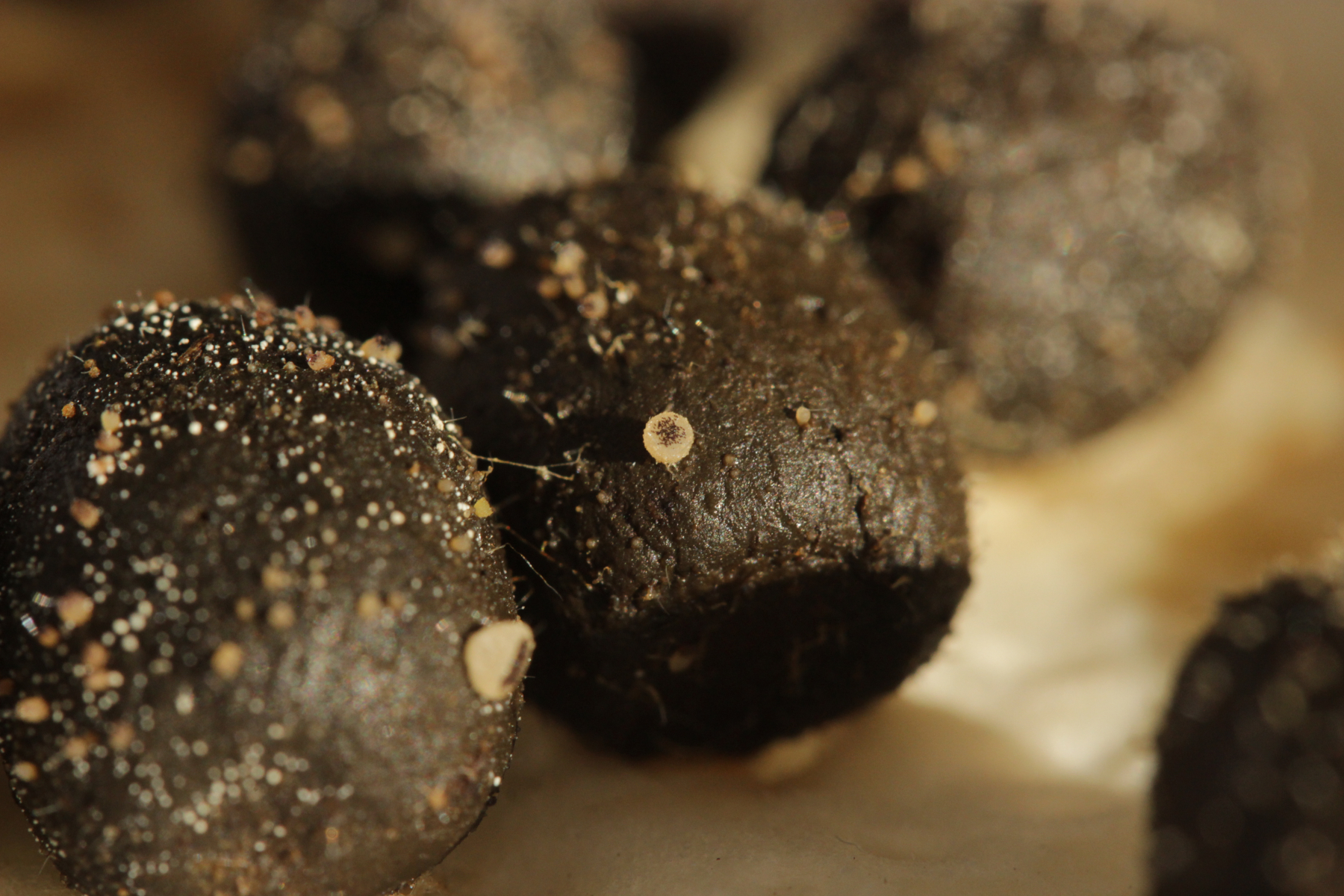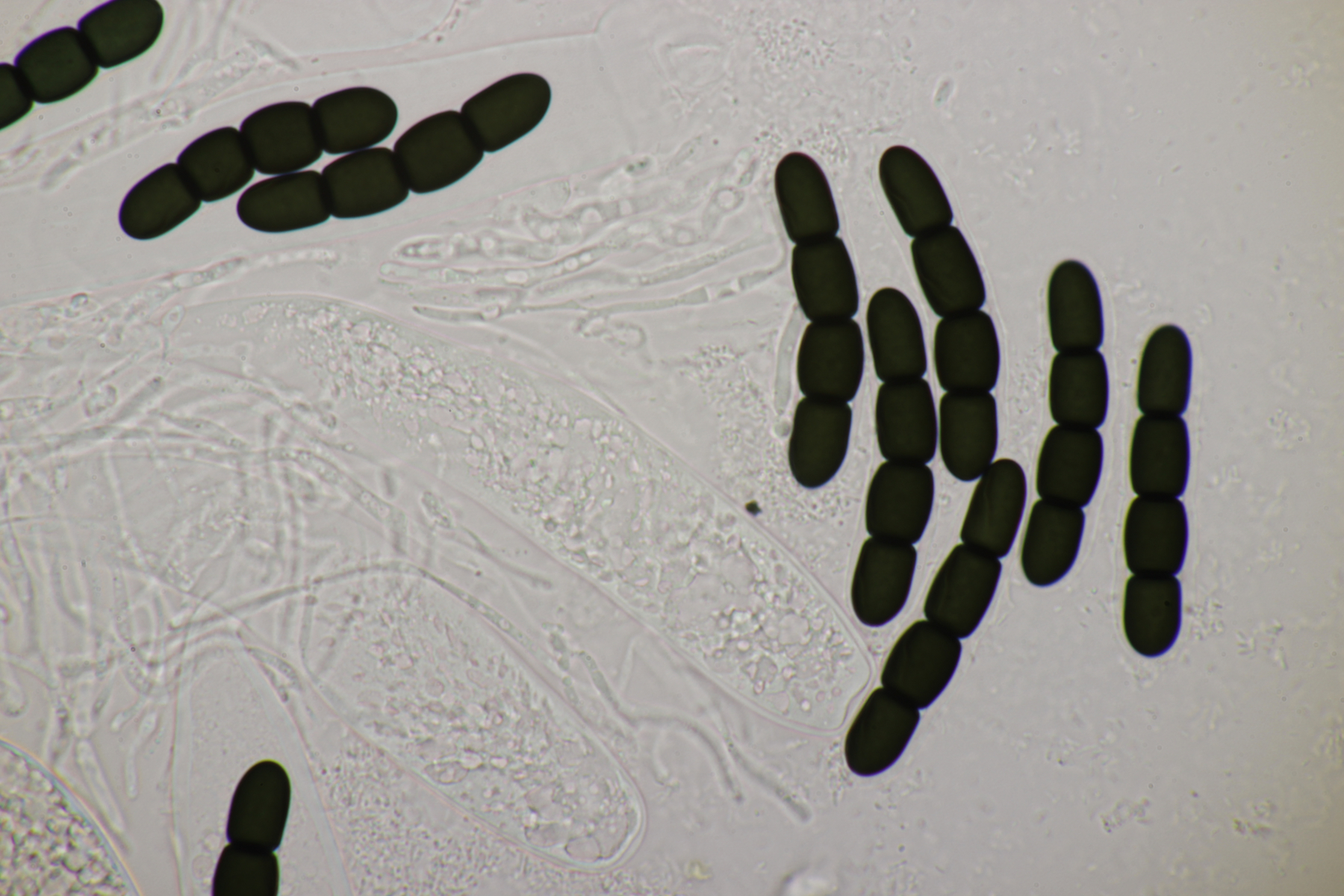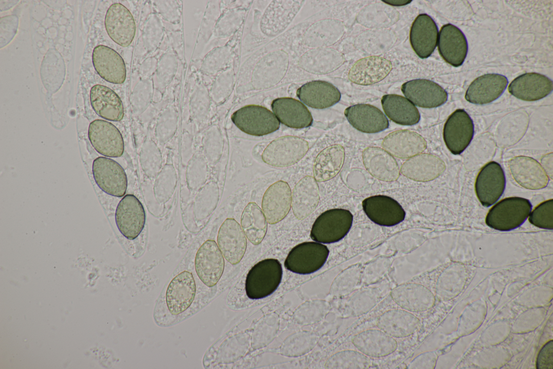Die Sporen messen (9.6+-0.5) µm x (5.2+-0.3) µm, Q=1.9+-0.2, bzw. (8.4-10.5) µm x (4.6-5.5) µm, Q=1.5-2.2, womit ich dann bei Pilobolus crystallinus lande. Den hatte ich bis dato noch nicht. Mal schauen, was der Hase in den kommenden Wochen noch so alles bereit halten wird.