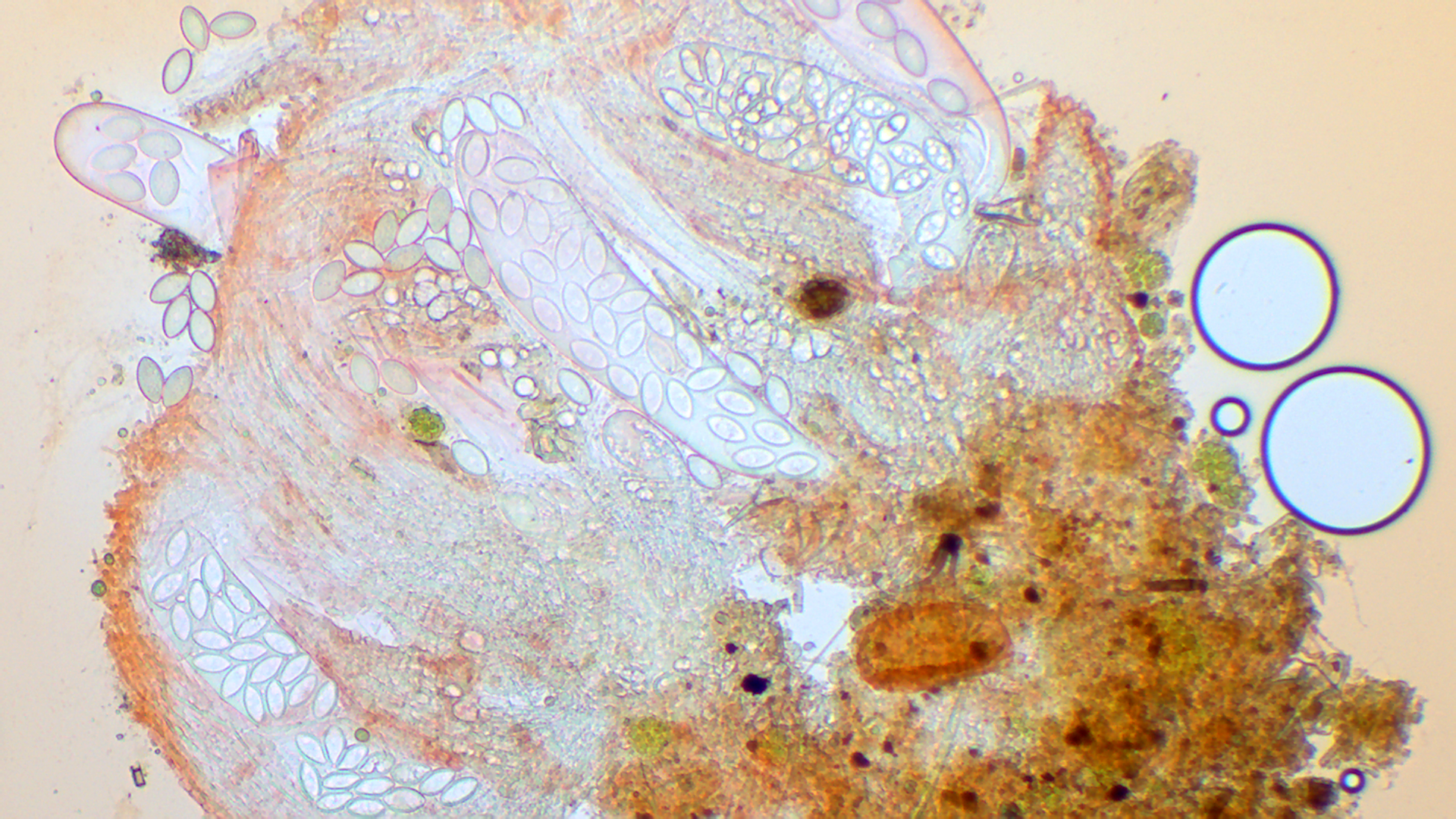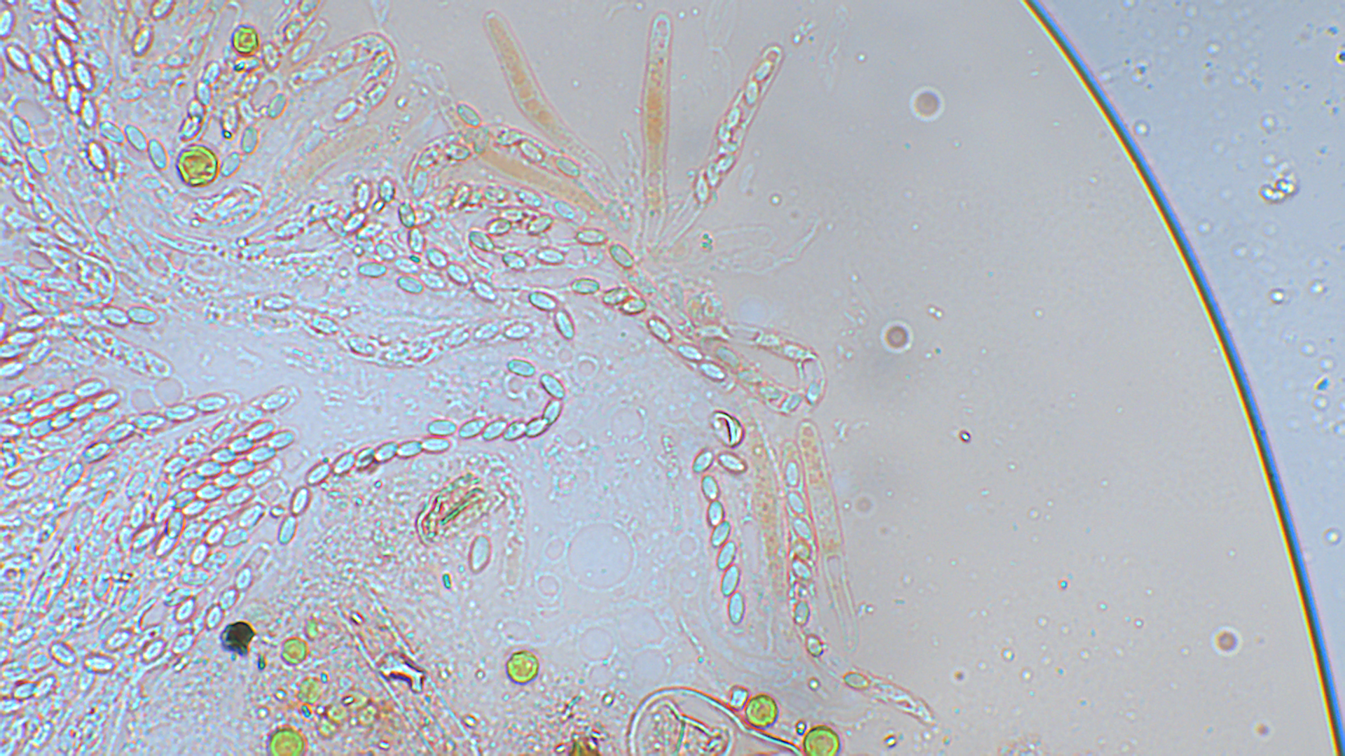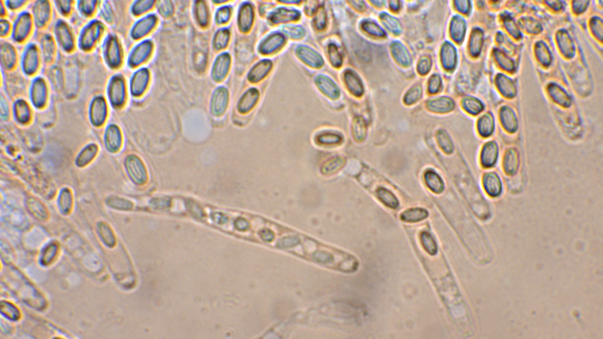 2. Den zweiten Pilz habe ich als Thecoteus pelletieri bestimmt. Der Fruchtkörper war tatsächlich recht säulenförmig, was man auf dem Foto nur erahnen kann. Die Sporen waren zu 32 im Ascis und waren zwischen 27-30X14,5-15 groß.