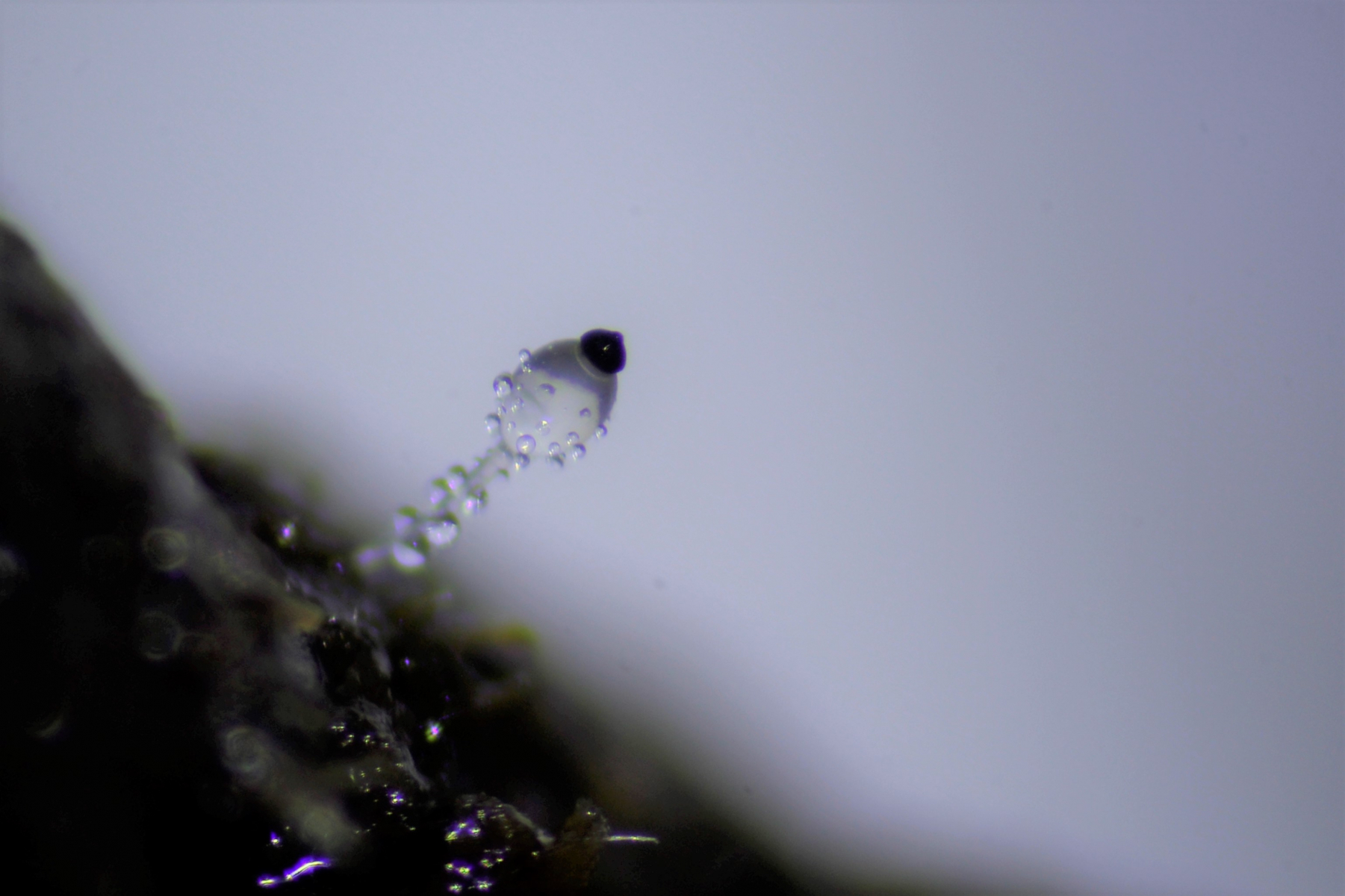 3. Den dritten Pilz fand ich auf dem neuen Dungstück. Mit dem kleinen Buckel auf dem Kopf und der Sporengröße komme ich auf Pilolobus umbonatus. Die Sporen waren zwischen 4,5-5,5X2,5-3 groß.