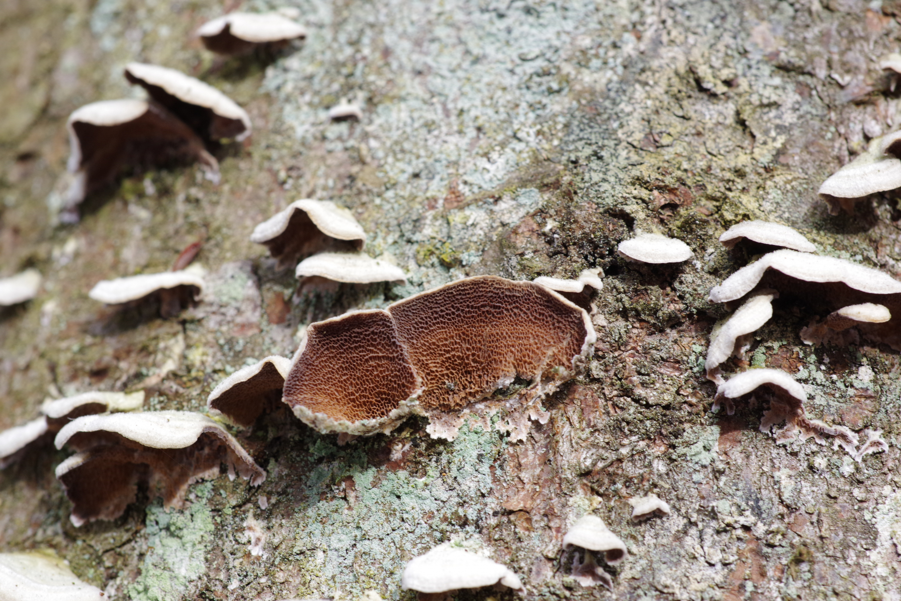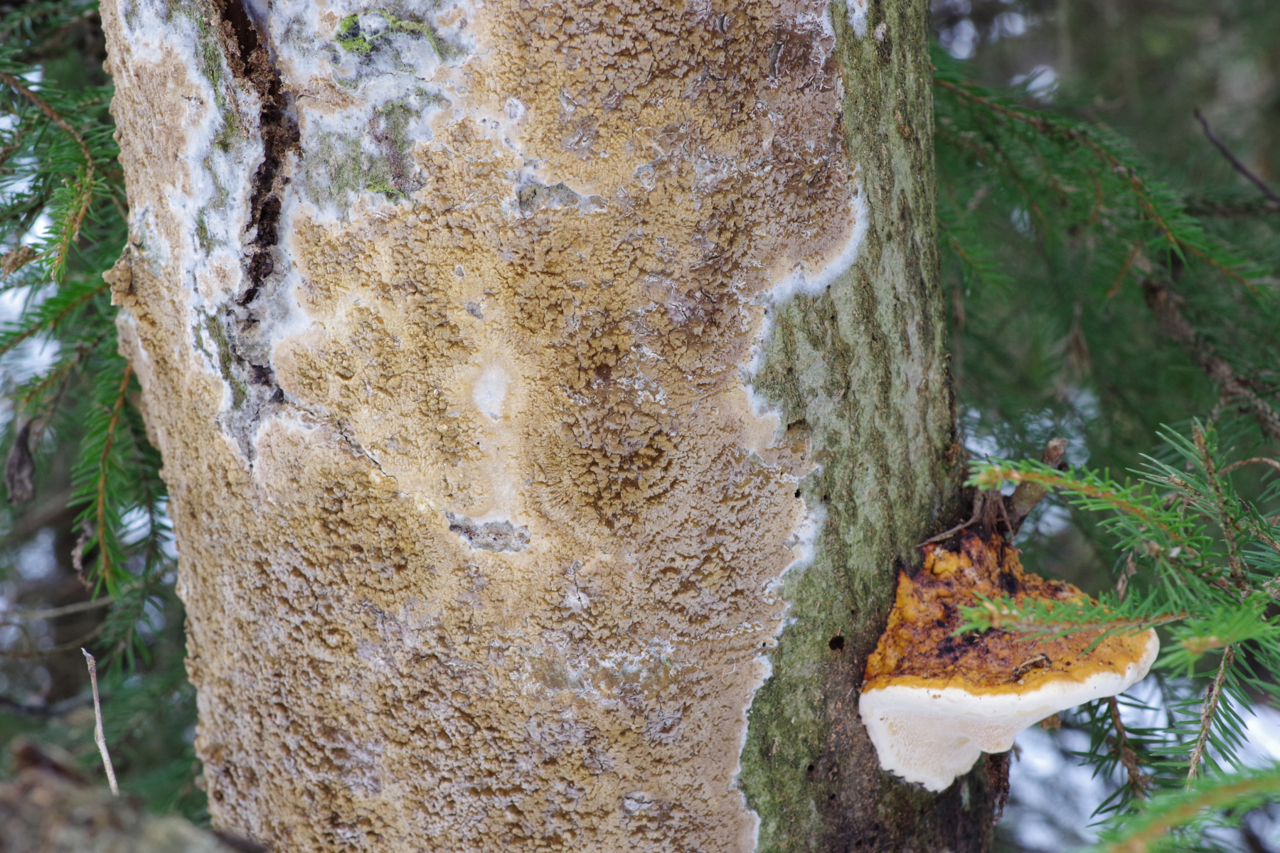 7) an umgefallener Fichte, vermutlich Antrodia serialis