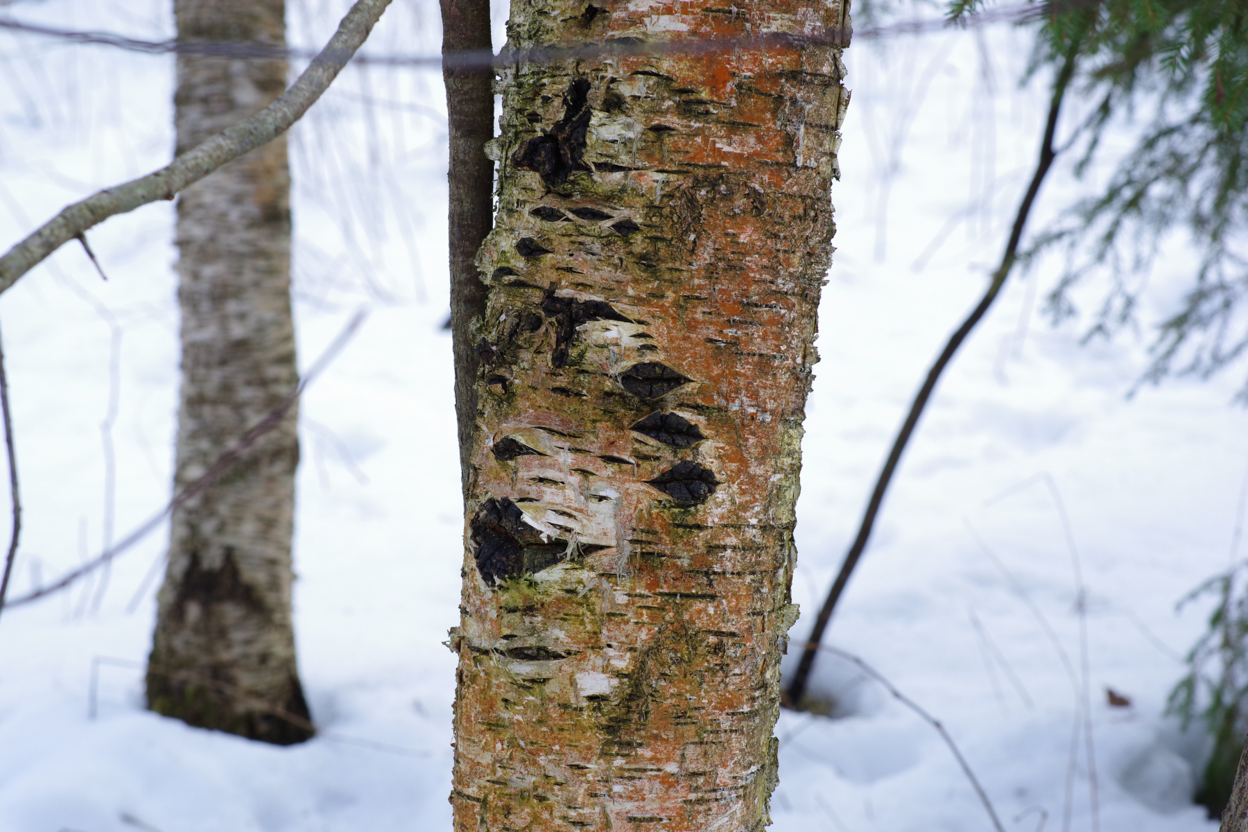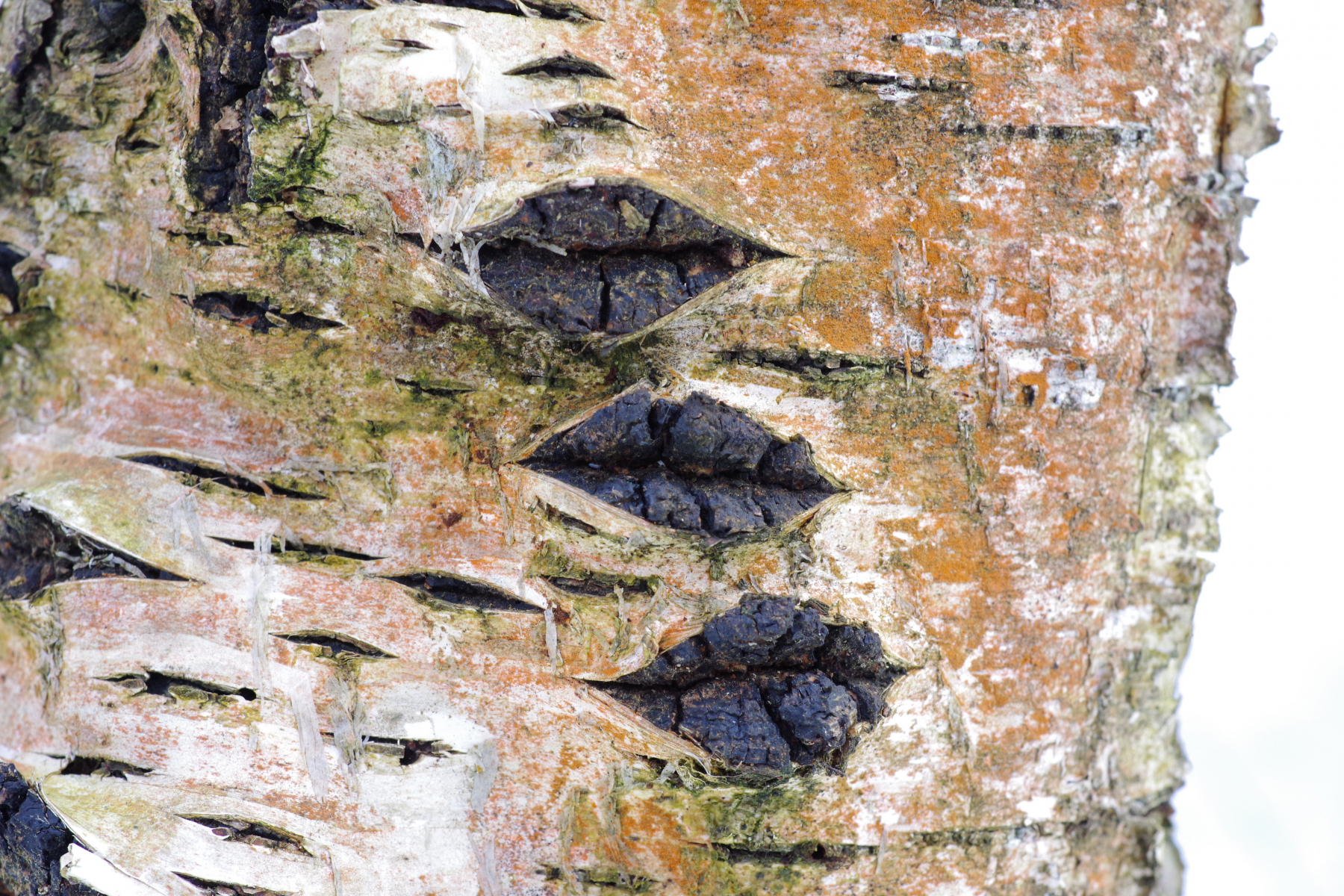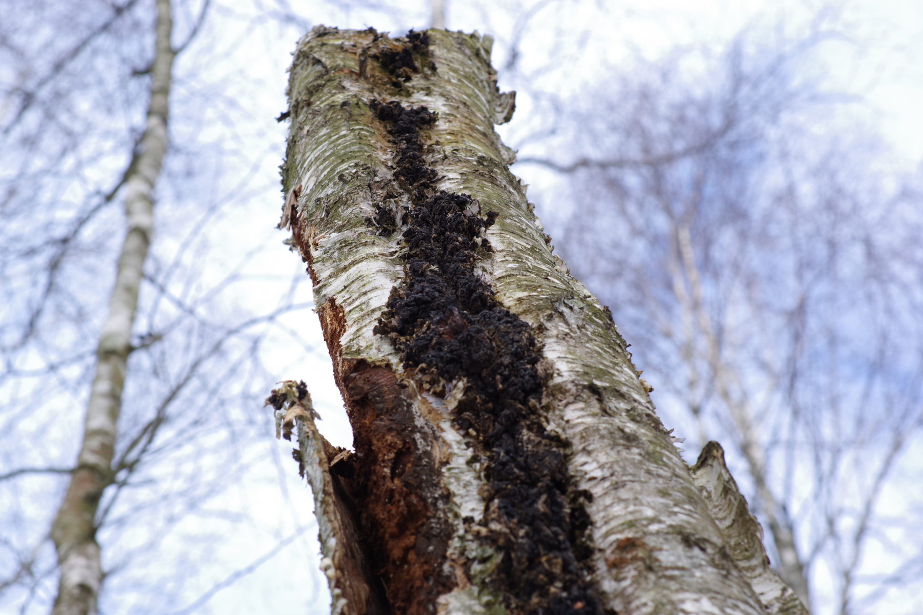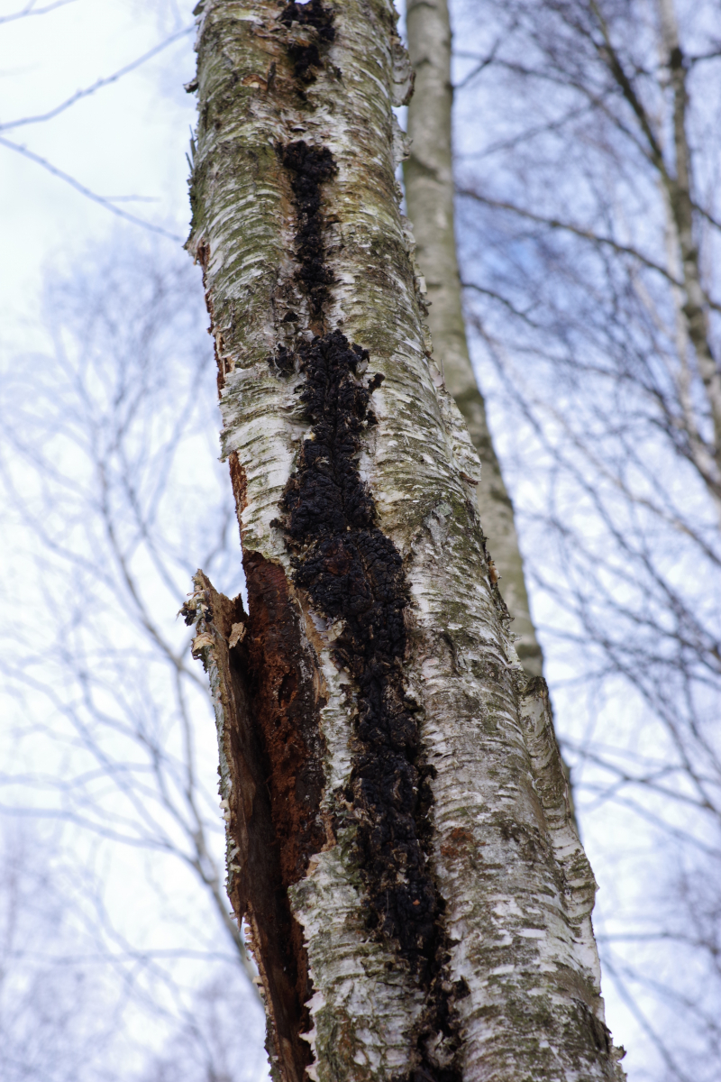 3) mit Bauformen vom Chaga, die man eher selten sieht, der ganze Reststamm ist im oberen Teil damit dekoriert, unten Zunderschwamm