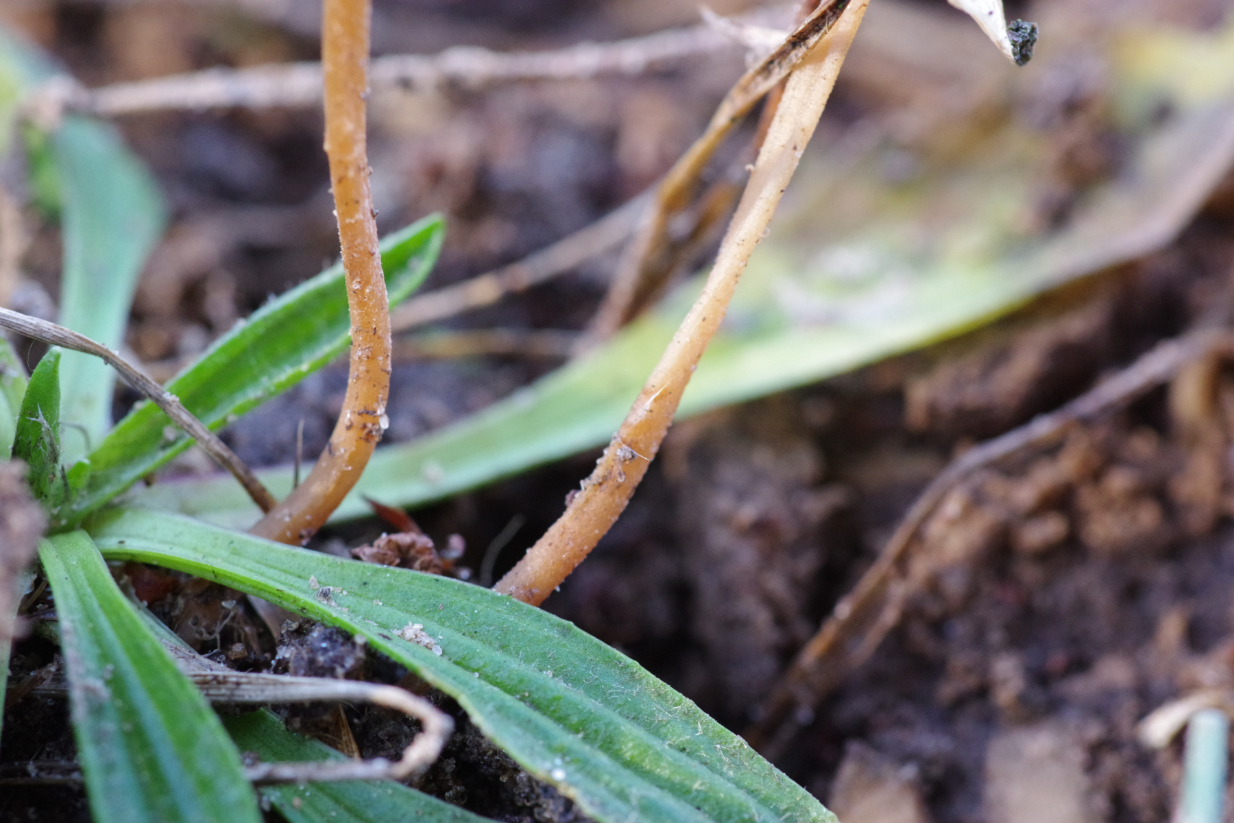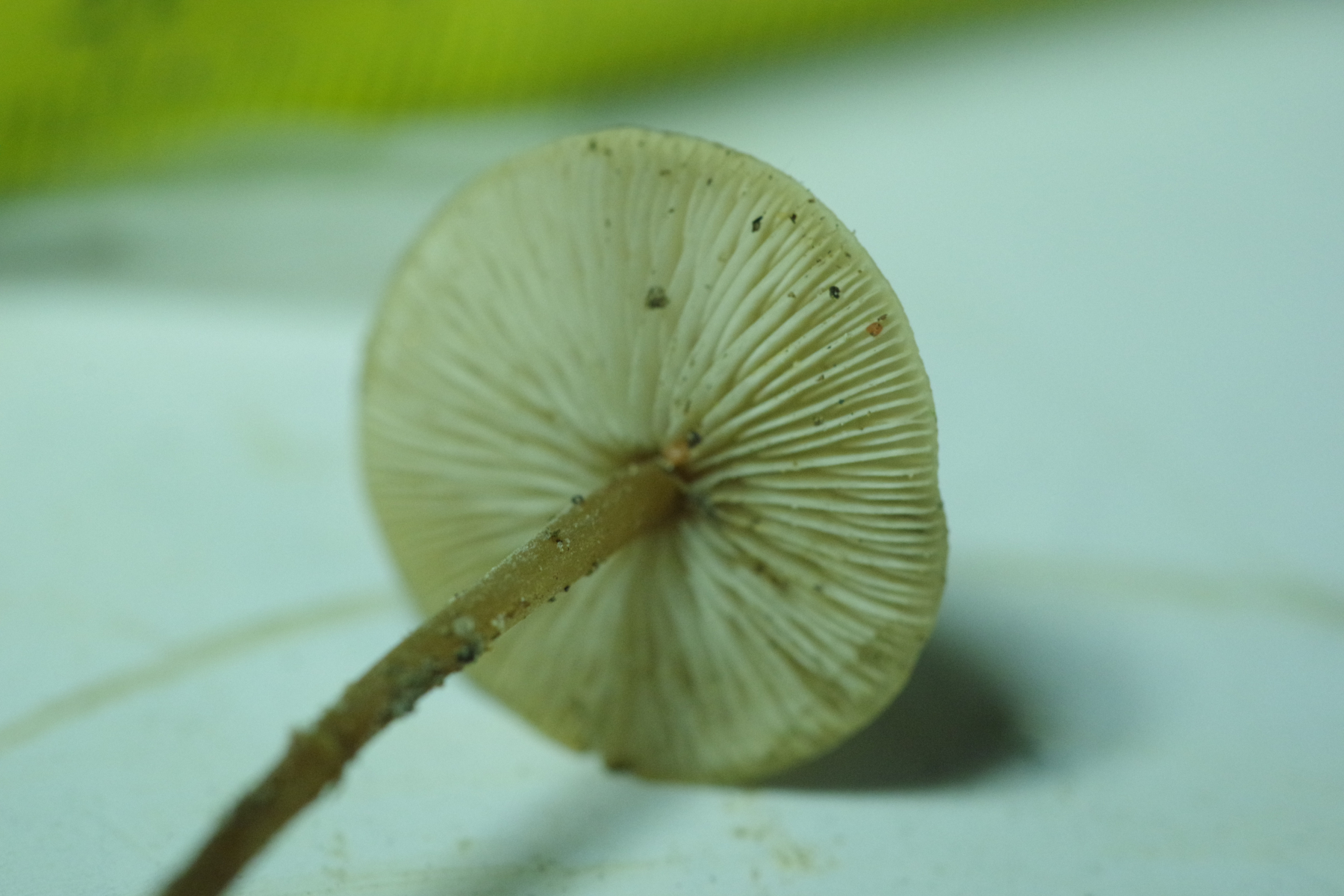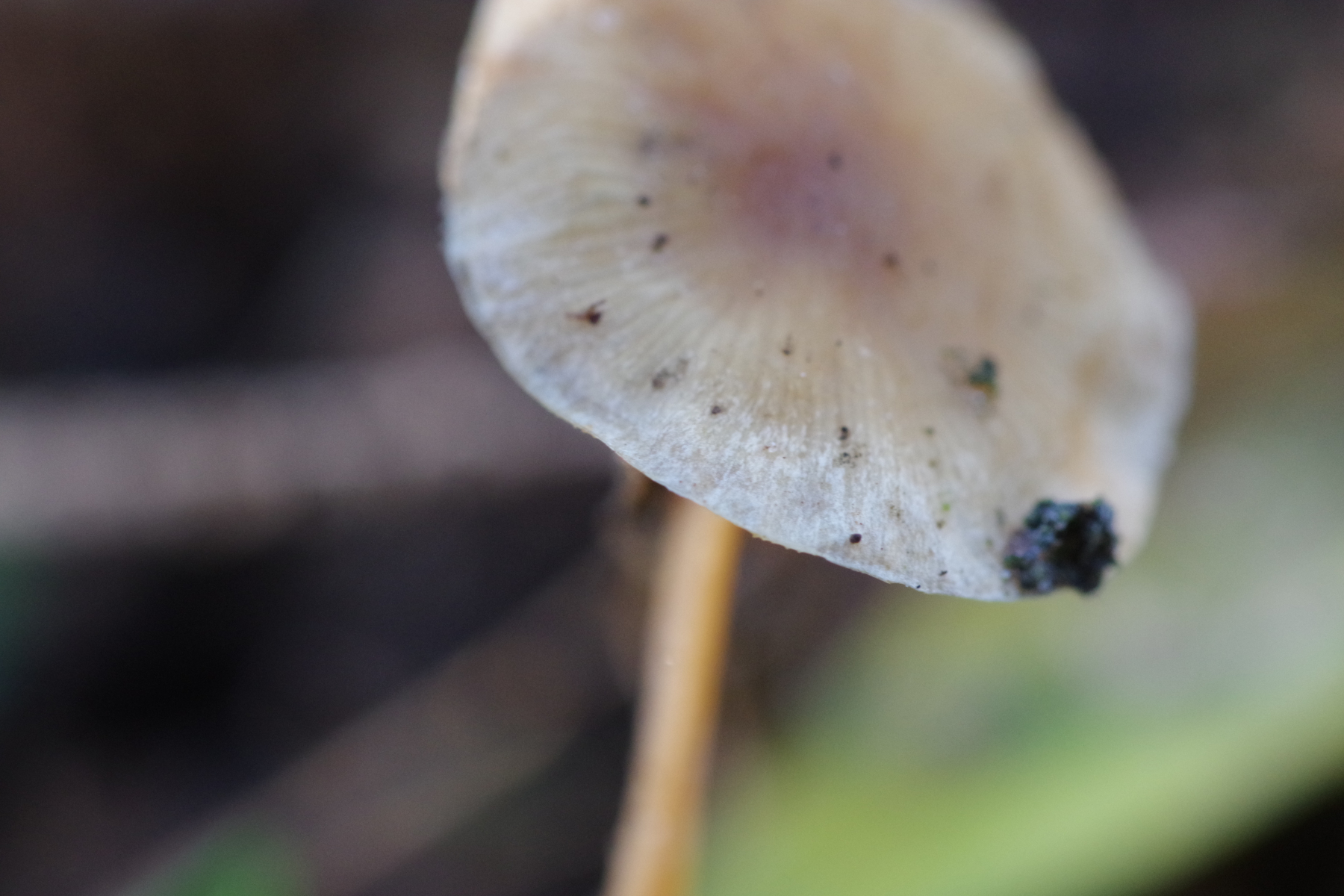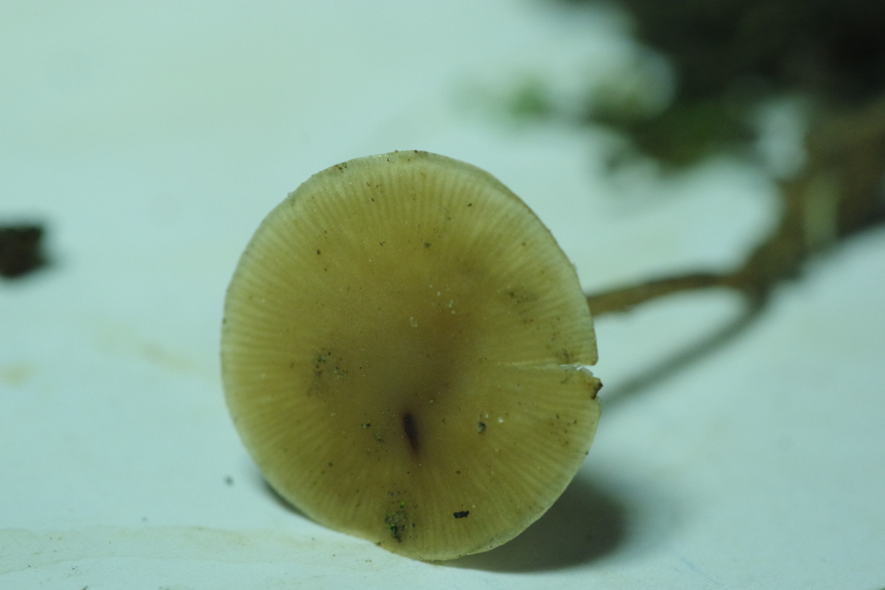 Spannender ist Nr. 2, unter Kiefer, da liegt der Verdacht nah, dass es ein Zapfenrübling sein könnte, zur Not auch der FiZaRü, denn bei hunderten Kiefernzapfen unter der Hoflinde ist klar, dass die Spechtdichte groß genug ist, hier etwas zu mischen. Aber ich bin der Sache, ganz im Wortsinne, auf den Grund gegangen - spatentief ist kein Zapfen vorhanden, weder noch, auch nicht in alt. Vielleicht ein Helmling? Geruch unauffällig, Geschmack leicht fad. Soviel sollte ja um die Jahreszeit nicht in Frage kommen.