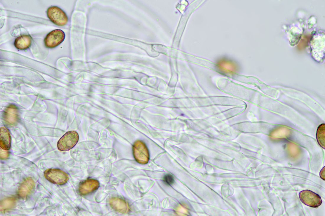 Mikroskopisch hatte keine der Arten irgendwie auffallende Cheilozystiden, das schreibe ich nicht jedes Mal dazu. Alle Mikrofotos in verdünnter KOH, Sporenmesswerte erst mal grob nach ca. 10 nach Augenmaß selektierten Sporen, geht natürlich auch ausführlicher wenn von Interesse.