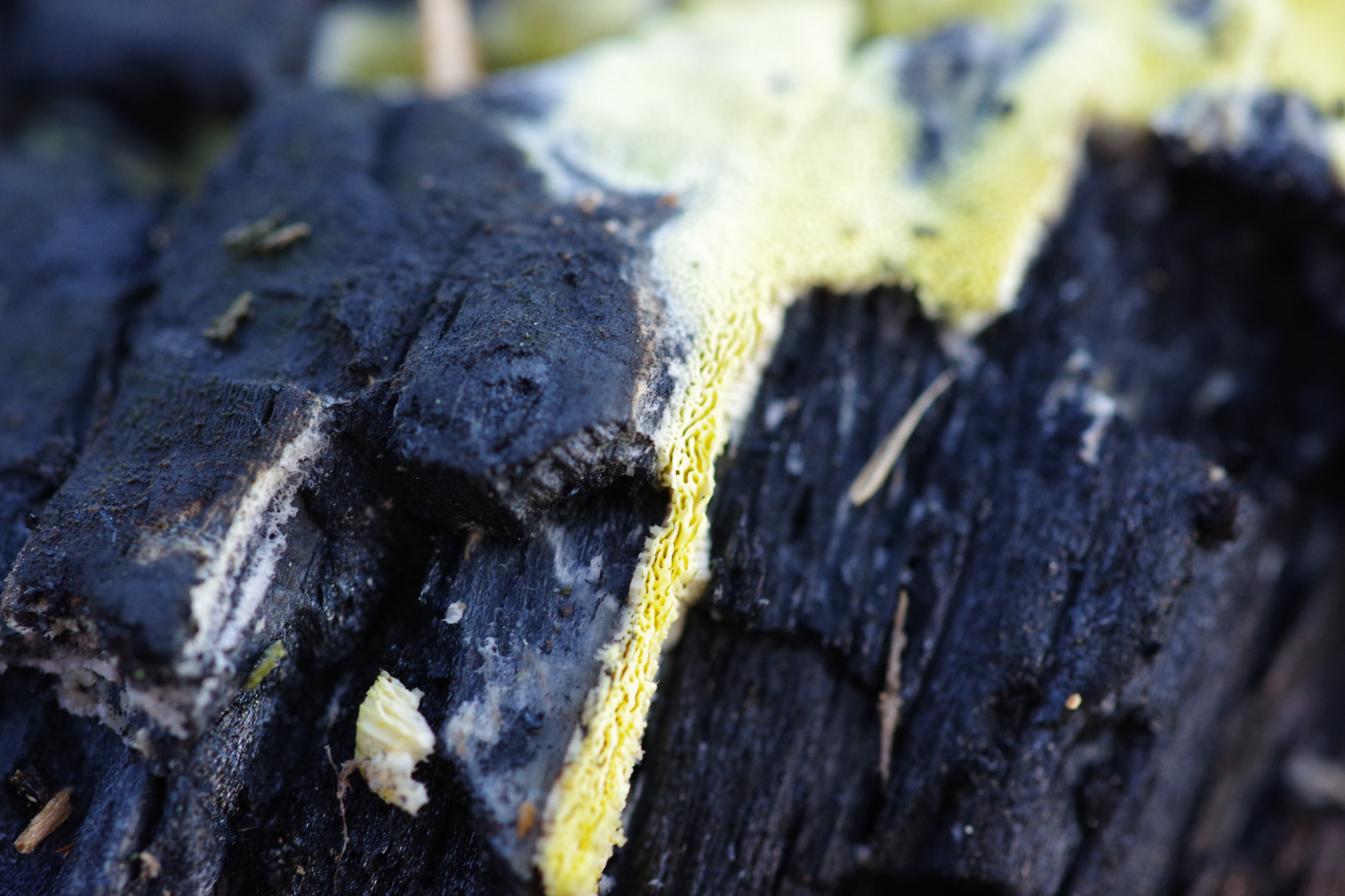 Dass der Rotrandige an dieses fast nur noch Holzkohle geht, glaube ich nicht. Vorher war er auch nicht da, ungeachtet dessen, dass das Haus vor der Brandstiftung über 10 Jahre unbewohnt war. Antrodiella citrinella habe ich aber auf der Suchliste, nur ganz woanders, auf den Waldinseln im Moor.