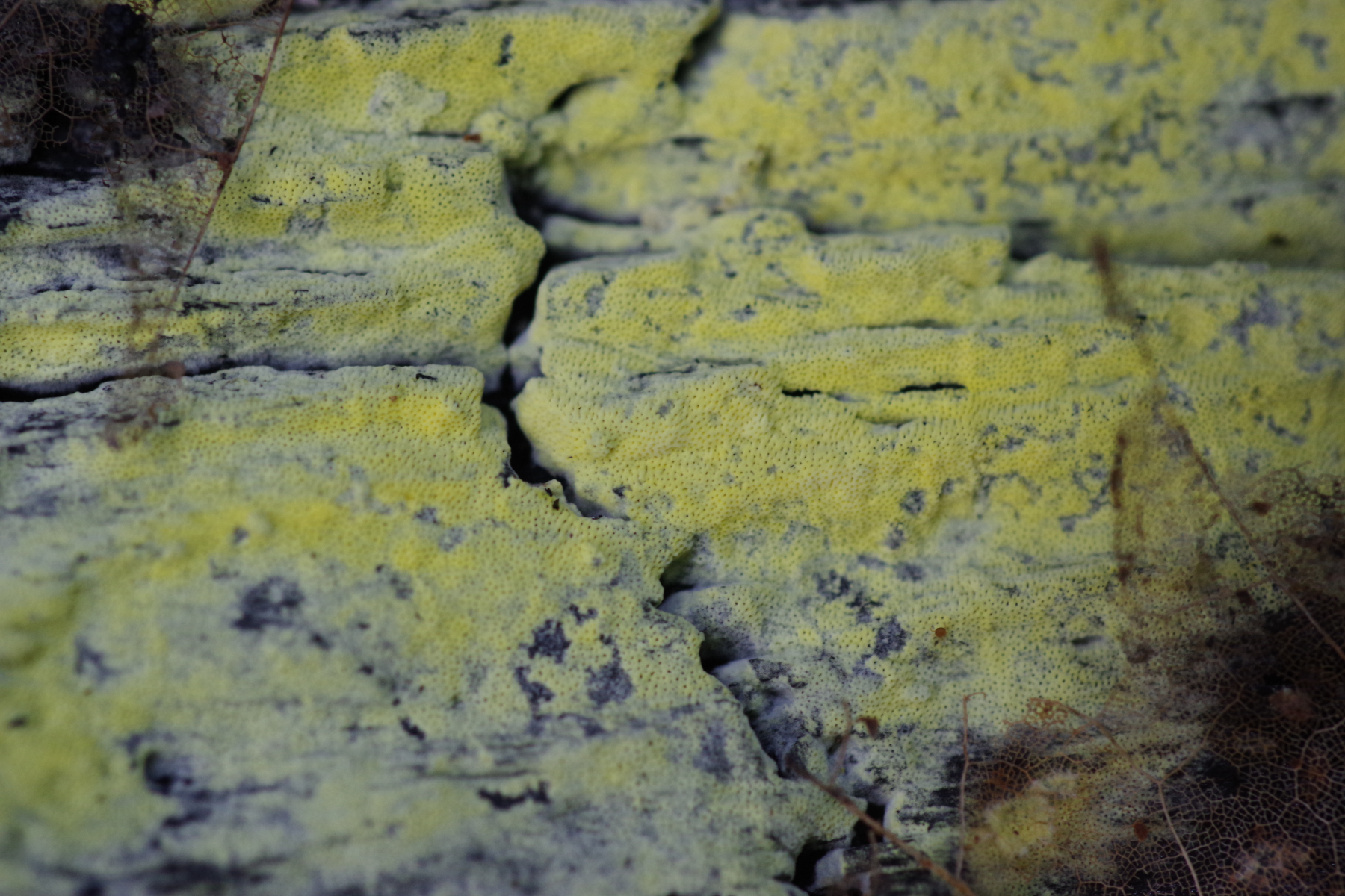 Ich bin übrigens auch der Meinung, dass der Pilz nicht Antrodiella citrinella ist. Zu flach, zu eben, die Poren zu klein und zu gleichmäßig, die weißlichen subikulumsartigen Stellen innerhalb des Fruchtkörpers - das passt alles nicht zur Antrodiella.