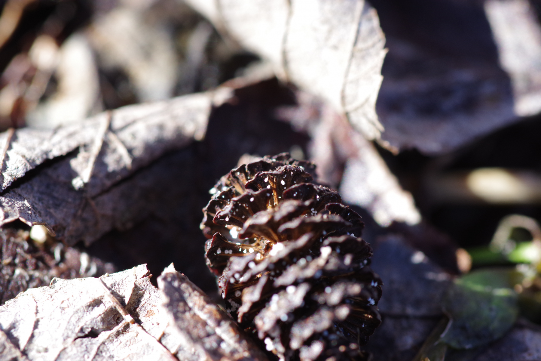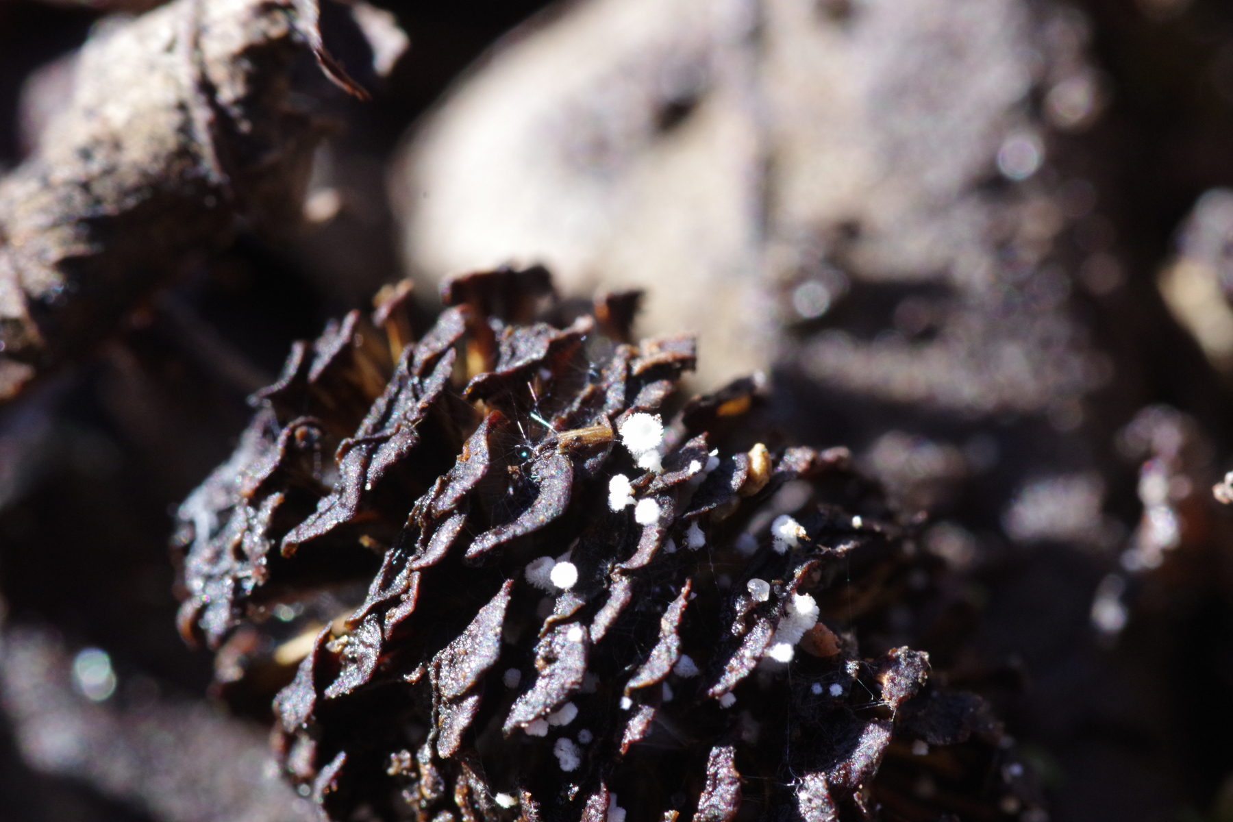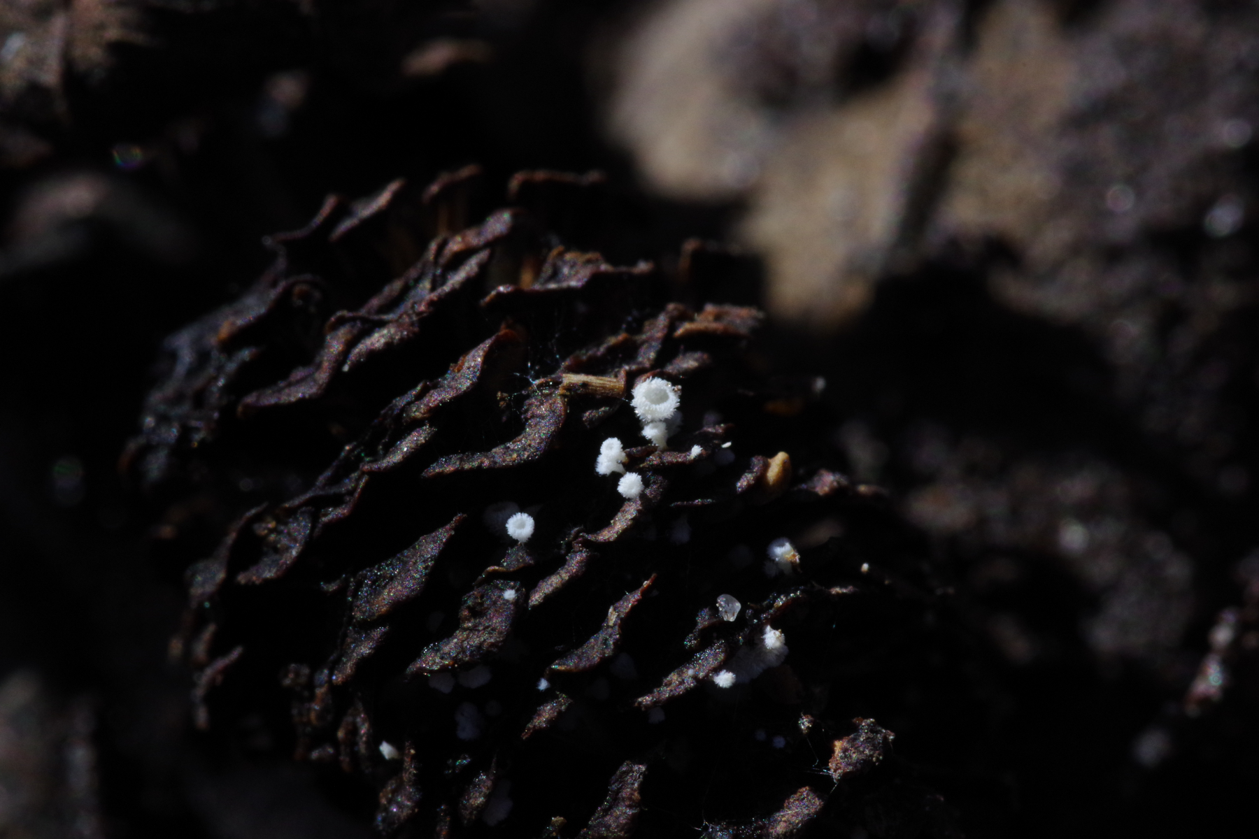 evtl. Lachnum virgineum, die besiedeln gern Zapfen, natürlich auch Holz .