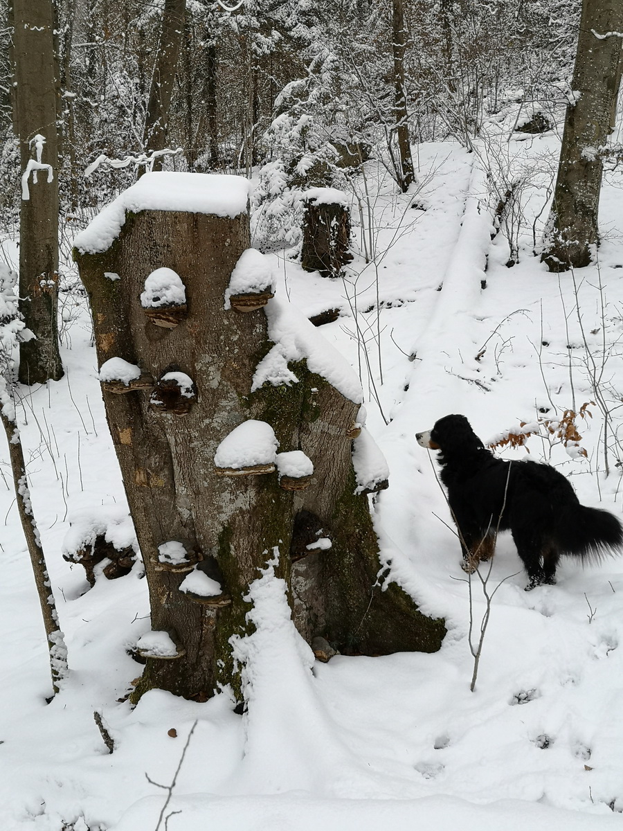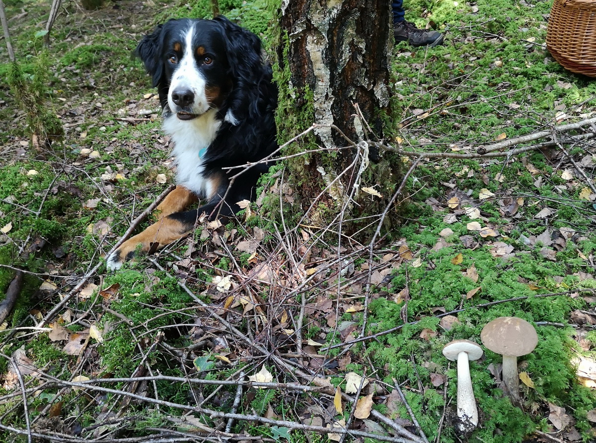 ich habe mit Hera auch eine treue Begleiterin die Stein- und Birkenpilze bewacht. Außerdem ist sie Expertin für Zunderschwämme, sie sie interessiert begutachtet. :):):)