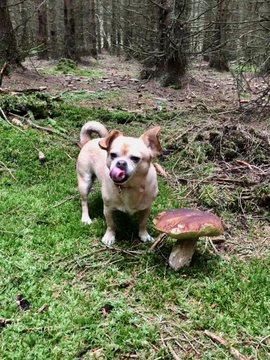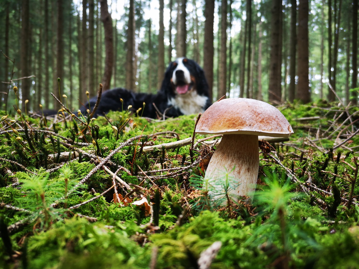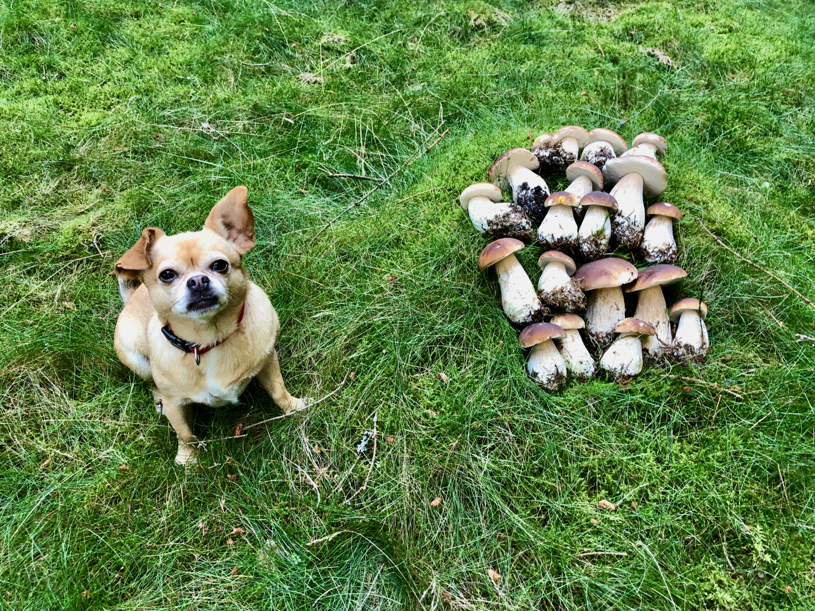 Leider eignet sich unsere Fellnase nicht als PSH. Sie würde sämtliche Naturmaterialien mit dem Fell aufsammeln und findet alles was sich bewegt, von Käfern über Mäusen bis zu den tierischen Hinterlassenschaften viel interessanter und vor allem - leider - auch lecker. Da muss ich dann mehr auf Hund aufpassen, als nach Pilzen Ausschau halten. Und bei uns im Wald zum Spazierengehen bleibt sie sowieso an der Leine.