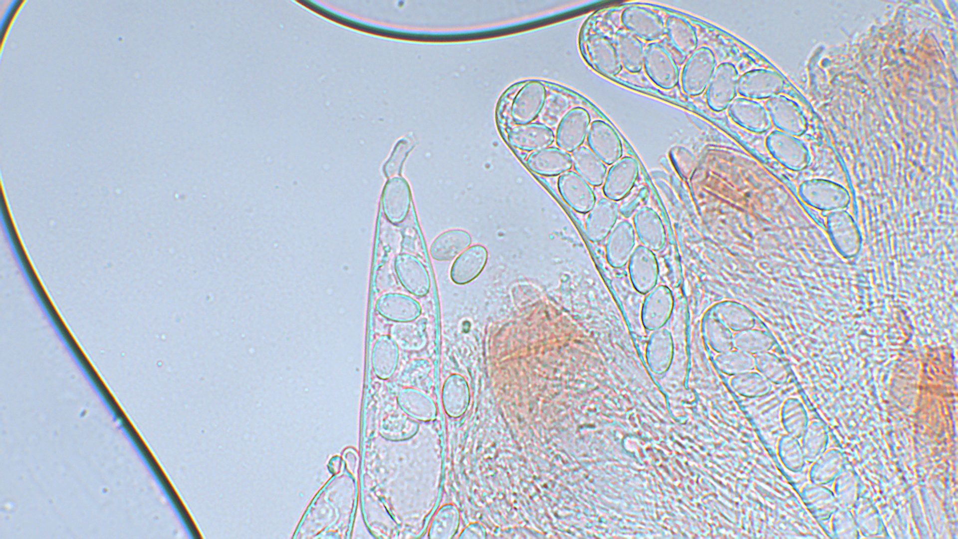 Die Sporen waren zwischen 11-12,5X6-7,7 groß. Viele waren noch am unteren Rand (oder darunter) von dem, was c. sexdecimsporus eigentlich haben sollte, aber ich denke mal, dass sie einfach noch nicht reif waren. In den Asci waren 16 Sporen.