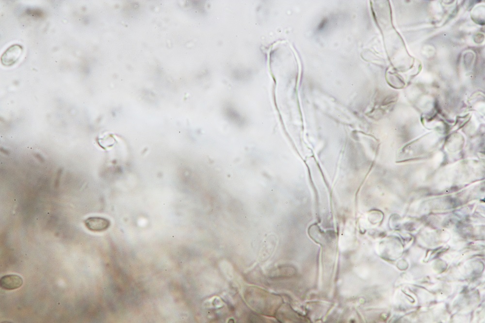 Deswegen werde ich morgen schauen, ob die Basidien mehr als 4-sporig sind und auch nach den Hyphen mit den Öltropfen Ausschau halten.