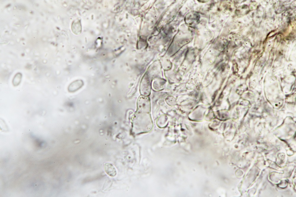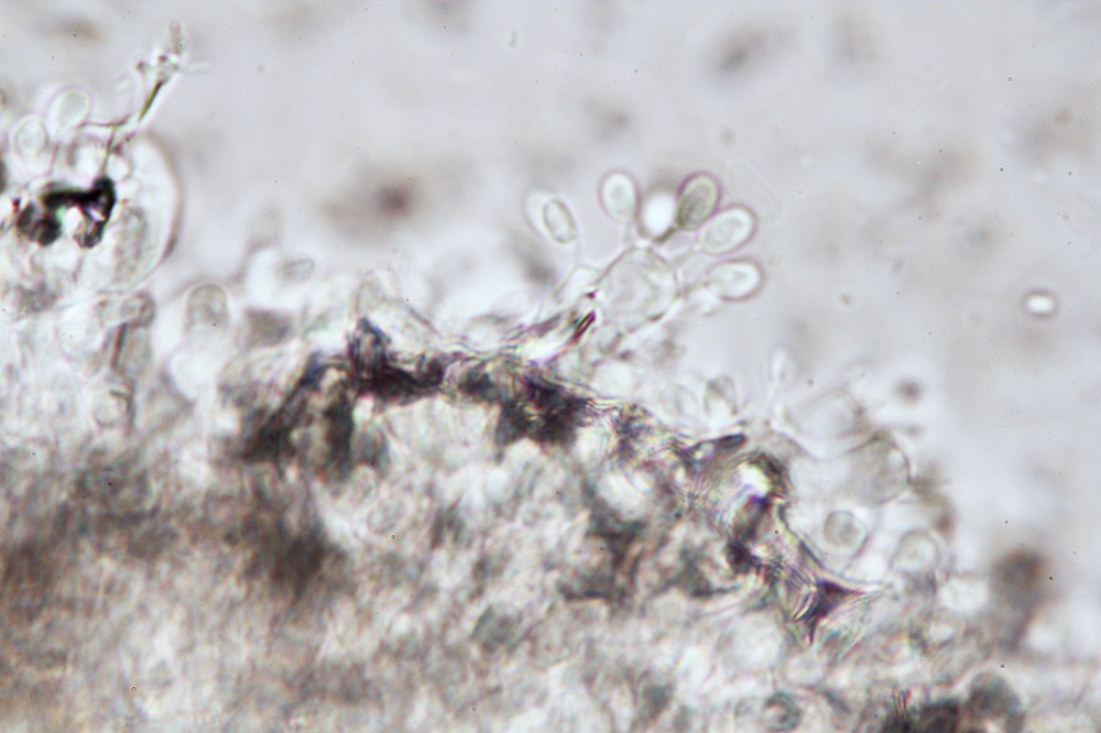 Wenn man es mit Kollektionen ohne 6-sporige Basidien zu tun hat, ist es etwas knifflig, aber mit solchen Basidien sehr eindeutig.