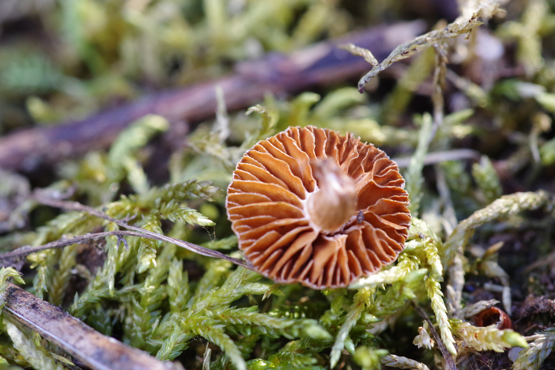 2) ein Einzelexemplar im Moos auf Stein, evtl. ein Relikt in Form eines ausgeblichenen Pseudoclitocybe cyathiformis, oder Clitocybe ditopa, aber da kommen wohl noch mehr in Frage?