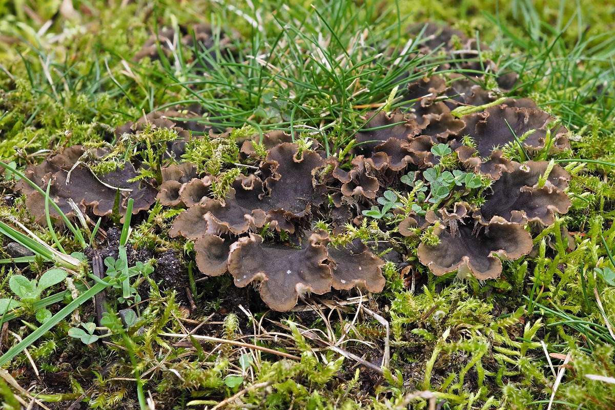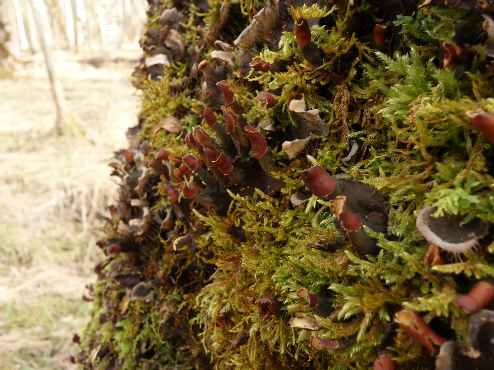 in einem Auwald an abgestorbener Esche (wie ca 75% der dort meist noch stehenden aber teils bereits entrindeten Eschen) fand ich auf Sphagnum diese hübsche Hundsflechte in voller Blüte. Ich habe kaum Ahnung von Pilzen und gar keine von Flechten, die über Hustenpastillen aus Isländisch Moos hinausgeht.
