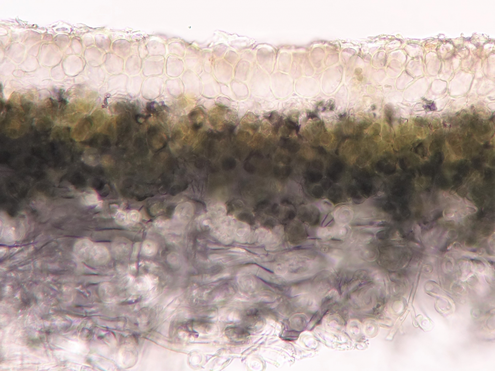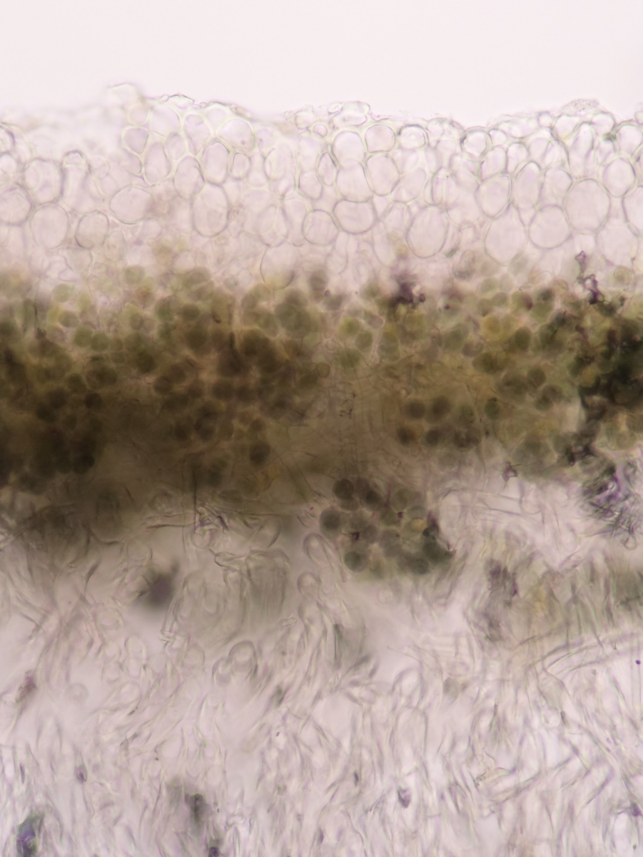 b1 Thallus: deutlich zu erkennen die Schicht mit den Photobionten