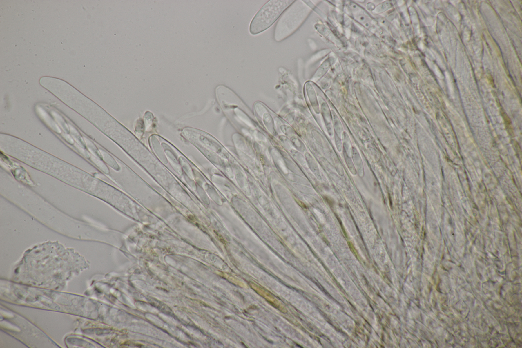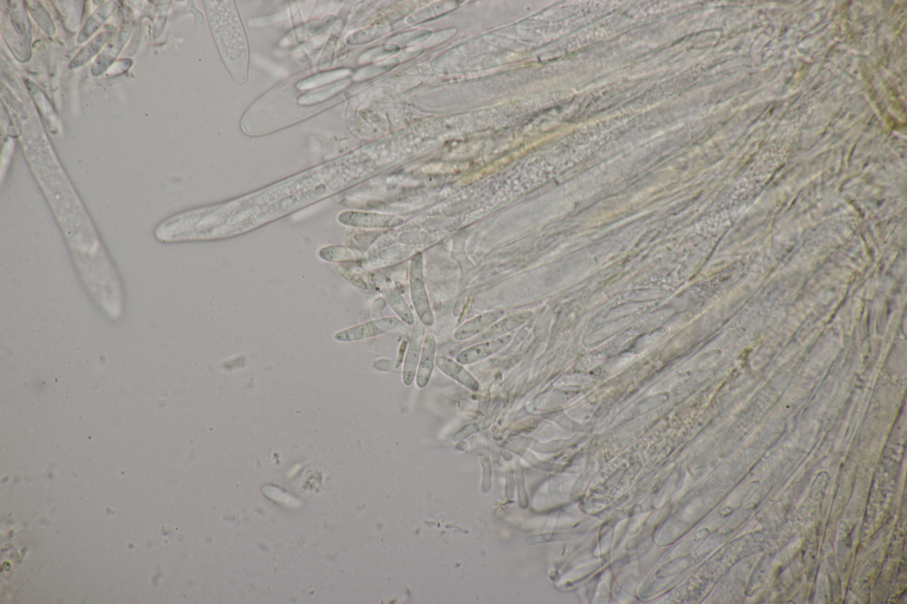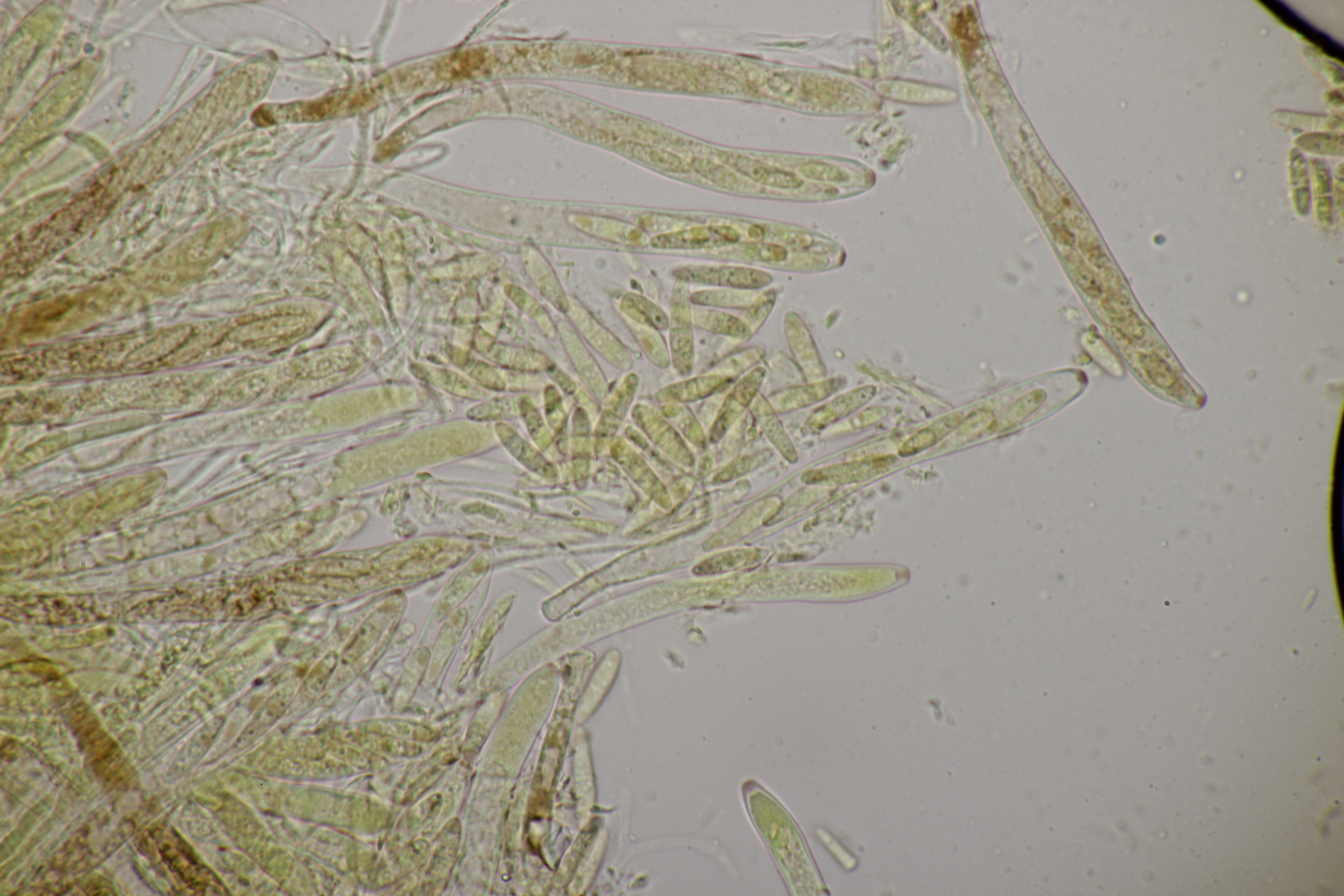 7. Auf Kiefernharz hatte ich diese kleinen orangenen und schwarzen Gesellen gefunden und mich schon auf die Harzbecherchen gefunden. Unter dem Mikroskop gab es dann allerdings nur Konidien. Ich vermute nach Recherche im Ellis und Ellis daß es sich hier um die jeweiligen Anamorphen der beiden Sarea-Arten handelt.