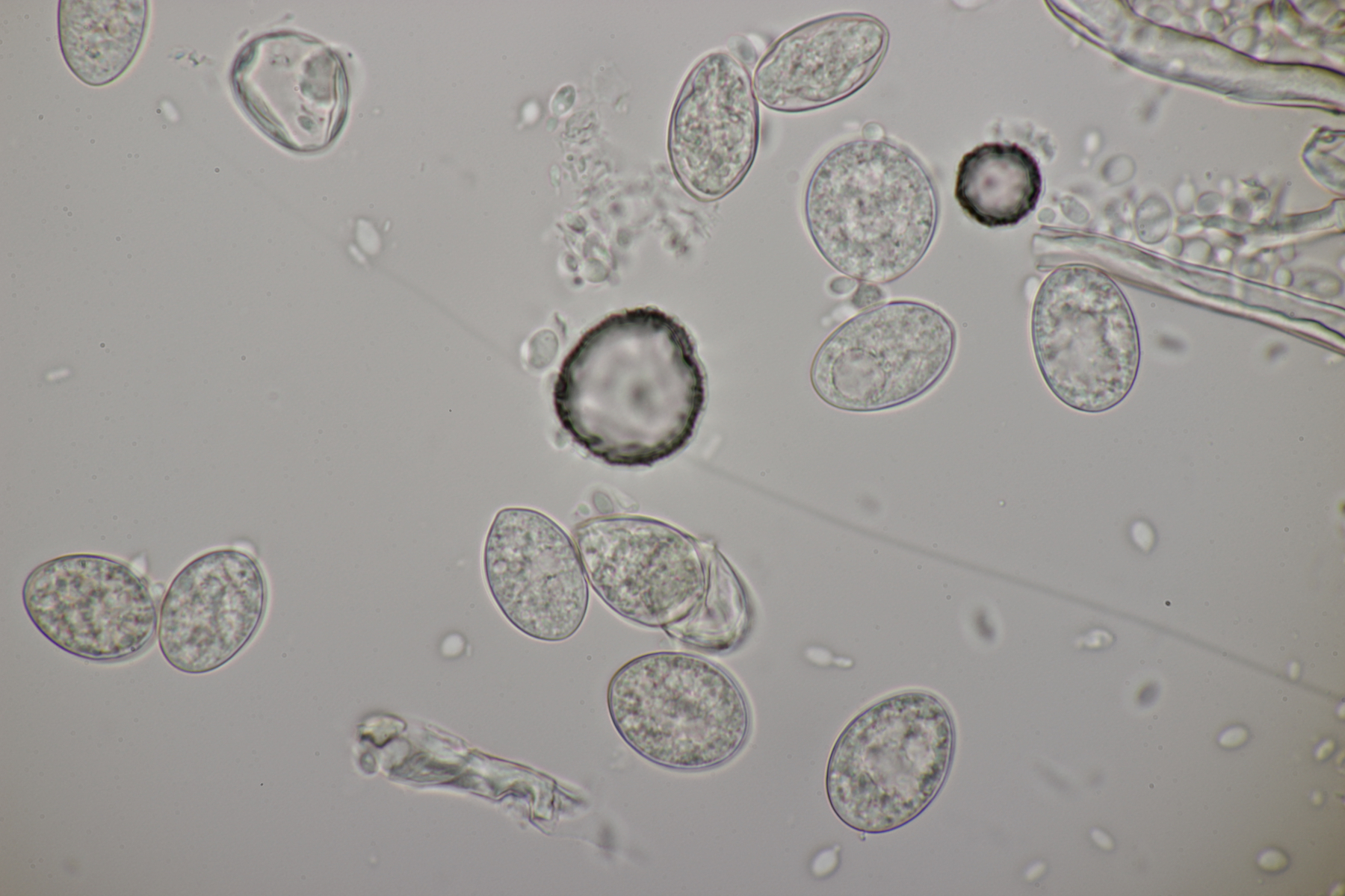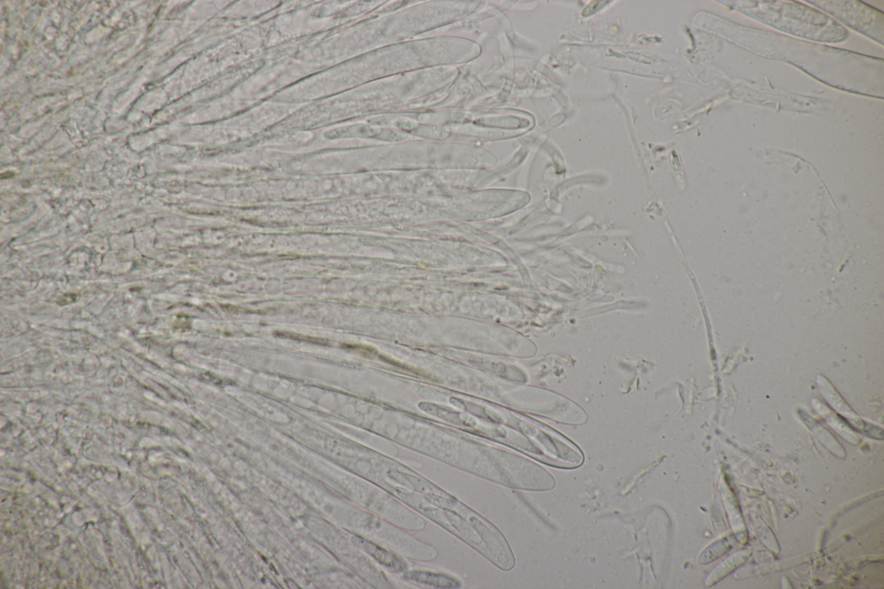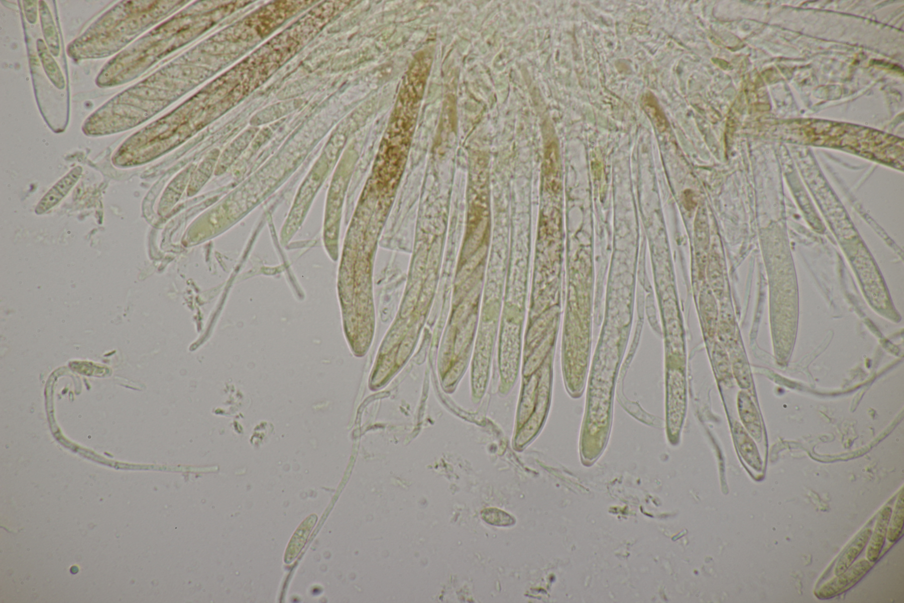 7. Auf Kiefernharz hatte ich diese kleinen orangenen und schwarzen Gesellen gefunden und mich schon auf die Harzbecherchen gefunden. Unter dem Mikroskop gab es dann allerdings nur Konidien. Ich vermute nach Recherche im Ellis und Ellis daß es sich hier um die jeweiligen Anamorphen der beiden Sarea-Arten handelt.