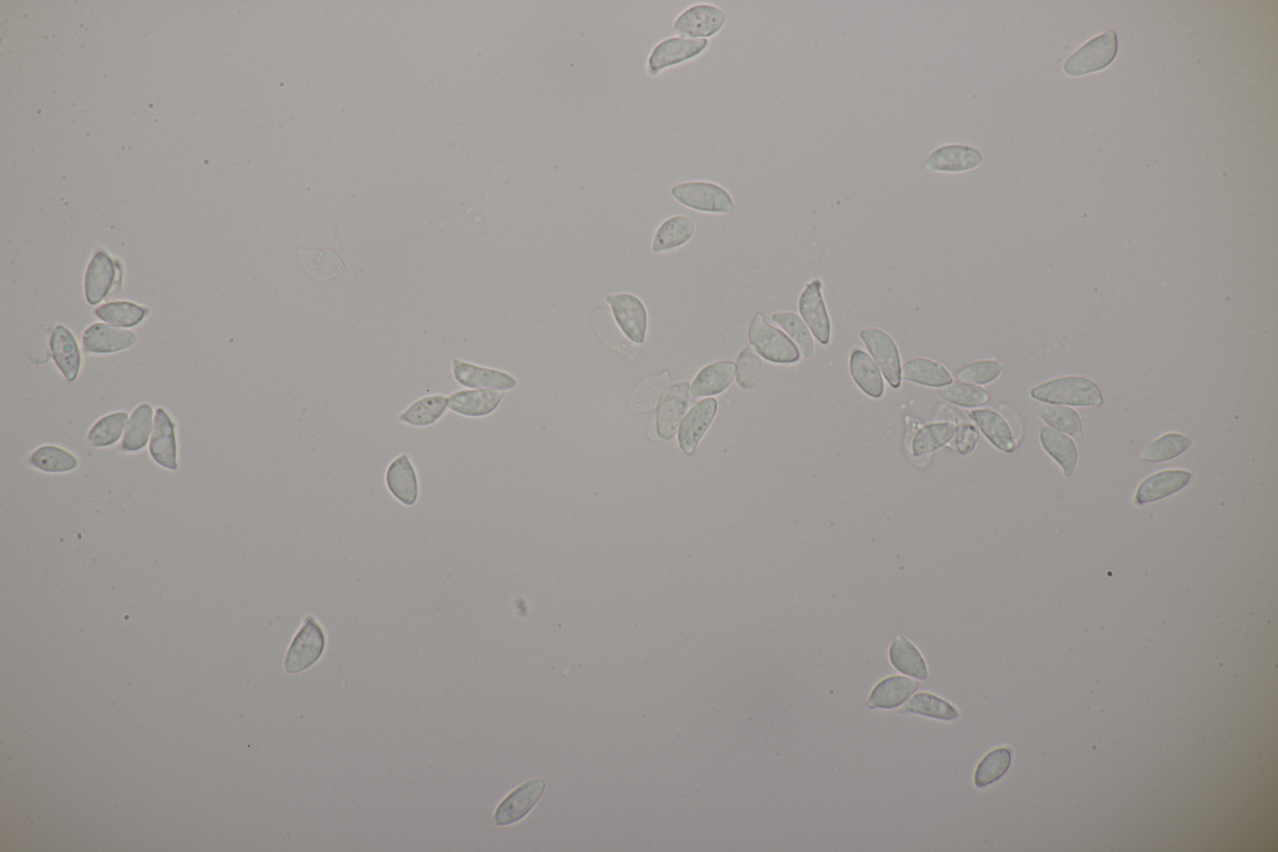 5. Ein Botryobasidium mit Sporen von (9.3+-0.7) µm x (4.5+-0.4) µm, Q=2.1+-0.2, (7.9-10.4) µm x (4.0-5.0) µm, Q=1.7-2.5 womit ich bei B. vagum lande.